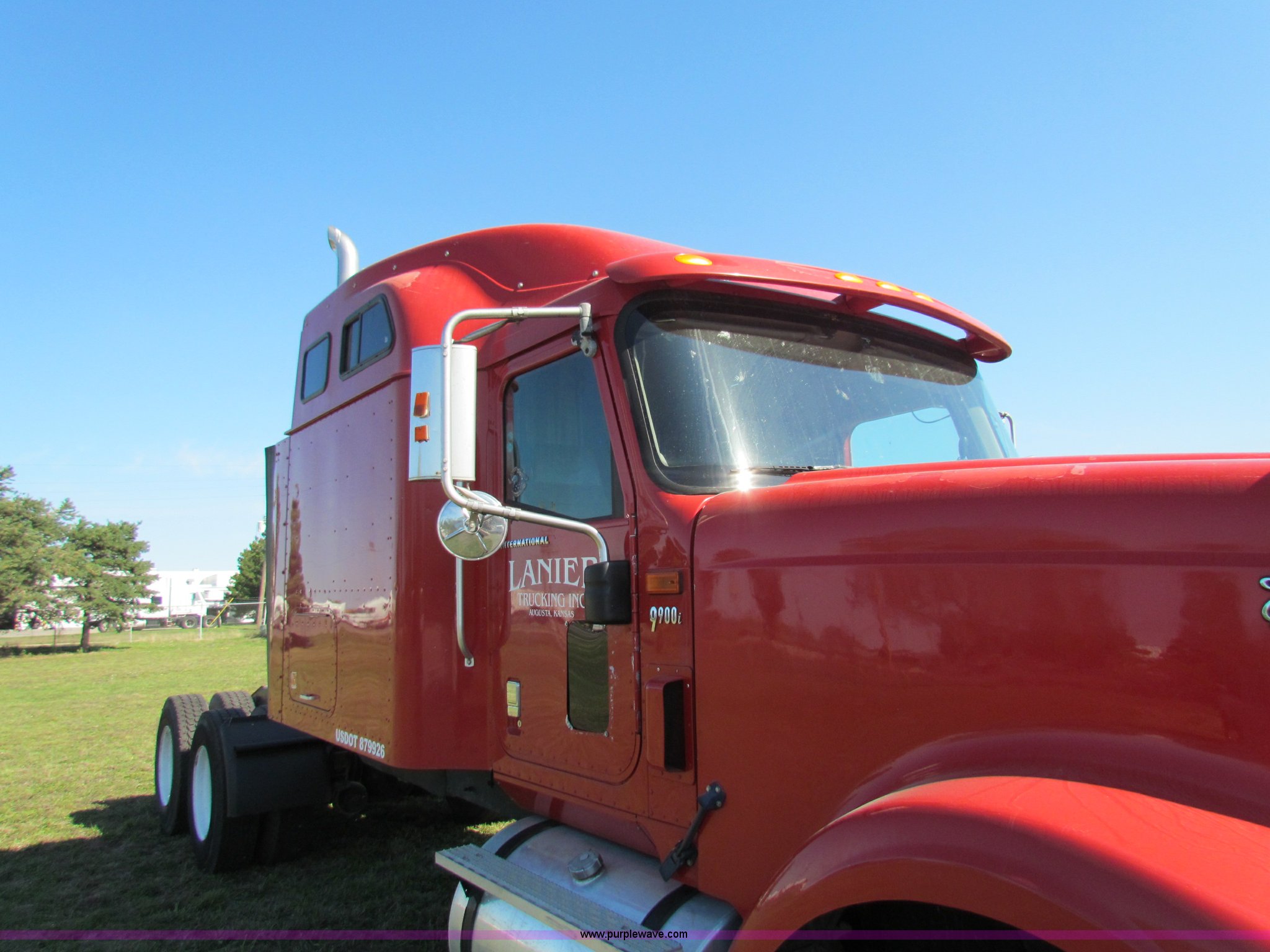 Purple Wave is selling a used Truck Tractor in Kansas. This item is a 2002 International 9900i semi truck with the following: 32,096 miles on odometer, Caterpillar C15 14.6L L6 diesel engine, 460 HP, Eaton Fuller 10RTLO transmission, Twin screw, AC and heat, Cruise, AM/FM/cassette, Passenger daylight door, Air suspension seat, Power windows and mirrors, Heated mirrors, Visor, Lower bunk placement sleeper, Rear AC, heat, and volume controls, Storage, Dual fuel tanks, Single rear exhaust stack, Air suspension, Dump valves, Air brakes, Jake brake, Nut wheel covers, 11R22.5 tires, GVWR 52,000 lbs, FAWR 12,000 lbs, RAWR 20,000 lbs, Recently replaced air bag and two brake chambers, Annual inspection done in June 2012