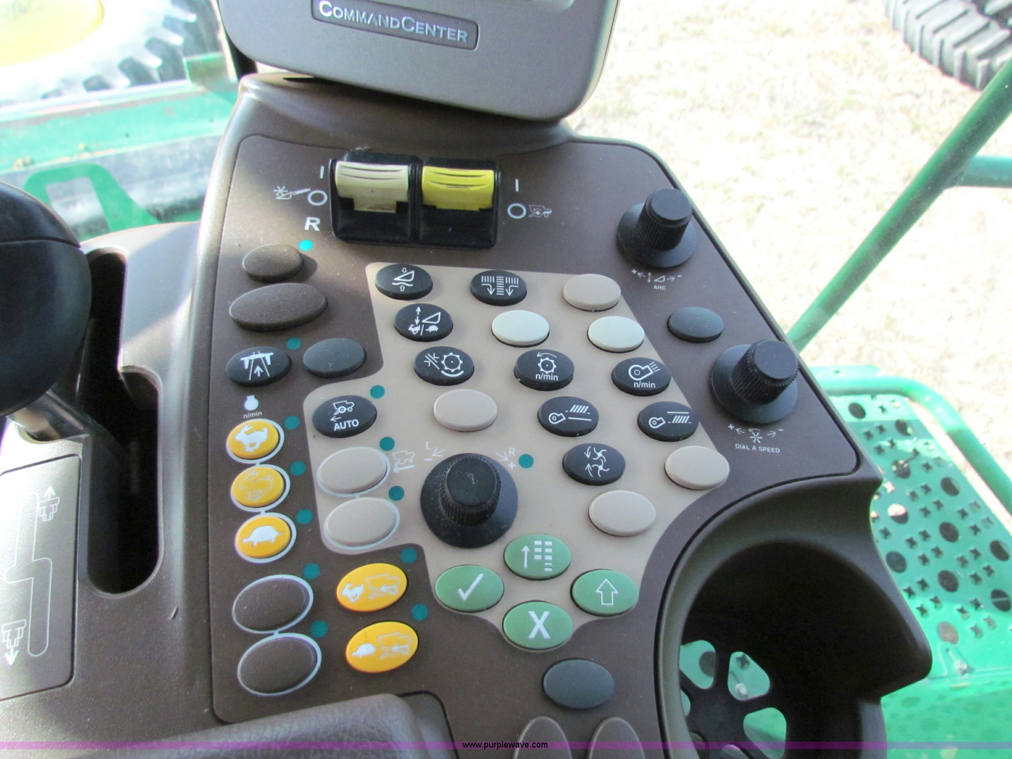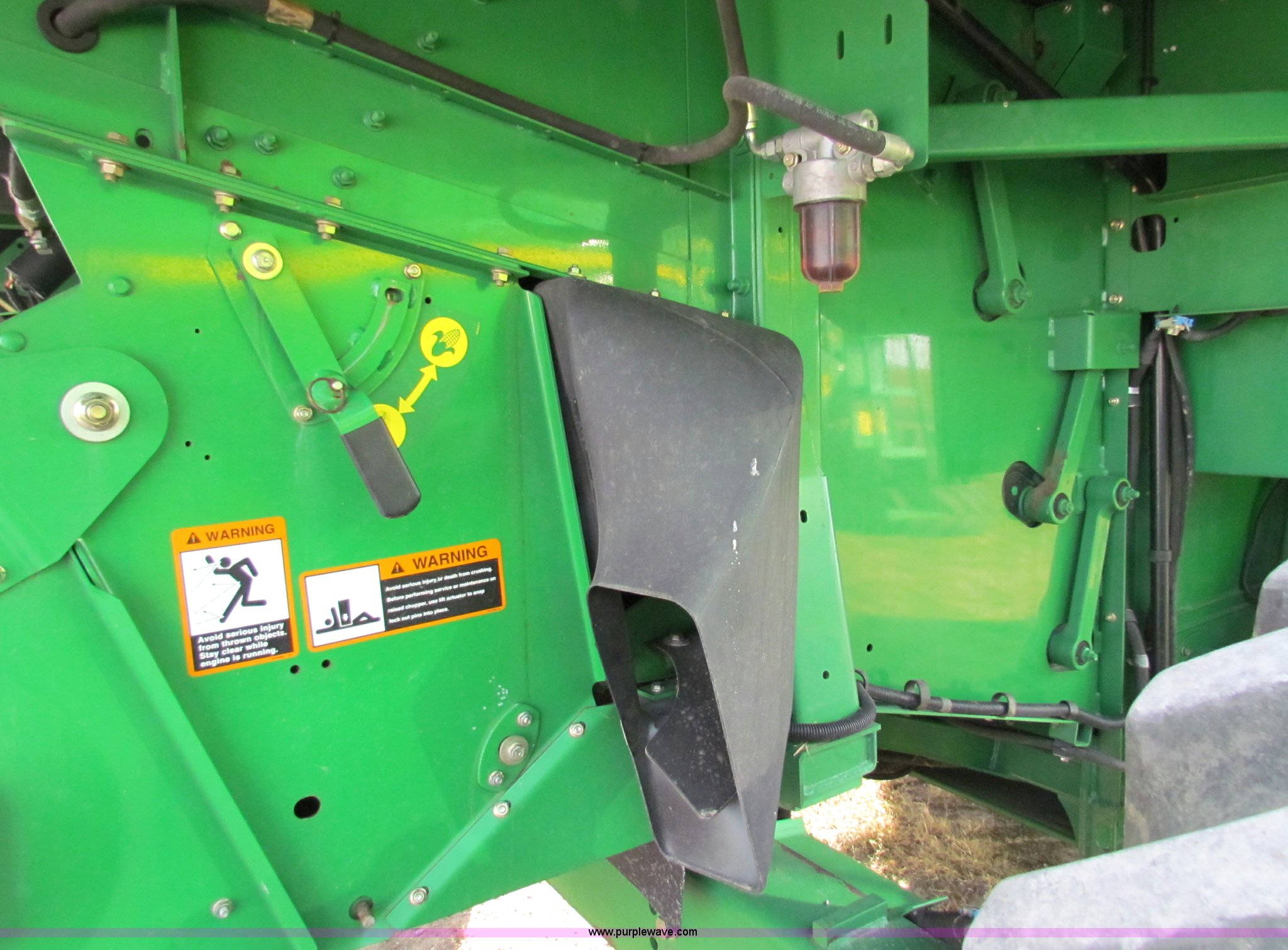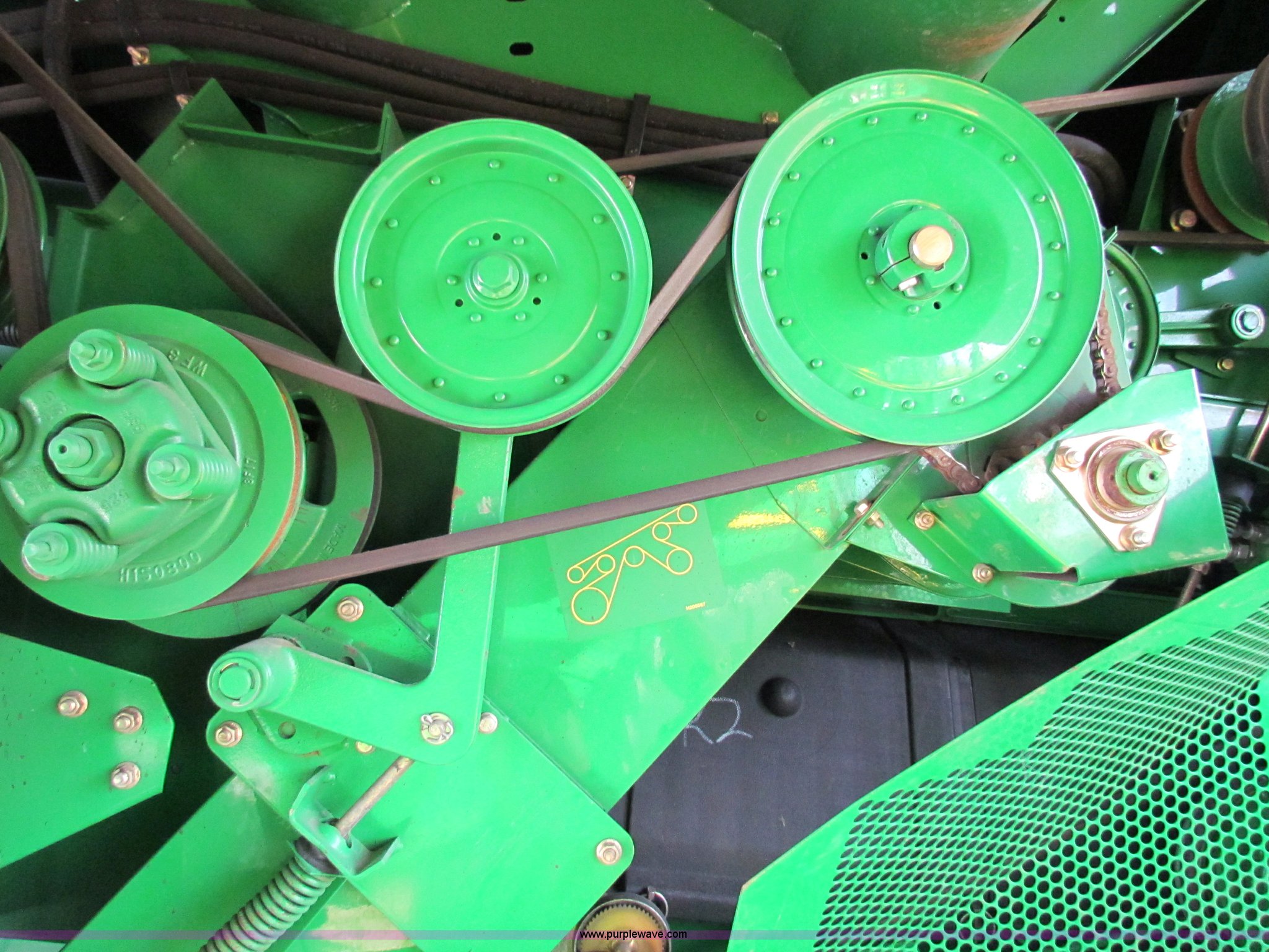 Purple Wave is selling a used Combine in Kansas. This item is a 2009 John Deere 9770 STS RWA combine with the following: 2,120 engine hours on meter, 1,427 separator hours on meter, John Deere 9.0L diesel engine, 360 HP, Model 6090HH008, Hydrostatic transmission, 3F-1R gears, Heavy duty final drives, Two-speed power rear wheels, Contour Master feeder house, Hi torque, Five speed, Reverser, Hi capacity lift cylinders, Single point header hookup, Deluxe header controls, Custom cutter extended wear separator, Sidehill cleaning shoe package, General purpose chaffer, Straw chopper, Wide spread, Fine cut, Power tailboard, Premier cab, AC and heat, AM/FM/CD/weatherband, Air ride seat, Instructor's seat, Tilt steering wheel, John Deere Command Center, Draper belt speed control, In-cab chaffer and sieve adjustment, Auto header height control, HarvestSmart feedrate control system, John Deere bin extensions, Hi capacity unload auger, Small wire concaves installed, Work lights, Operators manual, Greenstar ready, Monitor not included, Receiver not included, 20.8R42 dual front tires, 18.4-26 rear tires, Serial H09770S731495, Unit# 15714