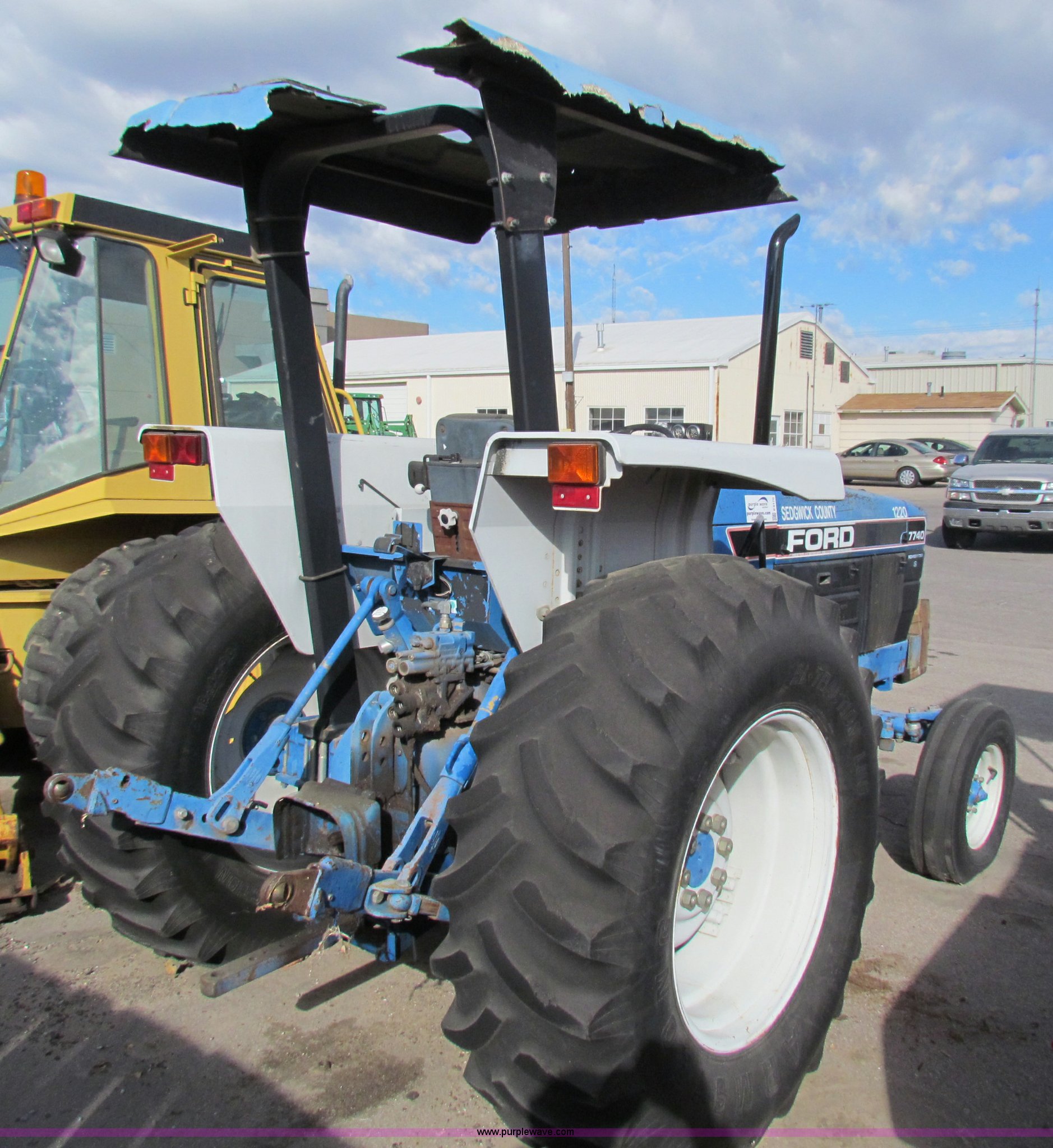 Purple Wave is selling a used Tractor in Kansas. This item is a 1992 Ford New Holland 7740 tractor with the following: 2,509 hours on meter, Ford four cylinder diesel engine, Manual transmission, 16F-2R gears, Locking differential, Spring suspension seat, Three point, 540 PTO, Draw bar, (2) rear hydraulic remotes, (7) suitcase weights, 7.50-16 front tires, 18.4-30 rear tires, Serial BD257332J07FA5150