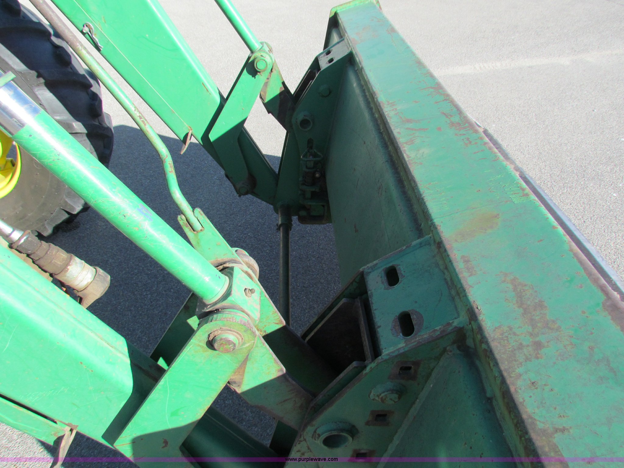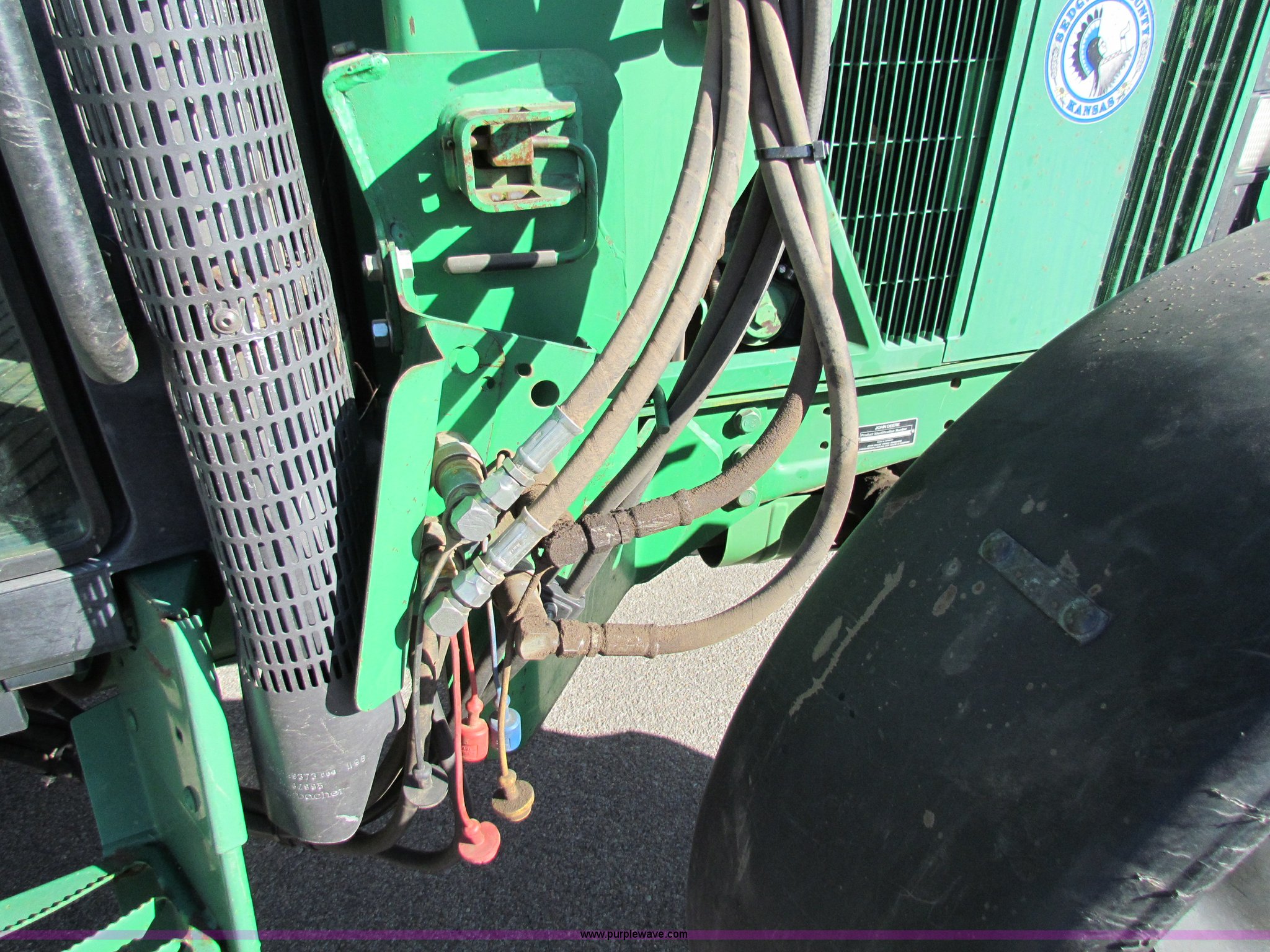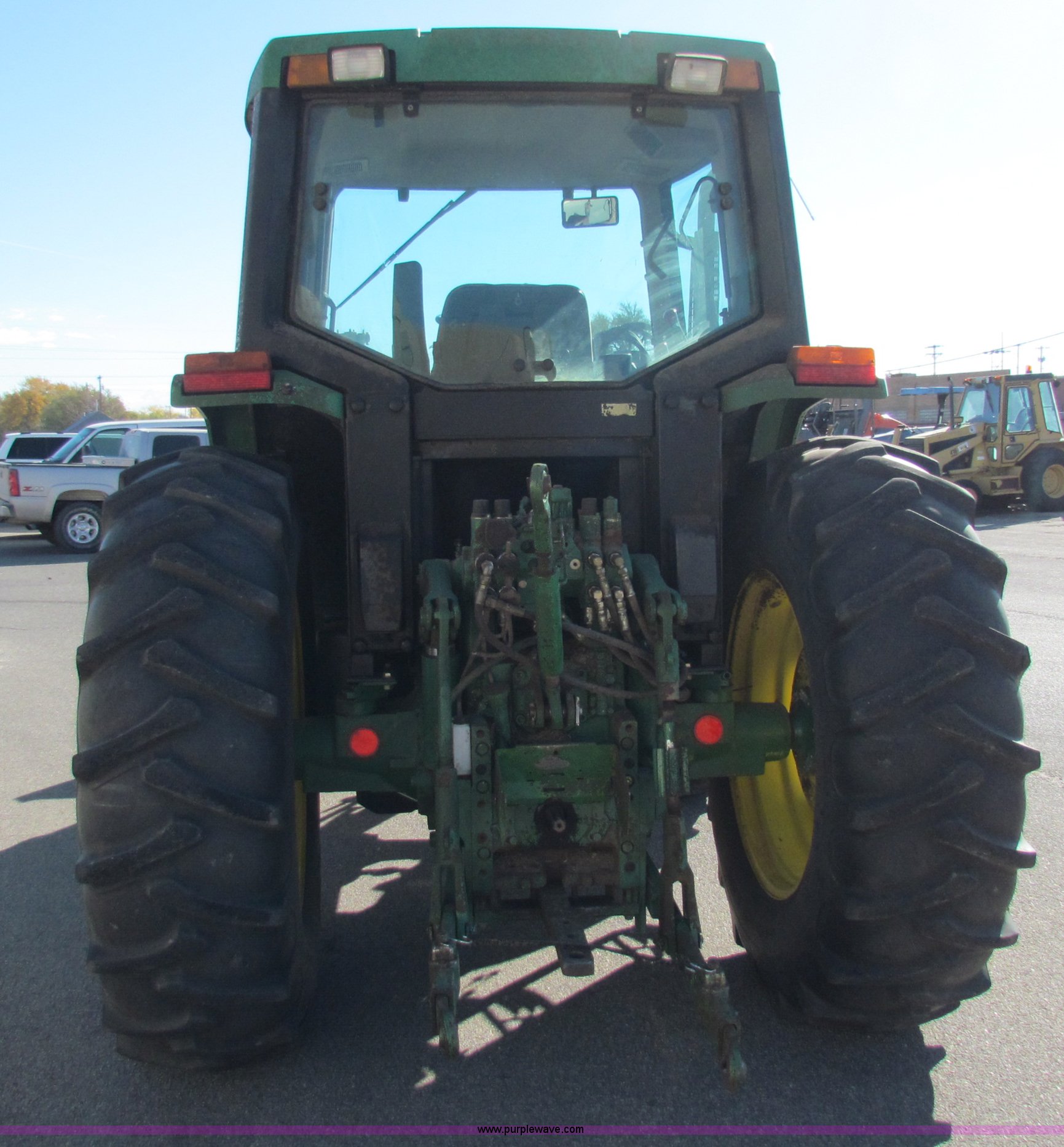 Purple Wave is selling a used Tractor in Kansas. This item is a 1996 John Deere 6400 tractor with the following: 3,640 hours on meter, John Deere 4045 diesel engine, John Deere Power Quad transmission, 16F-16R gears, Four wheel drive, AC and heat, AM/FM, Murphy tattle tale system, John Deere 640 Loader, 6' bucket, Joystick loader control, 540/1000 PTO, Three point, Draw bar, Work lights, (8) wheel weights, 14.9R24 front tires, 18.4R34 rear tires, Recently replaced battery, Serial L06400V169083