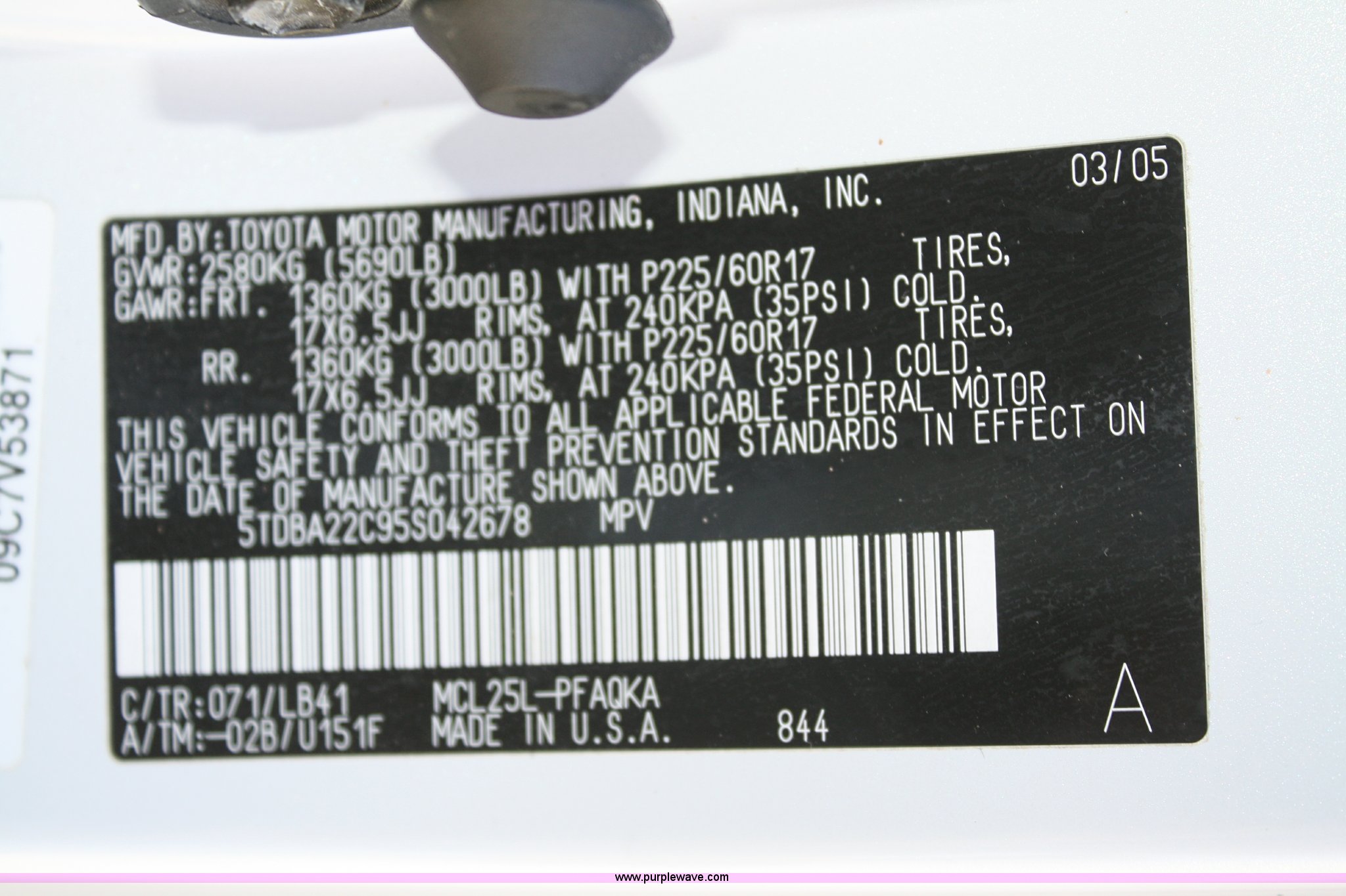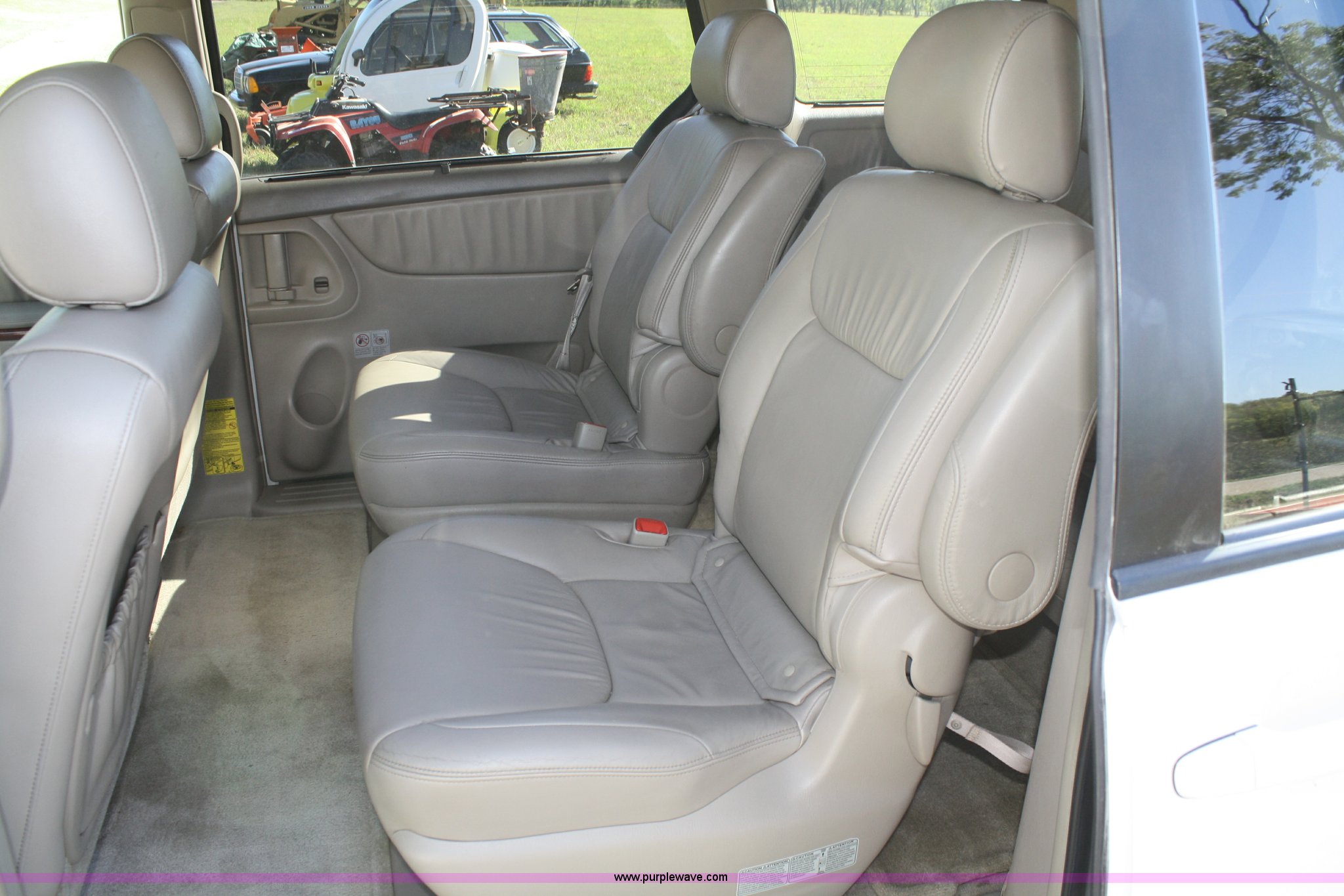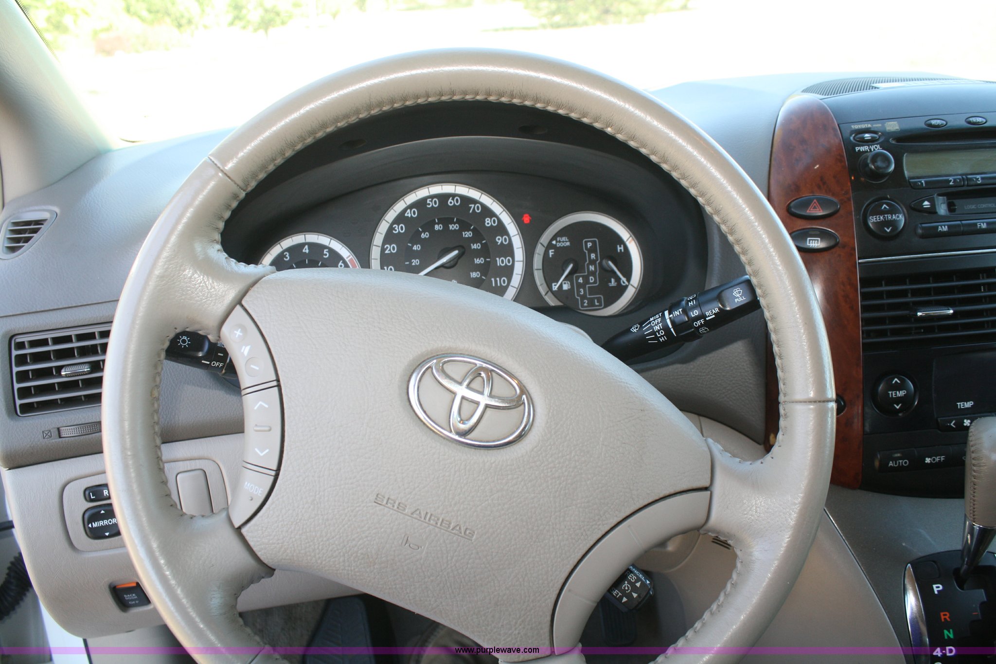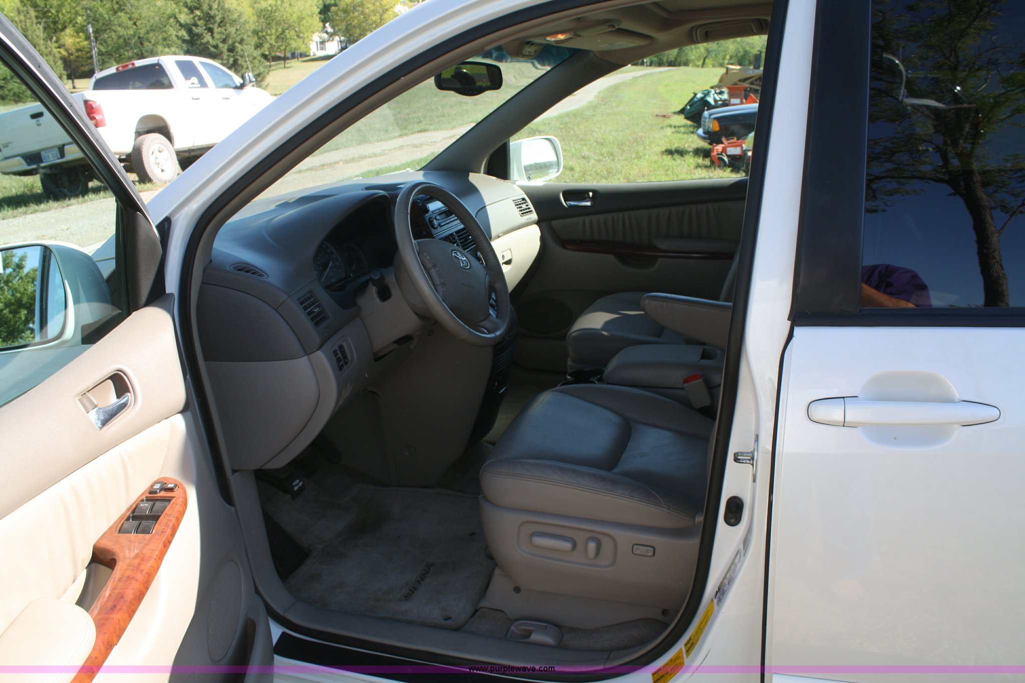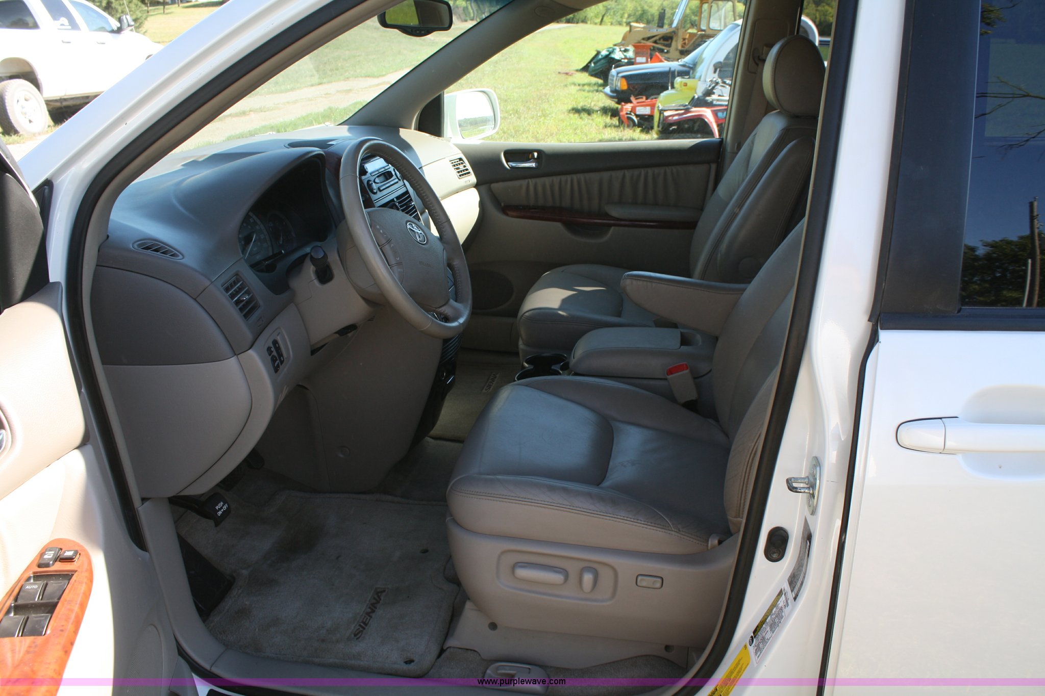 Purple Wave is selling a used Passenger Vehicle in Kansas. This item is a 2005 Toyota Sienna minivan with the following: 81,484 miles on odometer, 3.3L V6 MPI engine, Automatic transmission, AC and heat, Tilt, Cruise, AM/FM/CD, DVD player, Power windows, locks, mirrors, and seats, Heated seats, Leather interior, Sunroof, 225/60R17 tires