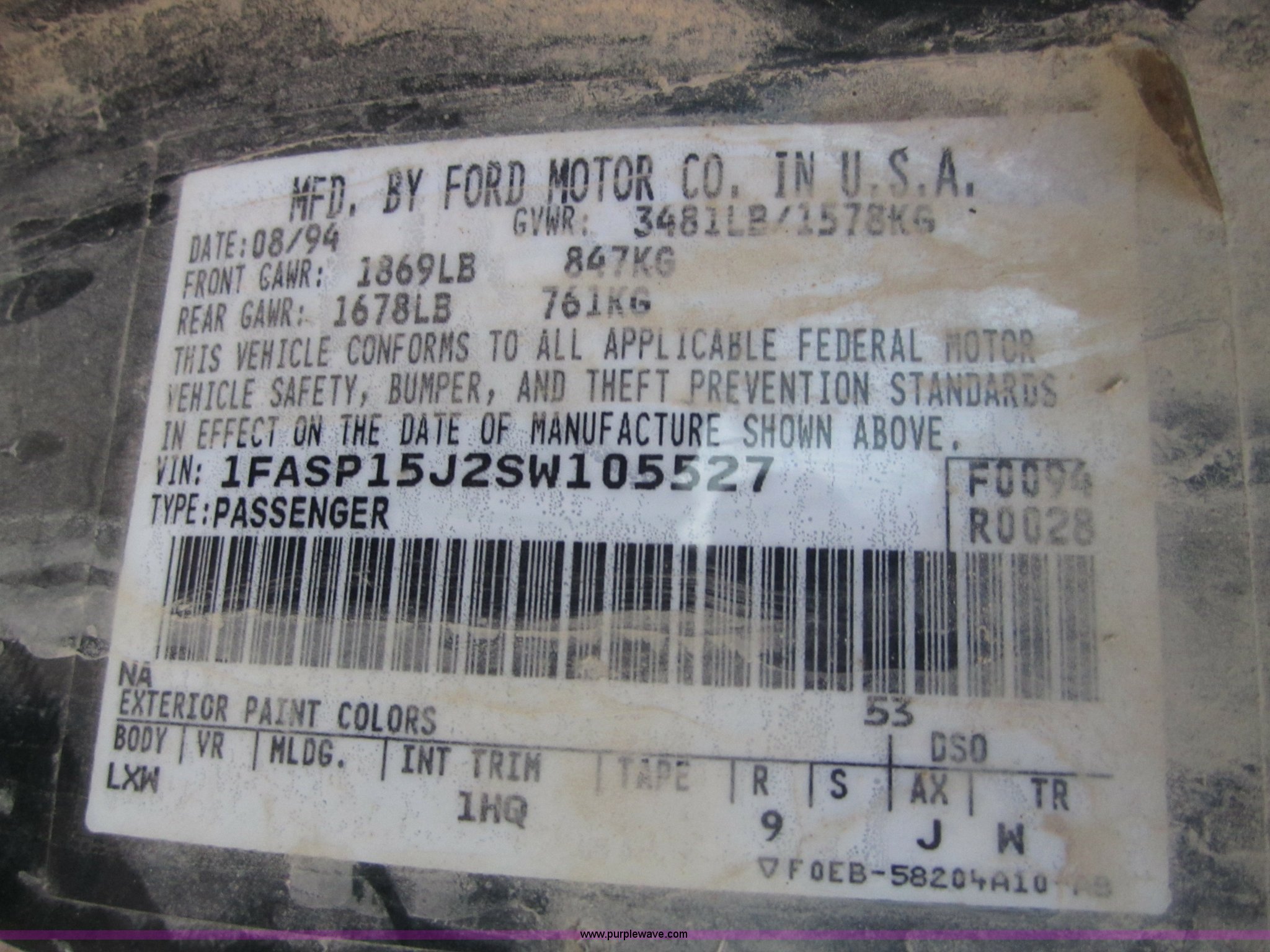 Purple Wave is selling a used Passenger Vehicle in Kansas. This item is a 1995 Ford Escort LX with the following: 228,131 miles on odometer, 1.9L I4 EFI gas engine, Four speed manual transmission, AC and heat, AC is inoperable, Manual windows and locks, 185R14 tires, Low engine power