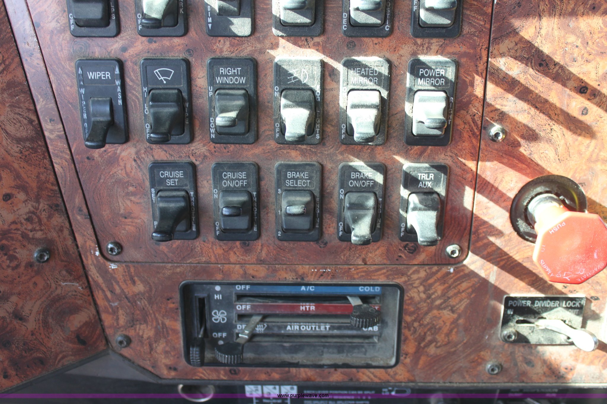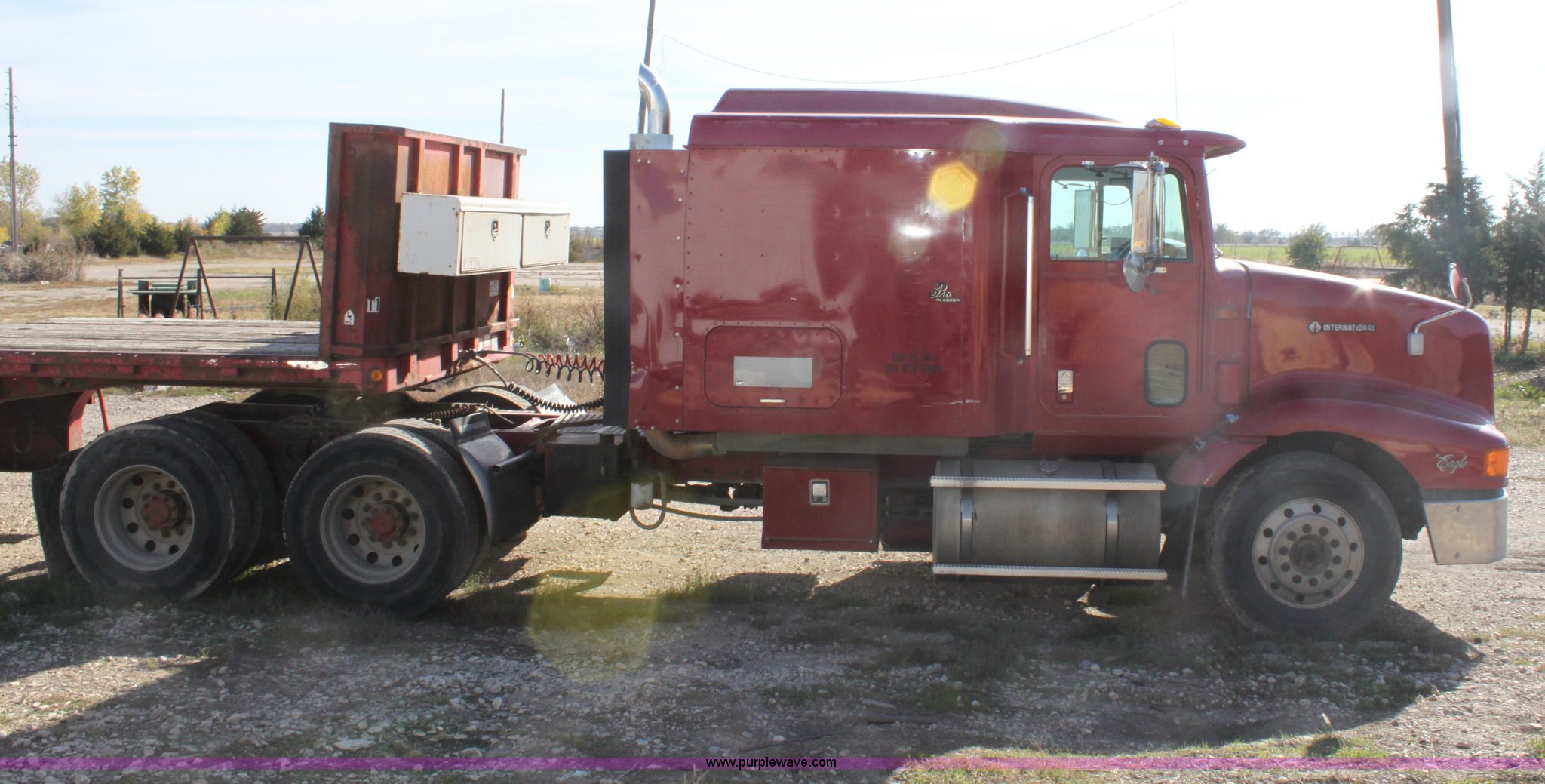 Purple Wave is selling a used Truck Tractor in Kansas. This item is a 1997 International 9200 tandem axle semi truck with the following: 862,145 miles on odometer, Cummins M11 Plus 10.8L L6 diesel engine, Eaton Fuller 10 speed manual transmission, AC and heat, Tilt, Cruise, AM/FM/cassette, Air suspension seat, Power mirrors, Heated mirrors, Passenger daylight door, Telescoping steering wheel, Air ride cab, Black heater, Air slide fifth wheel, Quarter fenders, Dual 100 gallon fuel tanks, Single rear exhaust stack, Aluminum deck plate, Pro sleeper, Storage, Chelsea PTO, Dump valves, Air suspension, Air brakes, Jake brake, 222" wheel base, 11R22.5 tires, 52,000 lbs GVWR, 12,000 lbs FAWR, 20,000 lbs IAWR, 20,000 lbs RAWR