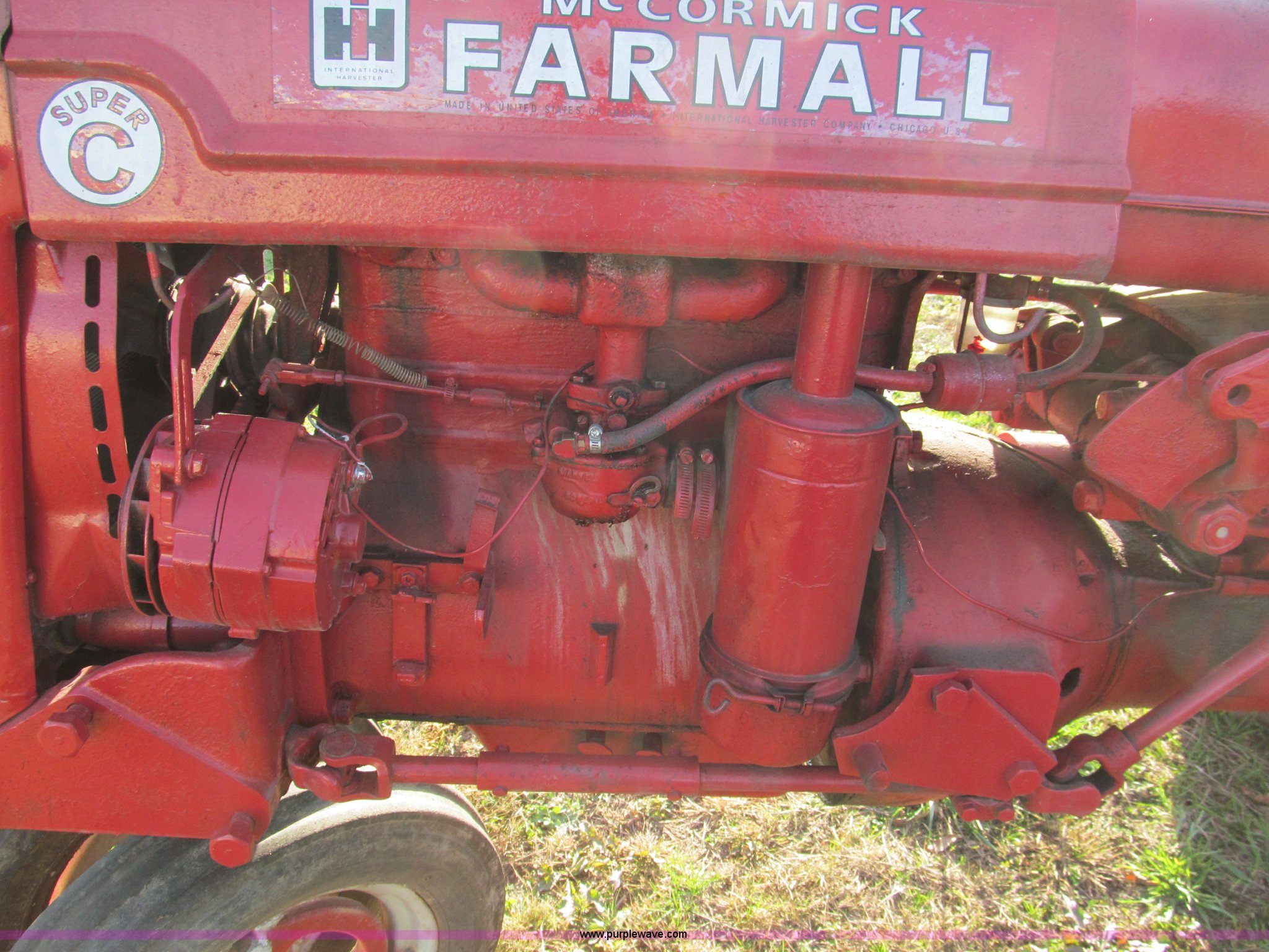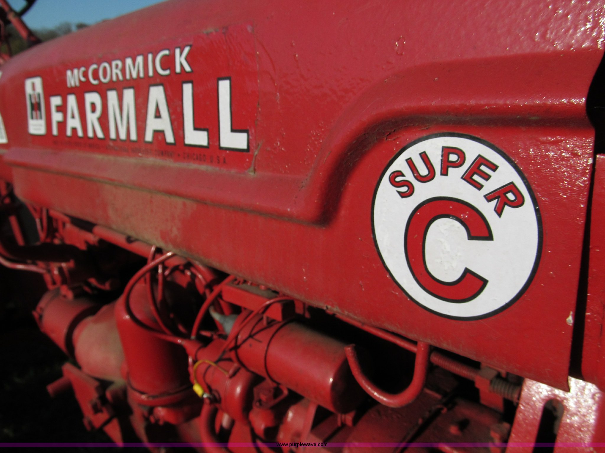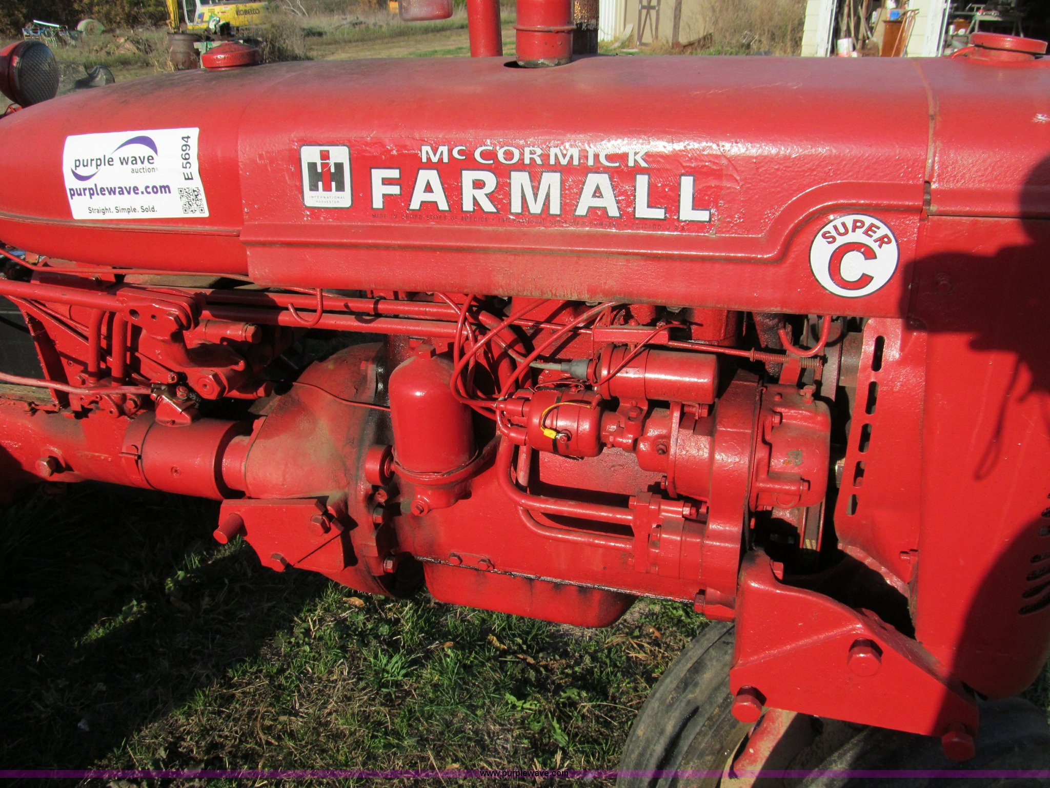 Purple Wave is selling a used Tractor in Missouri. This item is a 1951 International Farmall Super C tractor with the following: Four cylinder gas engine, Manual transmission, 4F-1R gears, Spring suspension seat, Three point, Draw bar, 540 PTO, (2) 100 lb rear wheel weights, 5.00-15 front tires, 11.2-36 rear tires, Serial 122381