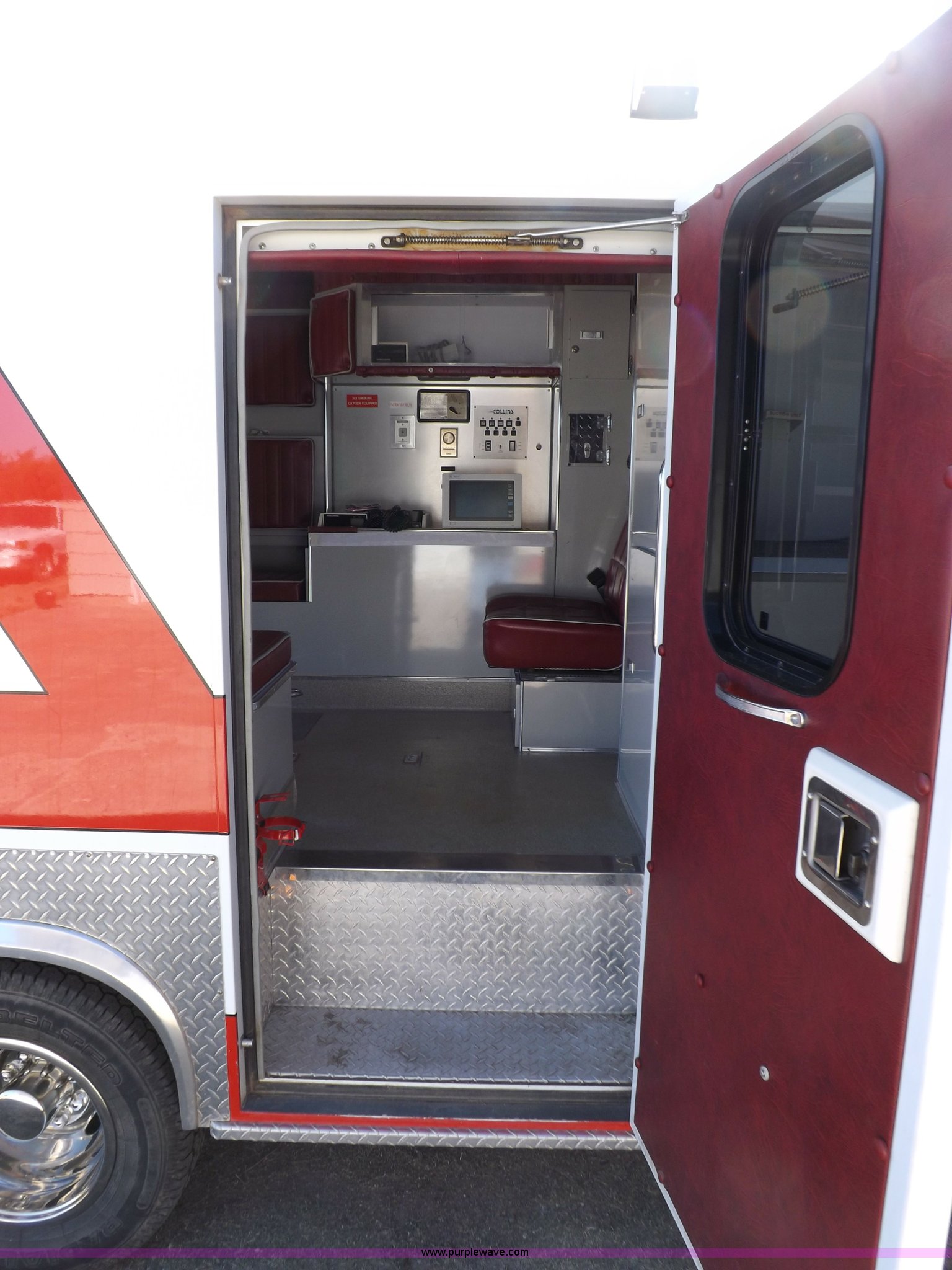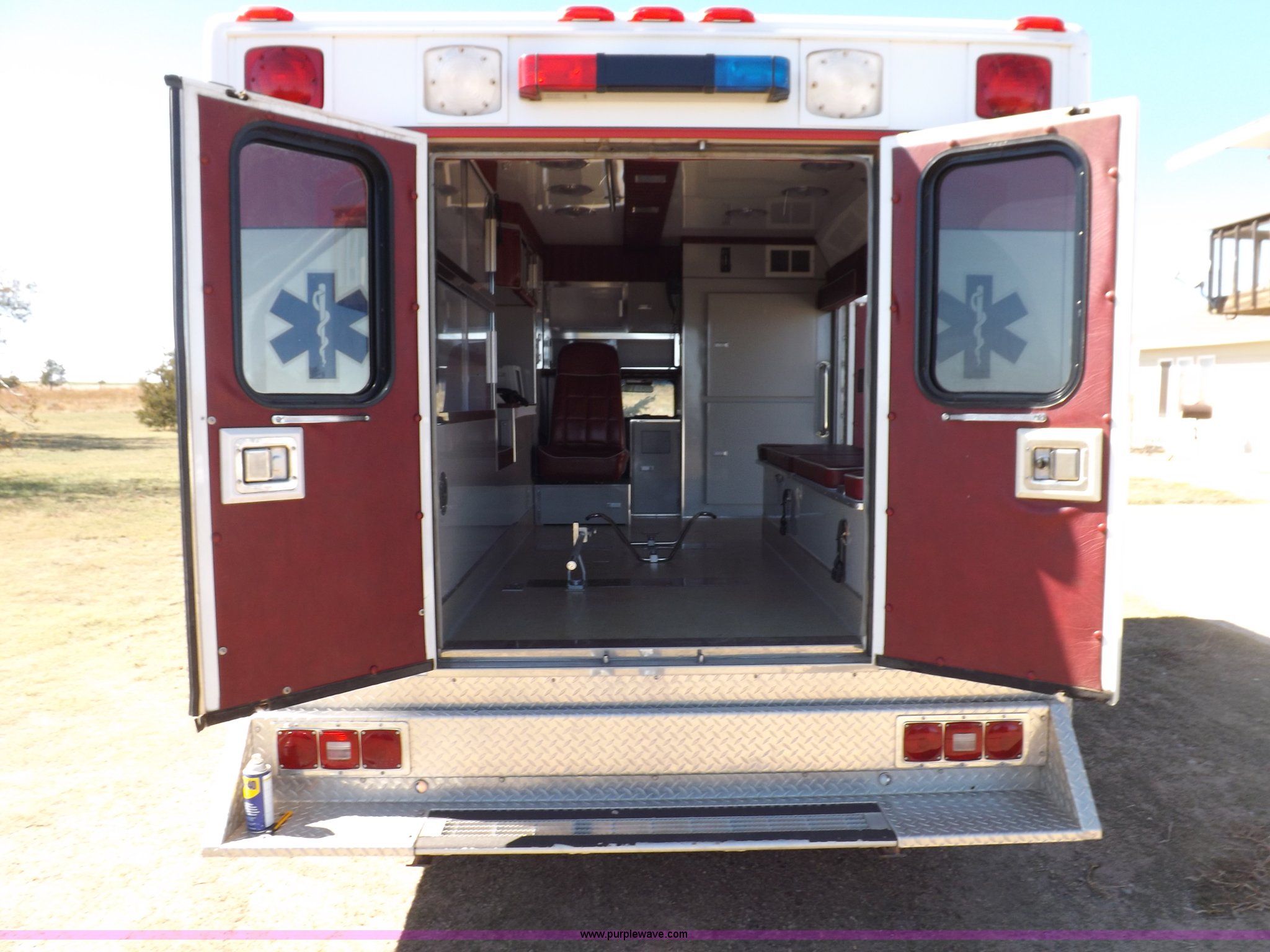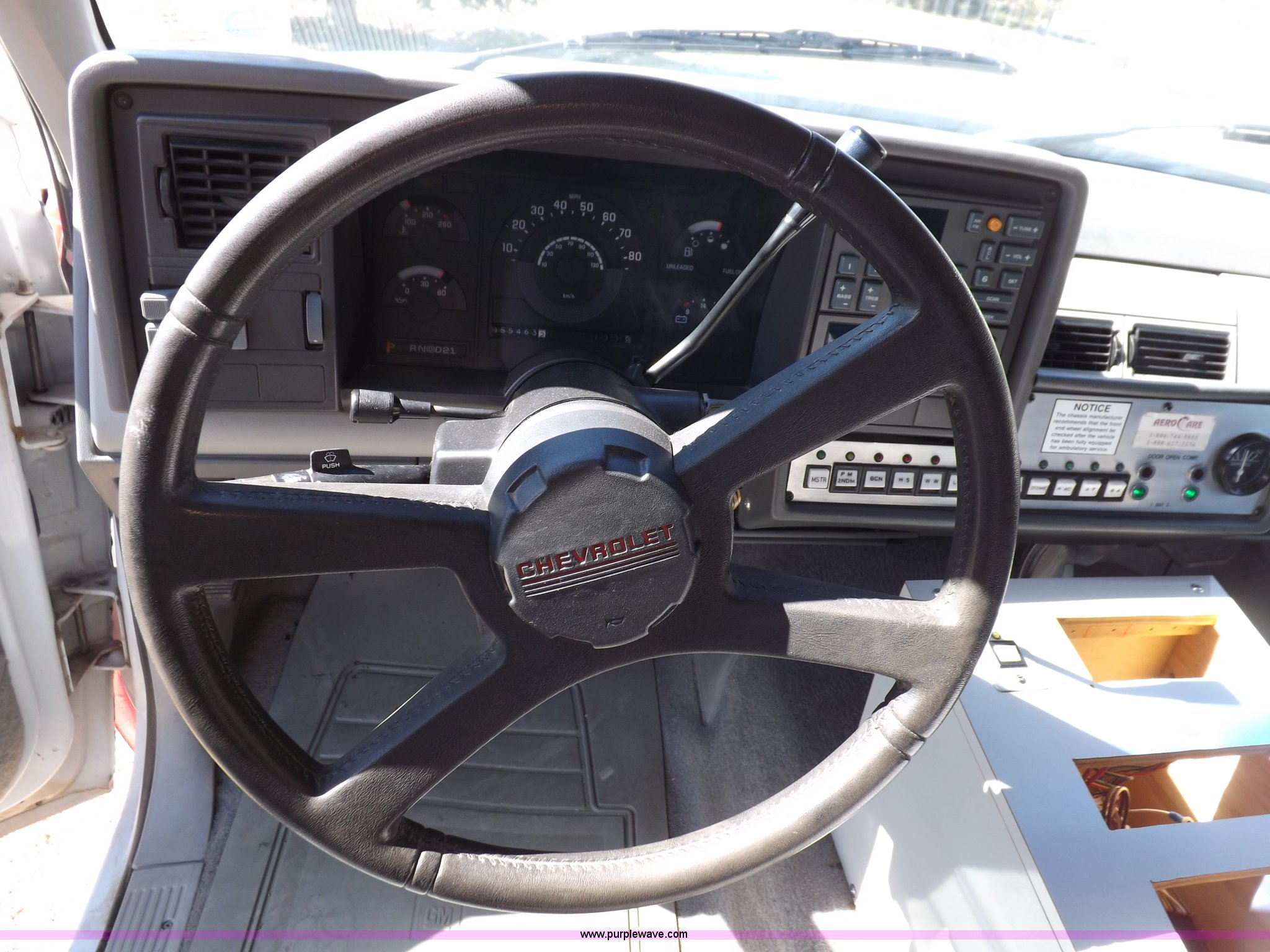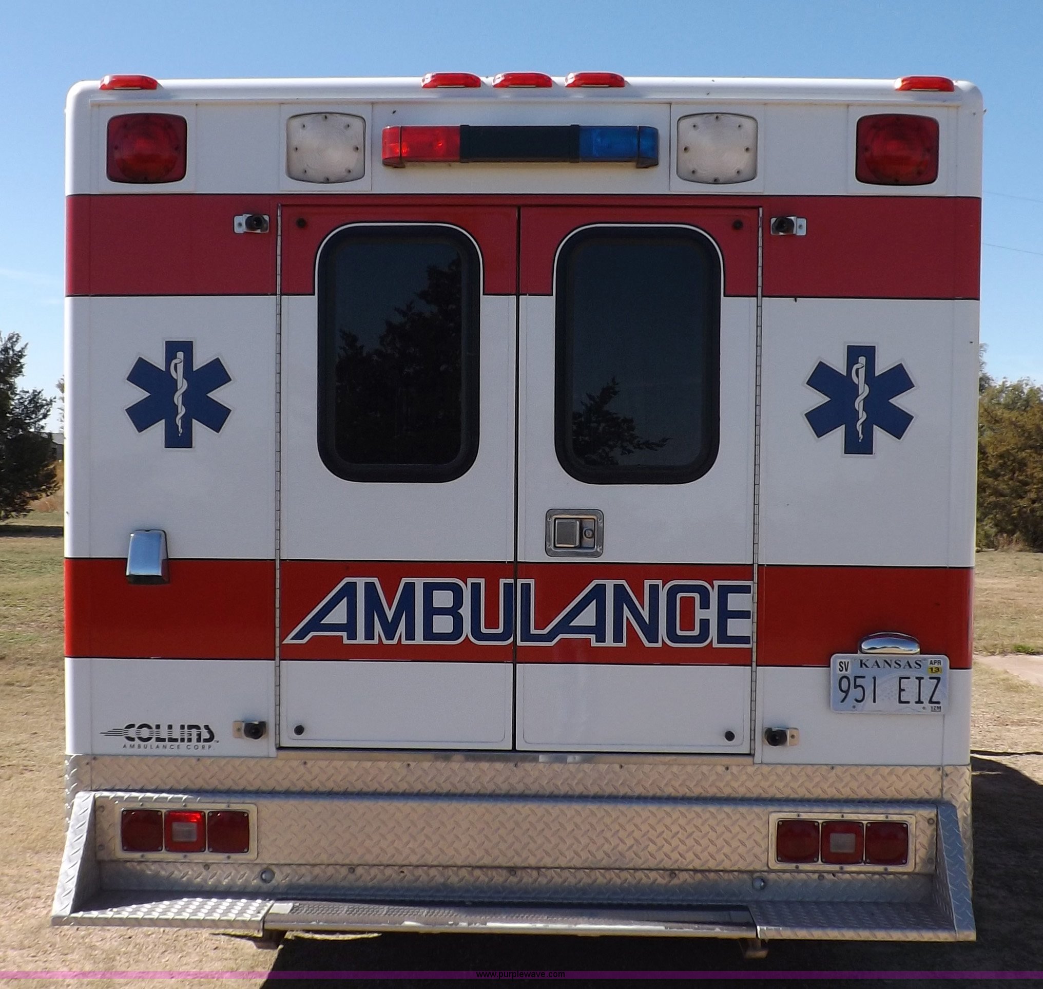 Purple Wave is selling a used Fire Truck or Emergency Vehicle in Kansas. This item is a 1991 Chevrolet Silverado C3500 ambulance with the following: 55,463 actual miles, 7.4L V8 gas engine, Automatic transmission, AC and heat, Tilt, Cruise, AM/FM, Manual windows and locks, Cloth interior, Wired 120V AC, Block heater, Heavy duty alternator, Grill guard, Mirror extensions, Whelen light package, Oxygen storage compartment, Turn signals in mirrors, Not wired, Rear folding step, Compressor, Striker Easy Pro 2 gurney, Space Lab Medical patient monitor, LifePac 10 Physio-Control defibrillator, Bedside storage compartments, 225/75R16 tires