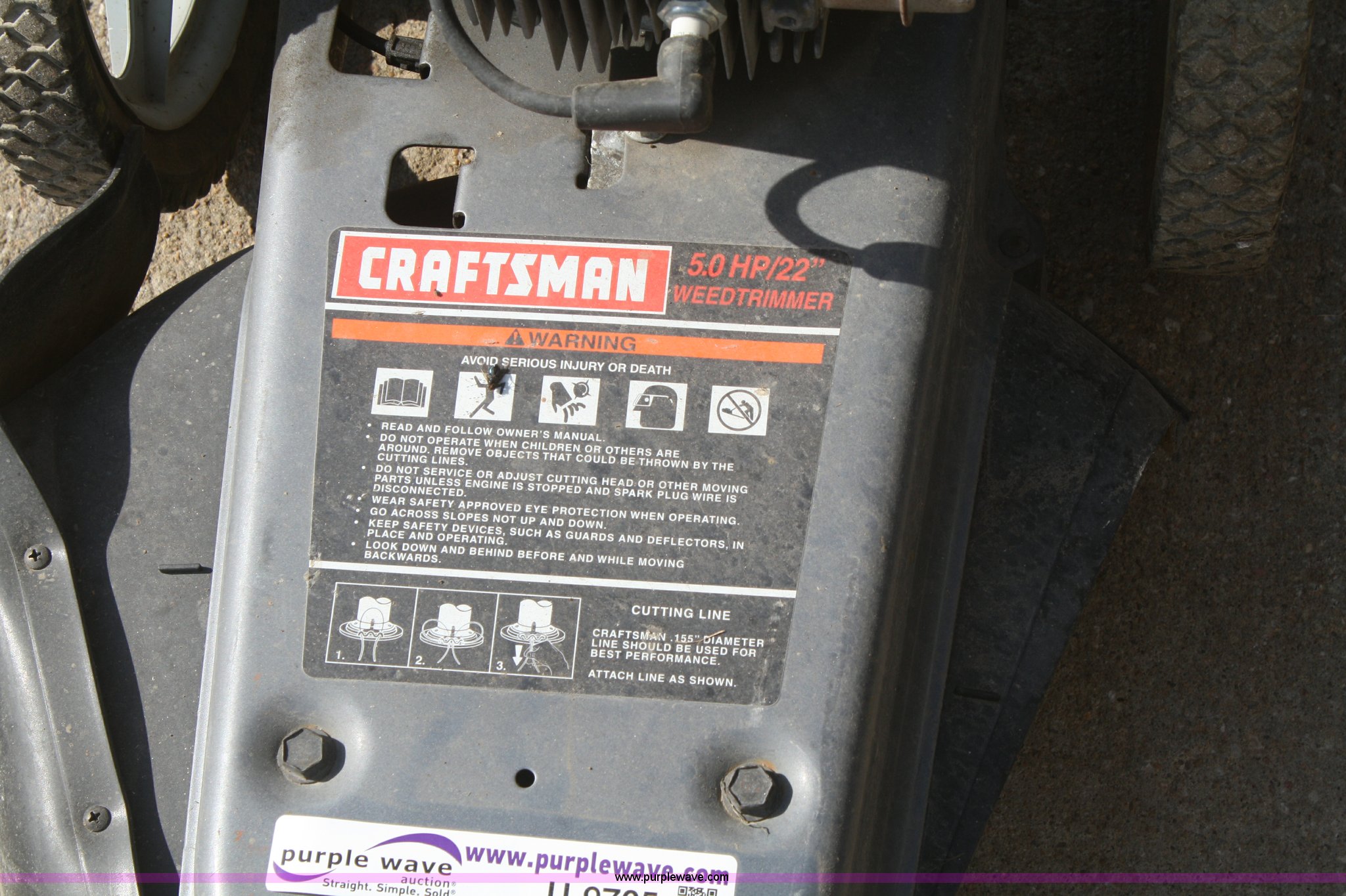 Purple Wave is selling a used Lawn and Garden in Kansas. This item is a Craftsman 22" weed trimmer with the following: Tecumseh 5.0 HP gas engine