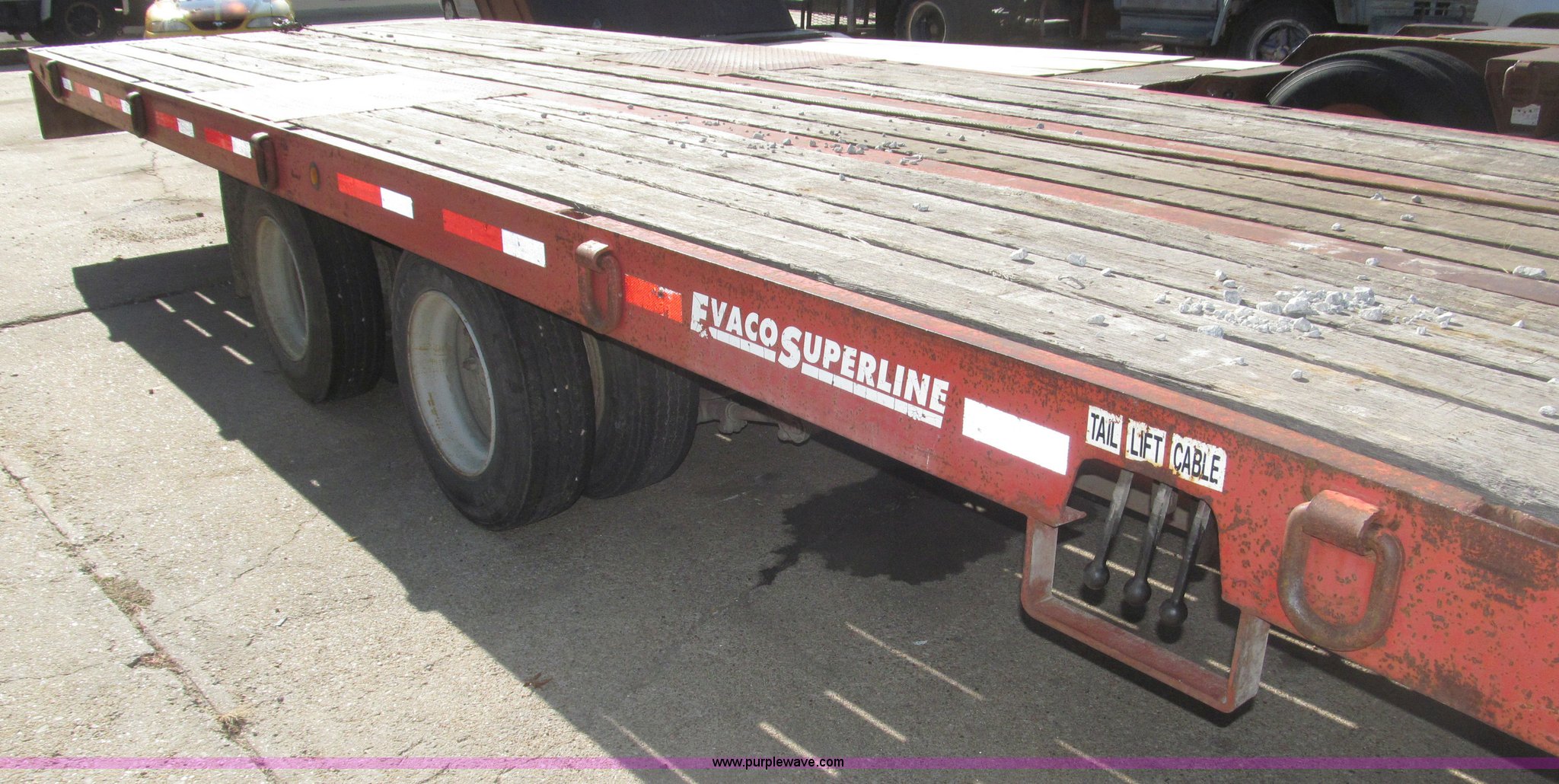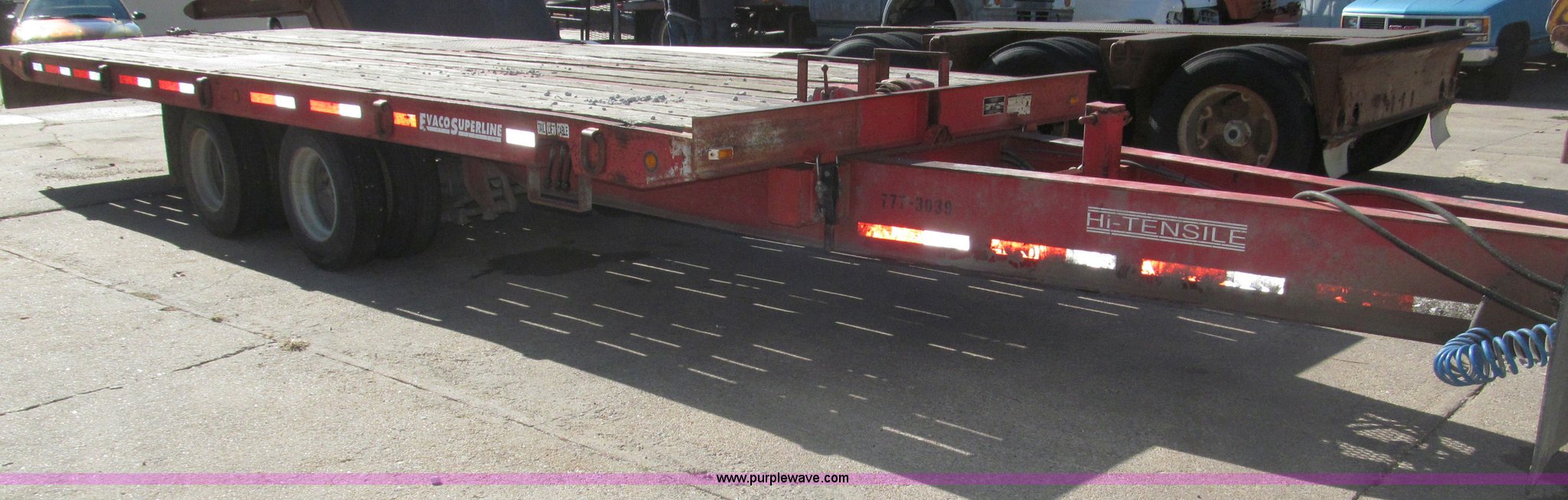 Purple Wave is selling a used Equip. Trailer in Nebraska. This item is a 1999 Evaco Superline 20T 24' tilt trailer with the following: Model D020T222T, Hydraulic, electrical, and gladhand connectors, Hydraulic tilt bed and tail, Wood bed, Tread plate tire plates, (4) stake pockets per side, (5) d-ring tie downs per side, 24'1.5"L x 8'W bed, 35" bed height, 13' hydraulic tail, DOT reflective tape, Bulldog jack, Bed side operators controls, Adjustable pintle hitch, (2) safety chains, (2) tongue mounted storage compartments, Tulsa 13,000 lb winch, Air/electric brakes, Mud flaps, 215/75R17.5 tires, GVWR 50,800 lbs, Annual inspection in May 2012, Winch cable showing wear, Truck not included