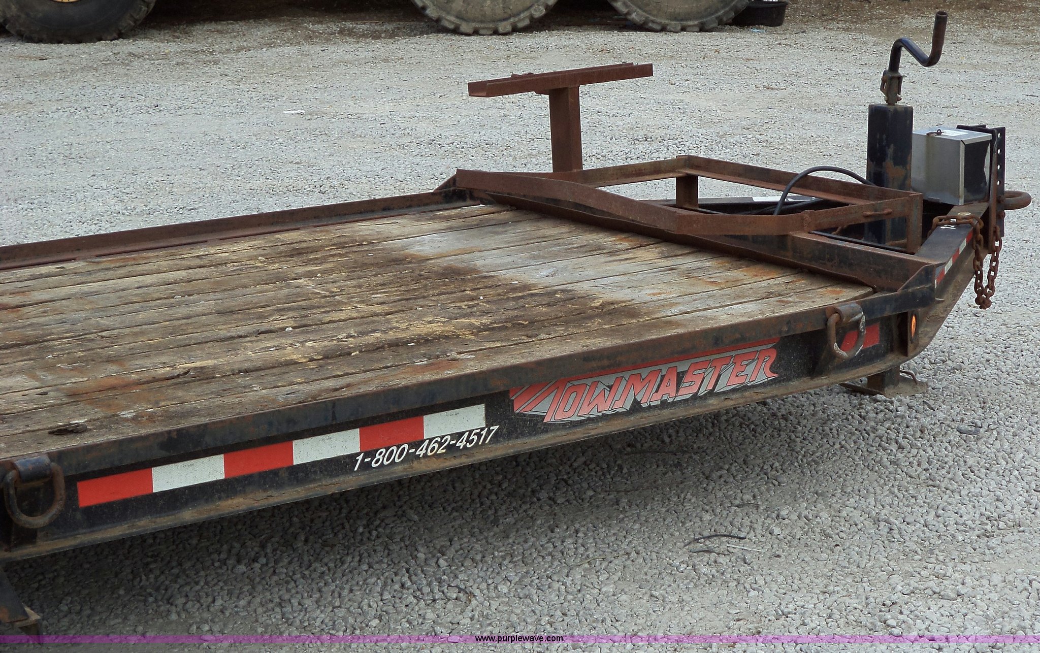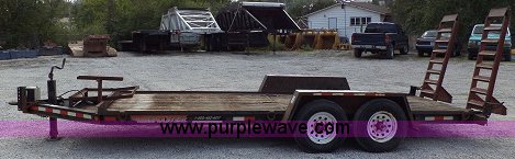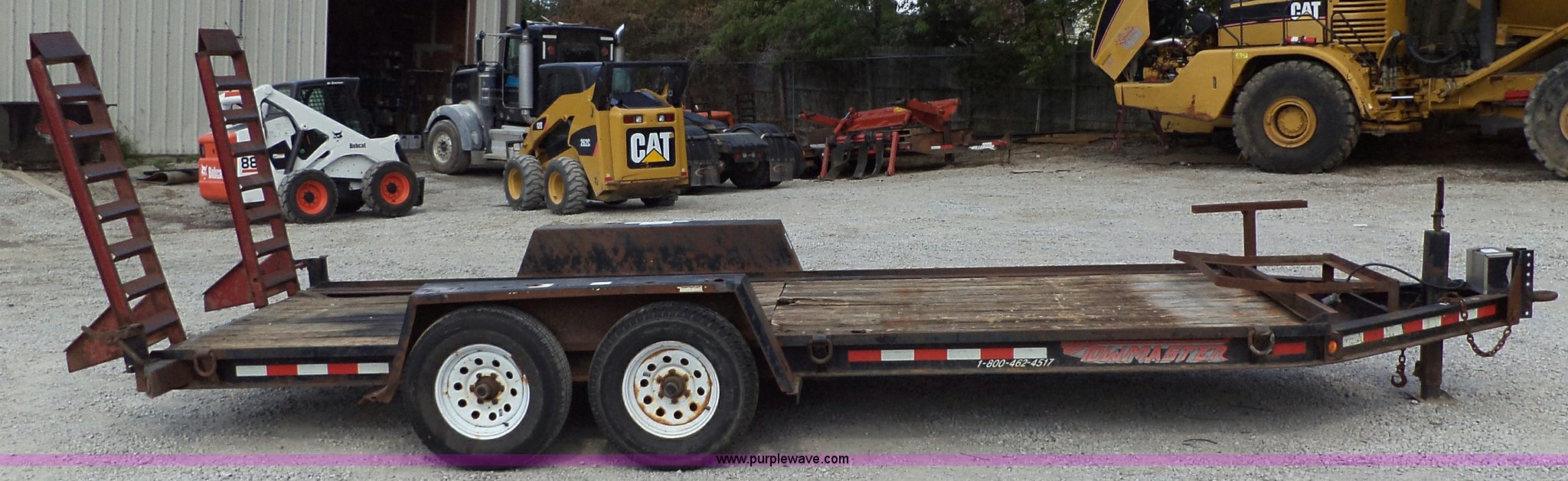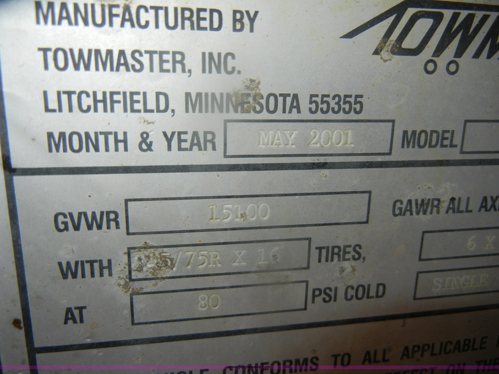 Purple Wave is selling a used Equip. Trailer in Missouri. This item is a 2001 Towmaster T-12DD trailer with the following: 18.5'L x 82"W, Wood floor, Needs repair, Pintle hitch, chains, lights, and jack, 5' fold down ramps, D-rings, Dual axle, 245/75R16 tires, GVWR 15,100 lbs