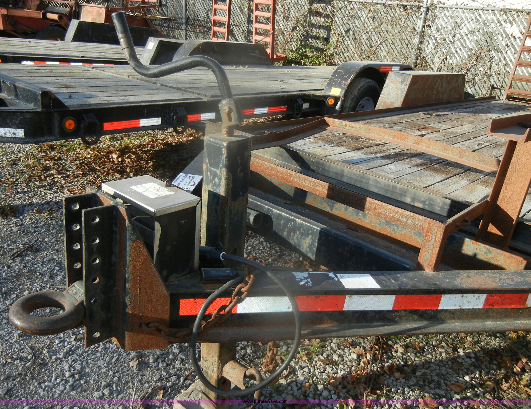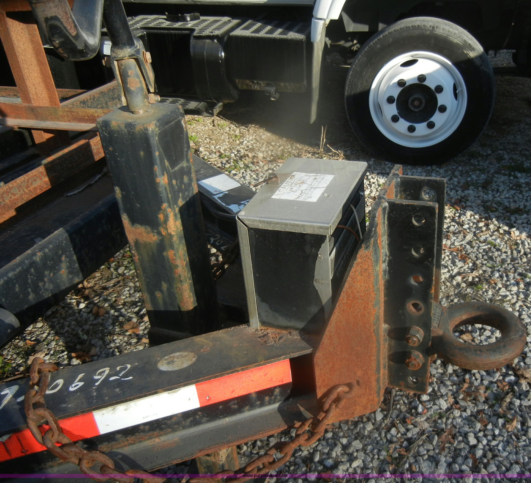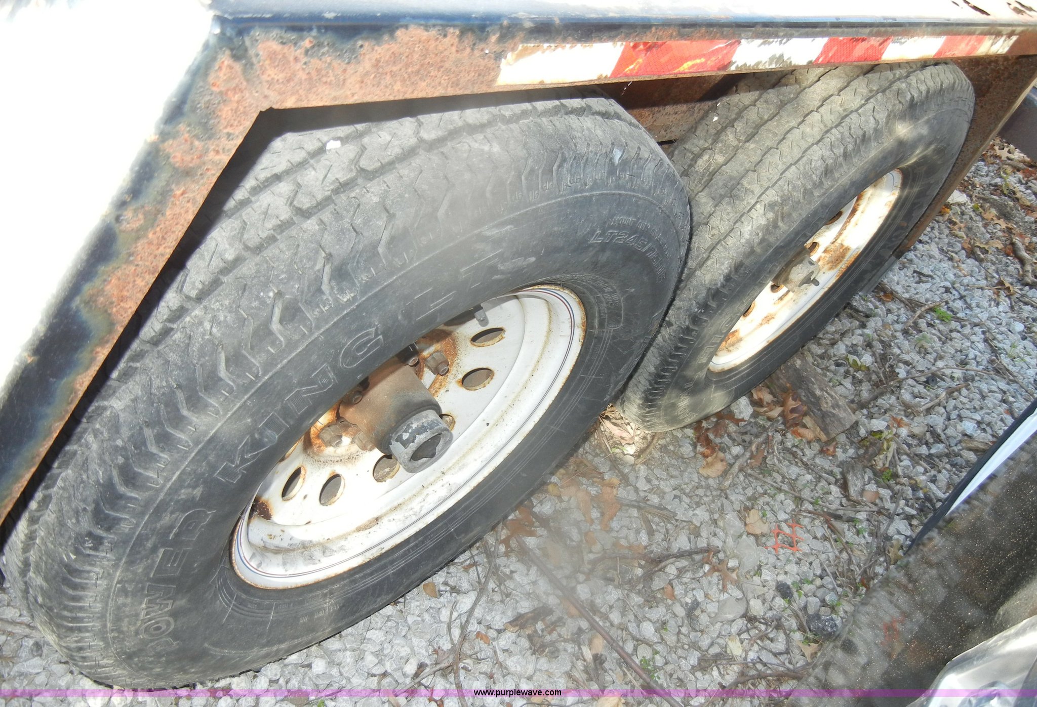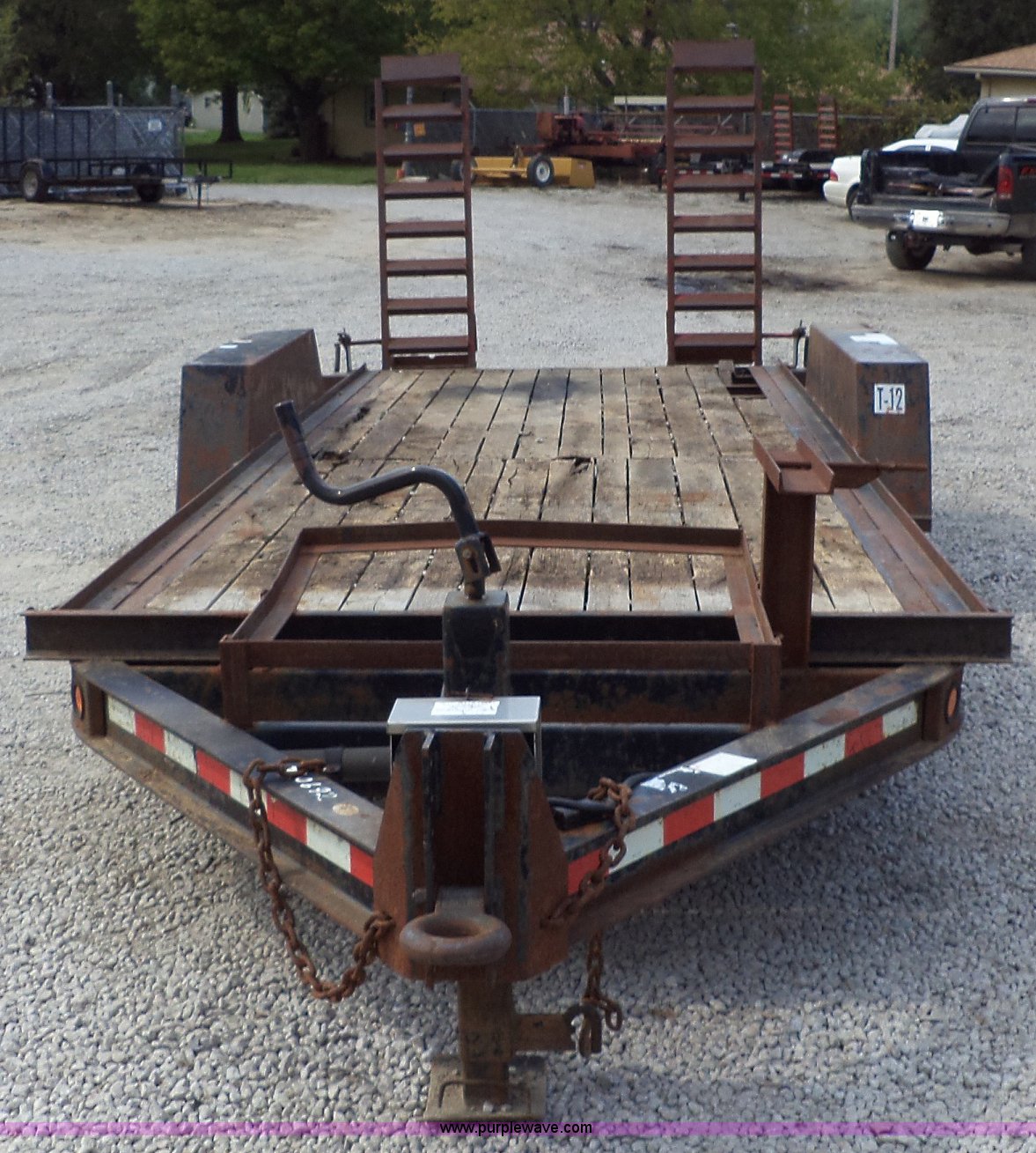 Purple Wave is selling a used Equip. Trailer in Missouri. This item is a 2001 Towmaster T-12DD trailer with the following: 18.5'L x 82"W, Wood floor, Needs repair, Pintle hitch, chains, lights, and jack, 5' fold down ramps, D-rings, Dual axle, 245/75R16 tires, GVWR 15,100 lbs