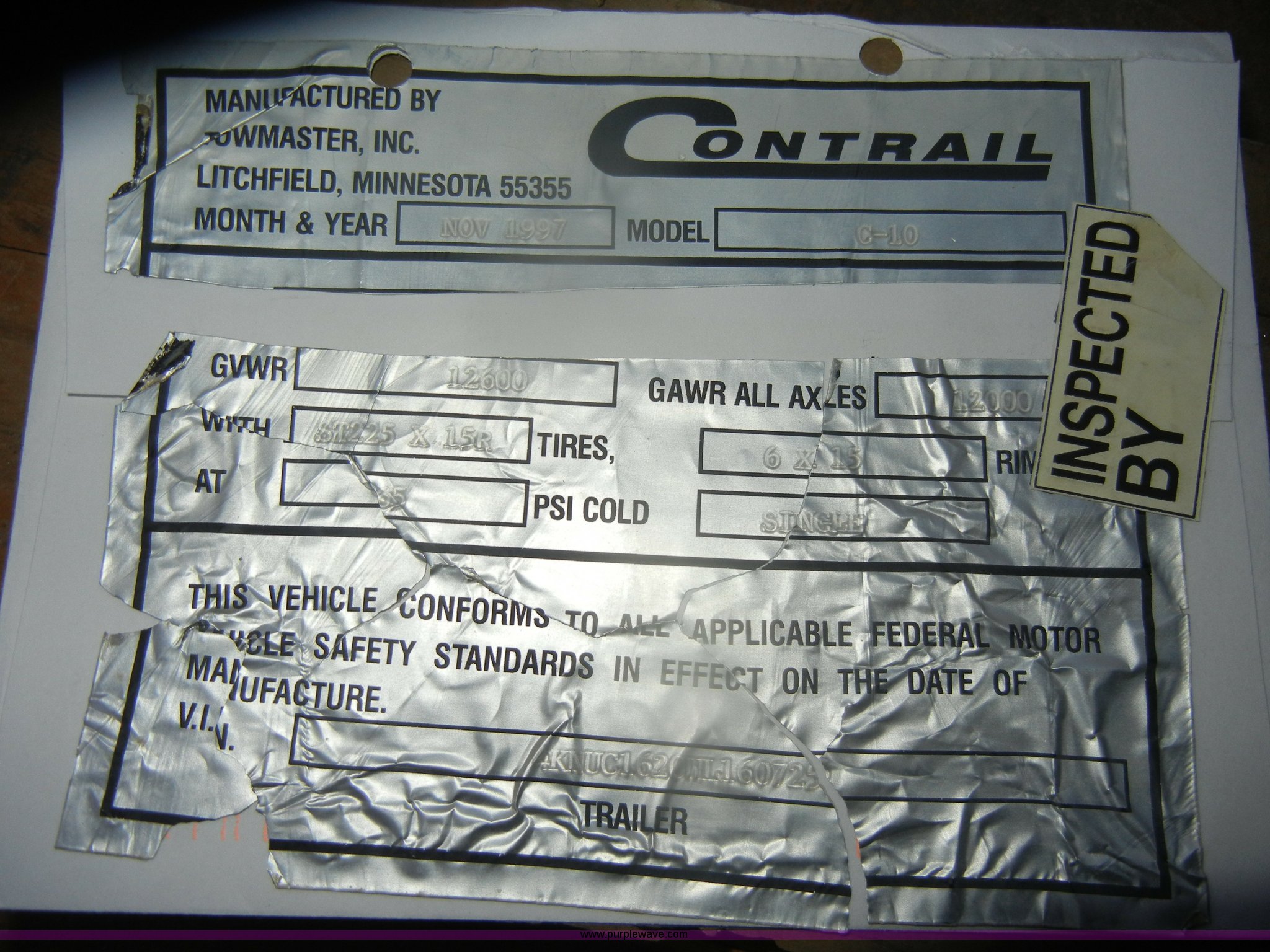 Purple Wave is selling a used Car or Utility Trailer in Missouri. This item is a 1998 Towmaster C-10 trailer with the following: 16'L x 78"W, Wood floor, Pintle hitch, chains, lights, and jack, 5' fold down ramps, Dual axle, 225/75R15 tires, GVWR 12,600 lbs