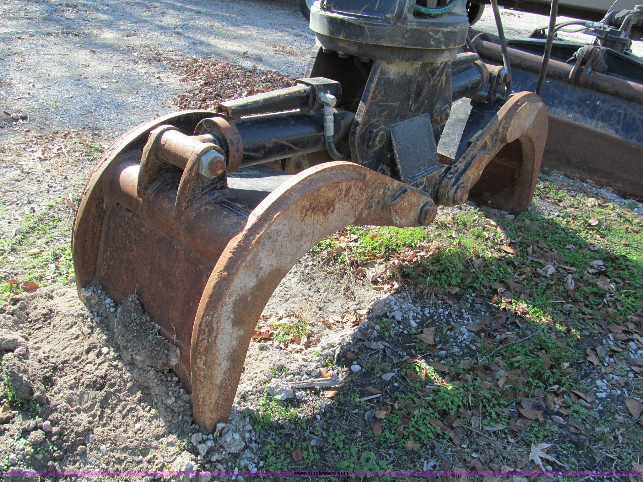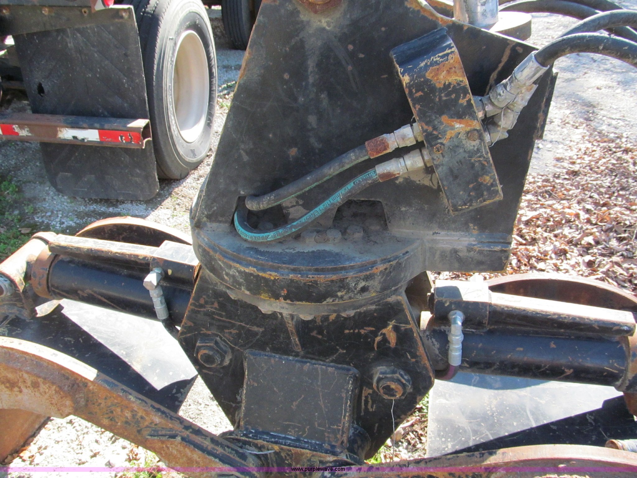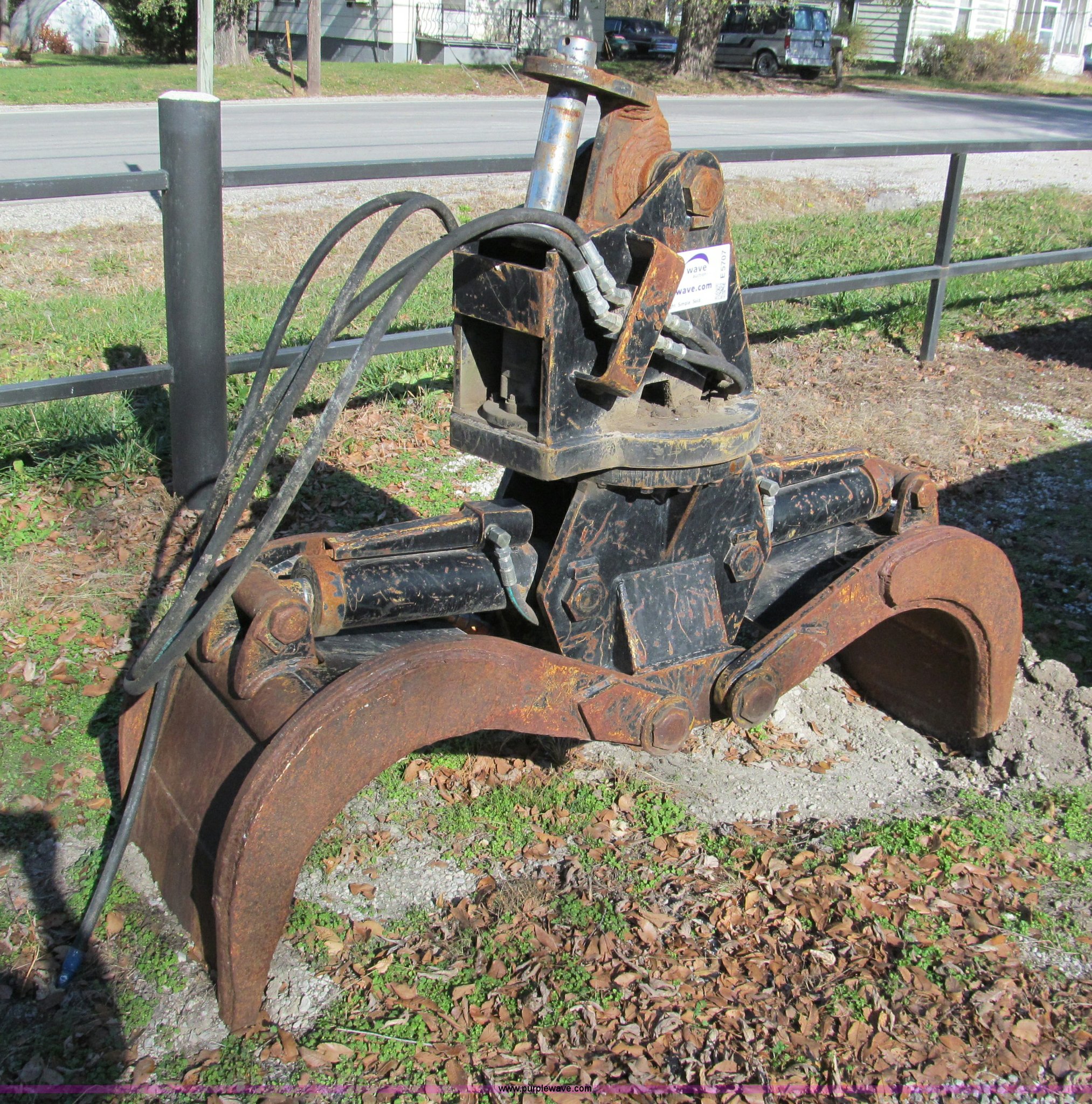 Purple Wave is selling a used Excavator Attach. in Missouri. This item is a 24" hood butt type grapple with the following: Continuous rotation, Flat faced fittings, Last used on Caterpillar 312 excavator
