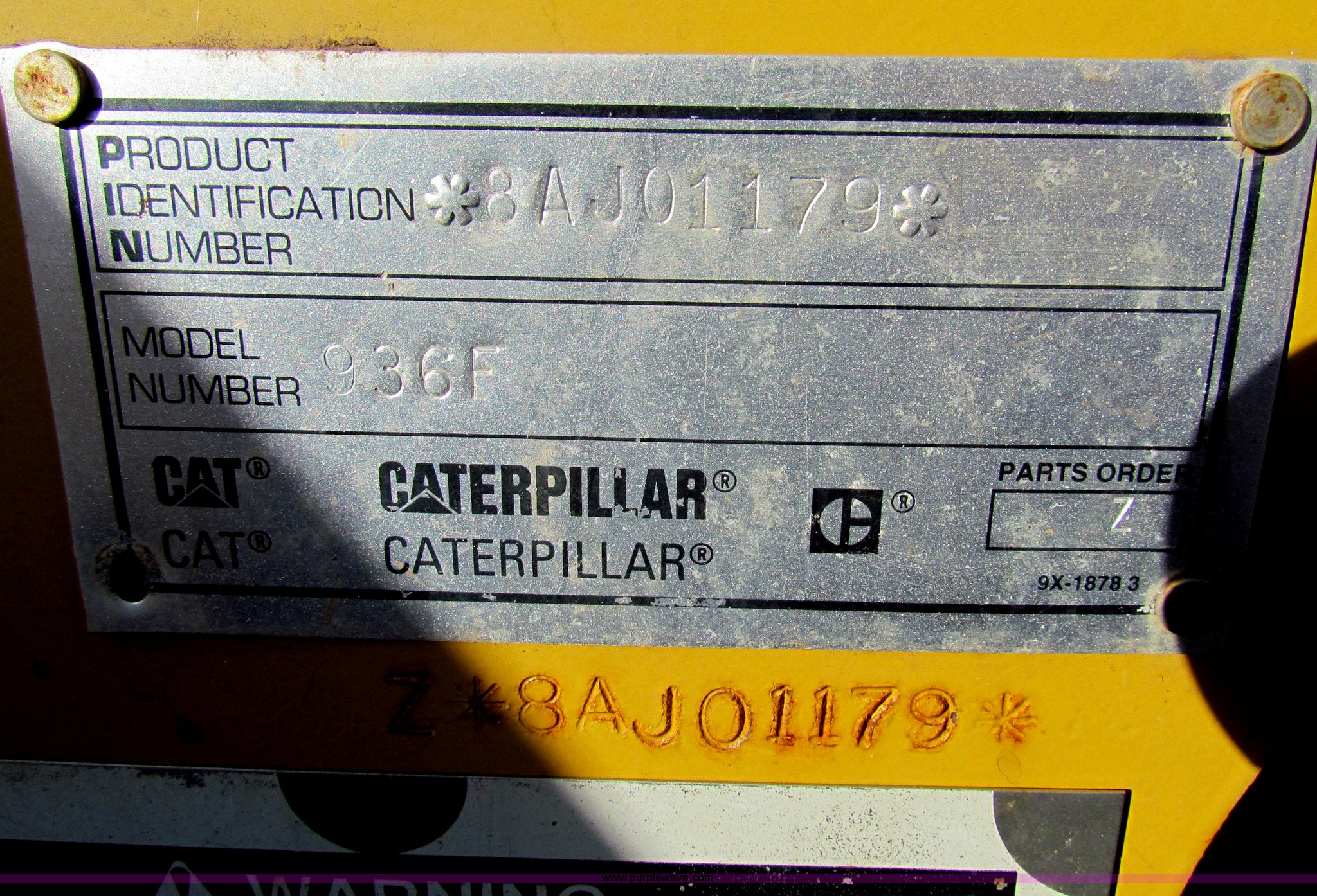 Purple Wave is selling a used Wheel Loader in Kansas. This item is a 1993 Caterpillar 936F articulated wheel loader with the following: 5,384 hours on meter, Caterpillar 3304 four cylinder diesel engine, Four speed power shift transmission, AC and heat, AC needs charged, AM/FM/cassette, Suspension seat, Tilt steering column, Front and rear work lights, Front and rear windshield wipers, Balderson quick attach, 3 cu.yd. bucket capacity, 106"W, Bolt on edge, Joystick loader control, Rear counter weights, Front hydraulic remote, 20.5R25 tires, 27,220 lbs base operating weight, Serial 8AJ01179