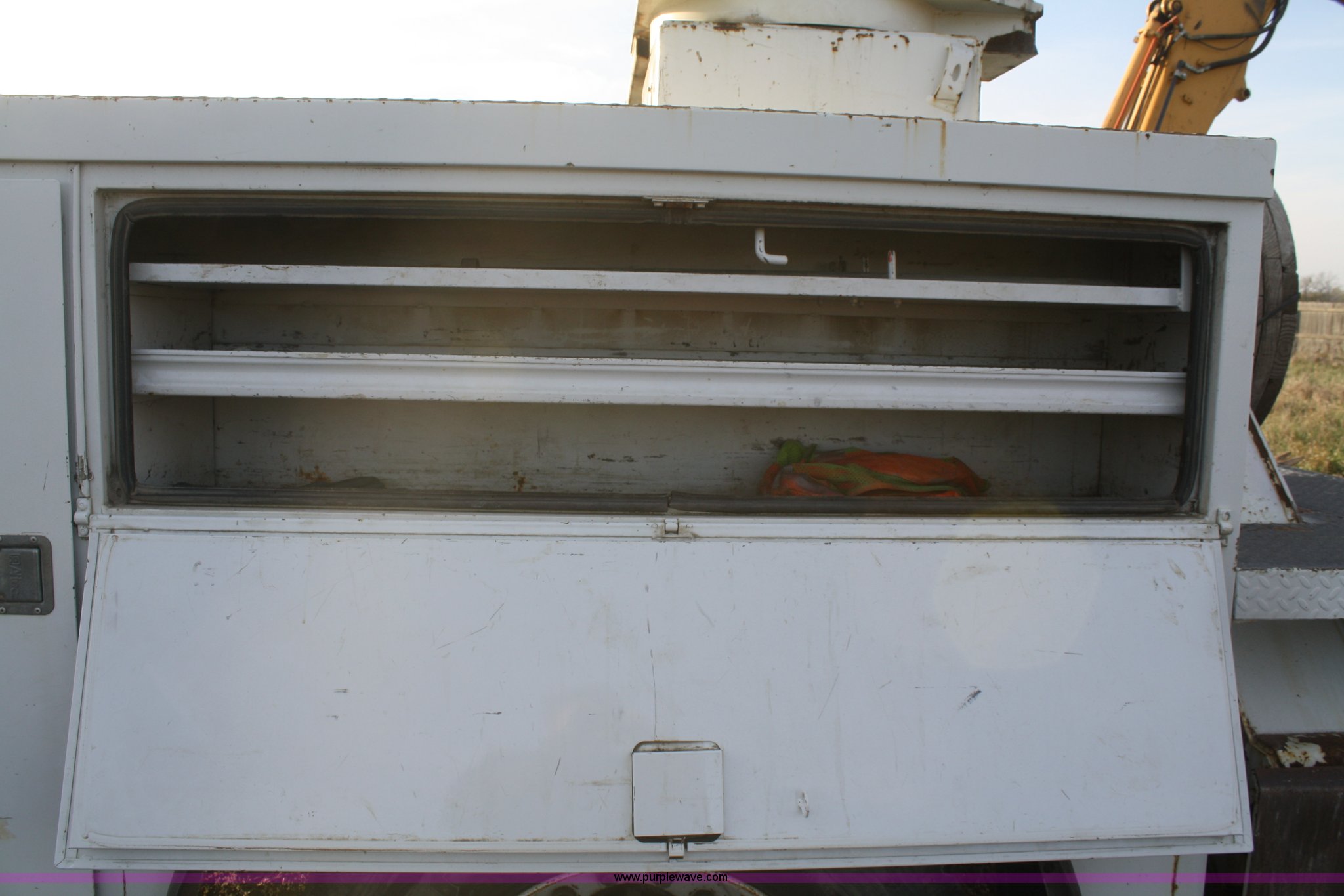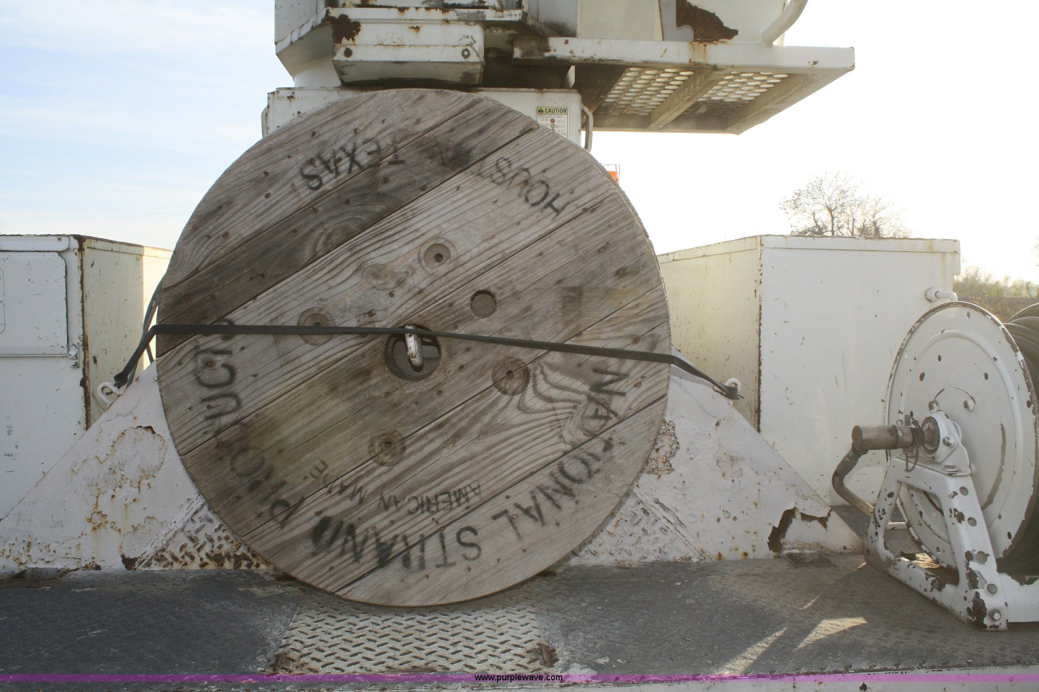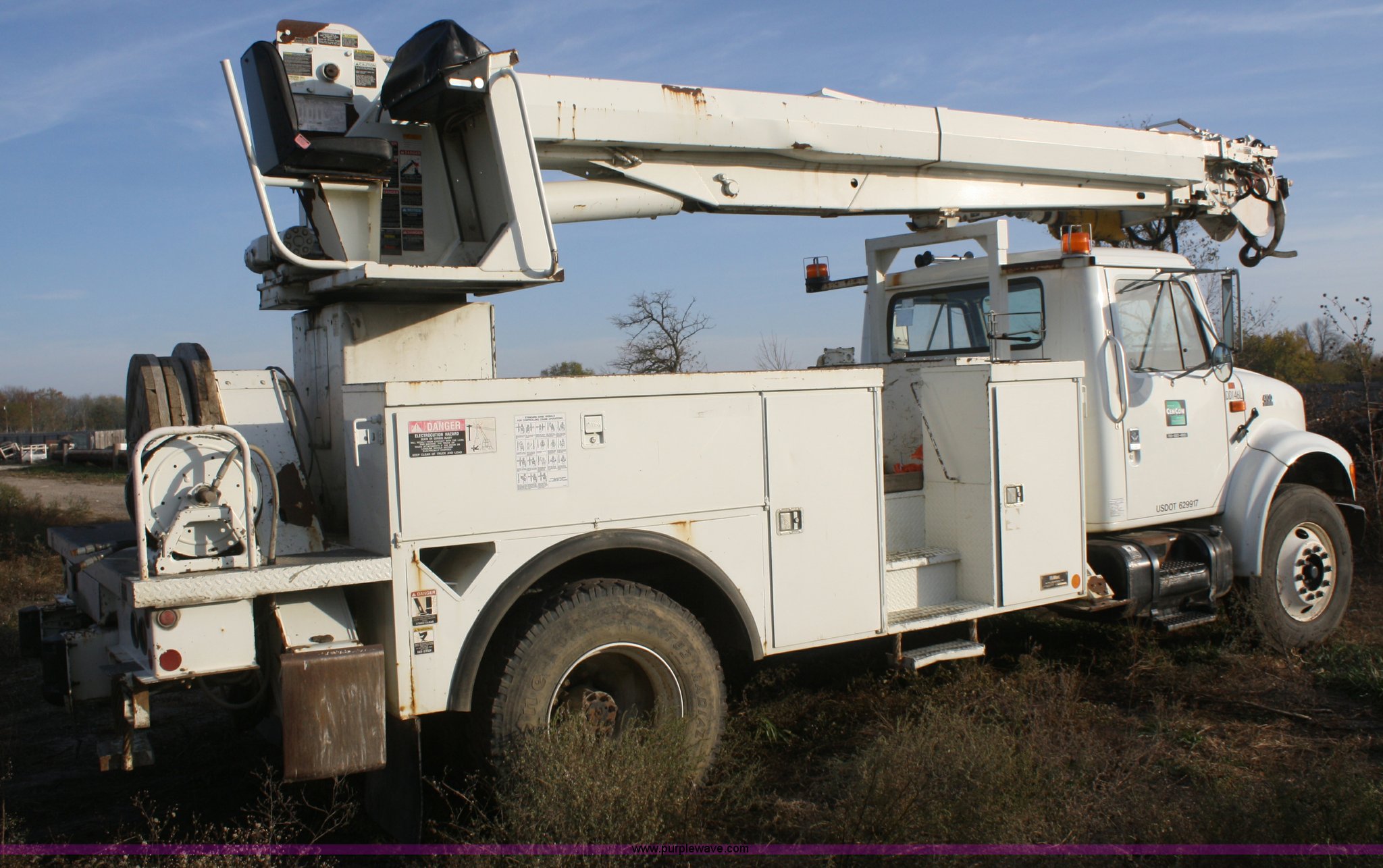 Purple Wave is selling a used Digger Derrick Truck in Kansas. This item is a 2001 International 4700 digger derrick truck with the following: 85,565 miles on odometer, International DT466E 7.6L L6 diesel engine, Automatic transmission, AC and heat, Cruise, 50 gallon fuel tank, Altec D947TR 16' bed, Serial 0201BA7885, Outriggers, 35' boom, 24,000 lbs load capacity, 12,000 lbs rope winch capacity, Pole guide, Auxiliary hydraulics on boom, Rear auxiliary hydraulic hose and reel, Strobe light, Pintle hitch, Rear air hookups, Spring suspension, PTO, Air brakes, 188" wheelbase, 11R22.5 tires, Engine has cracked head