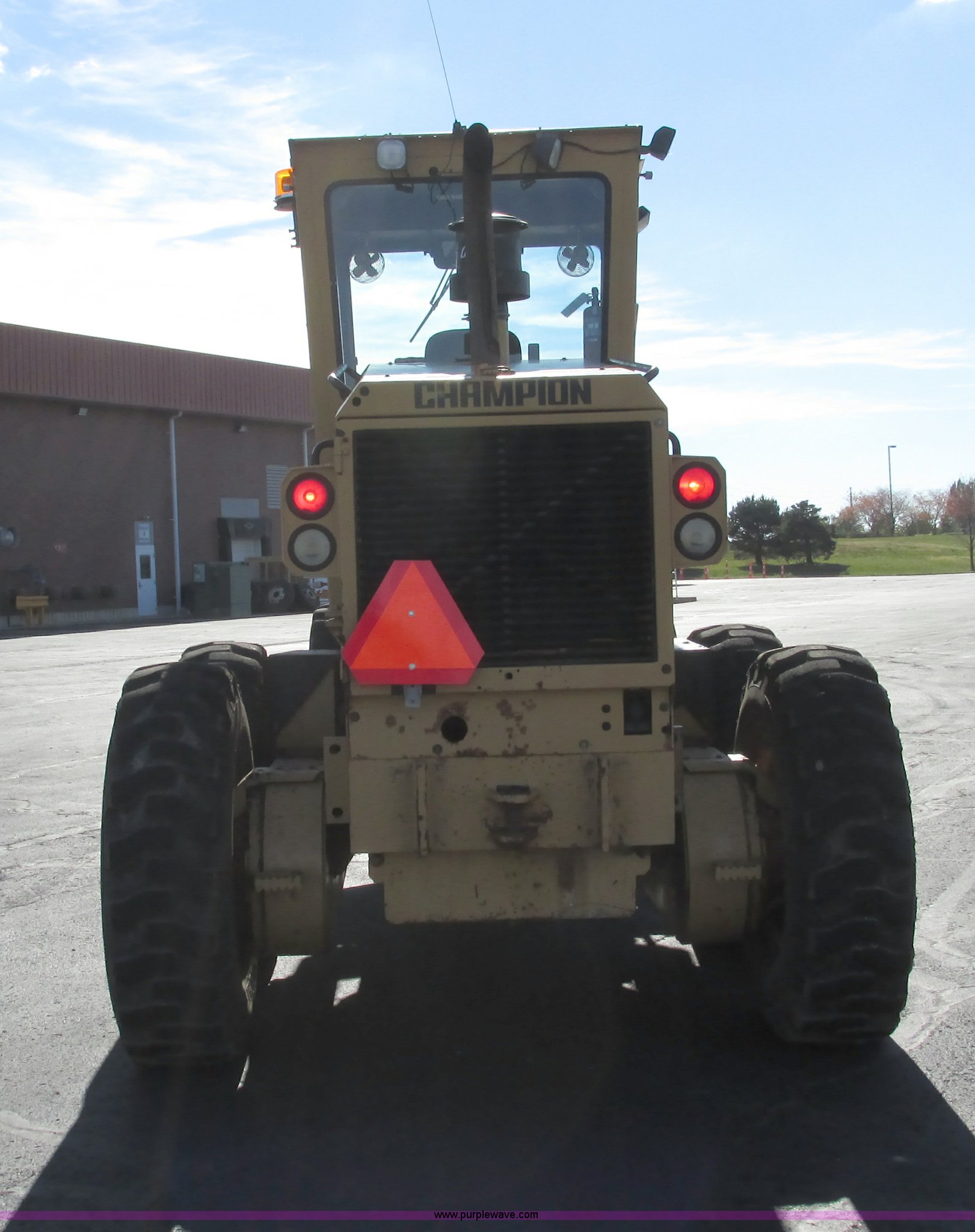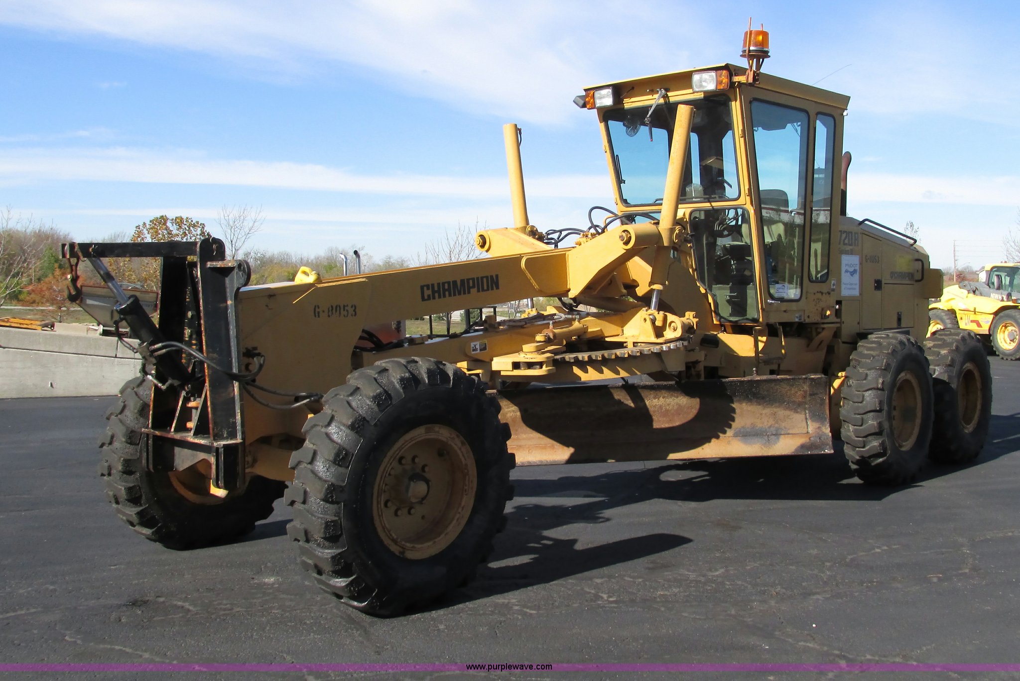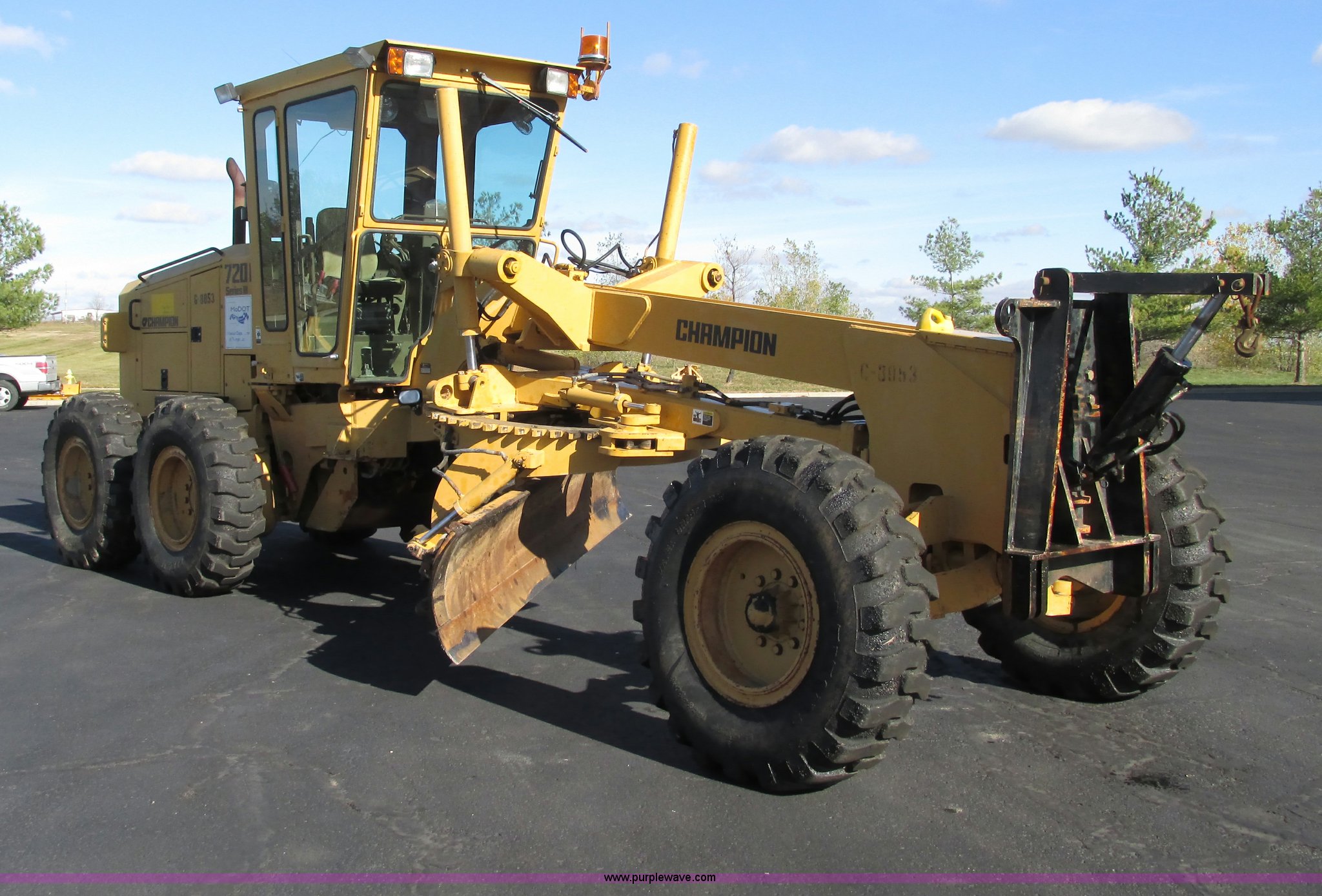 Purple Wave is selling a used Motor Grader in Missouri. This item is a 1994 Champion 720A Series III articulated motor grader with the following: 3,886 hours on meter, Cummins 8.3L six cylinder diesel engine, Powershift transmission, 8F-4R gears, Four wheel drive, Heat, Suspension seat, EROPS, High cab profile, Front and rear work lights, 12' moldboard, Side shift, Tip control, 11' wing plow with mounting brackets and hydraulics, Front mounted lift group, (6) blade control valves, Roof mounted amber beacon light, Rear pin hitch, 14.00-24 tires