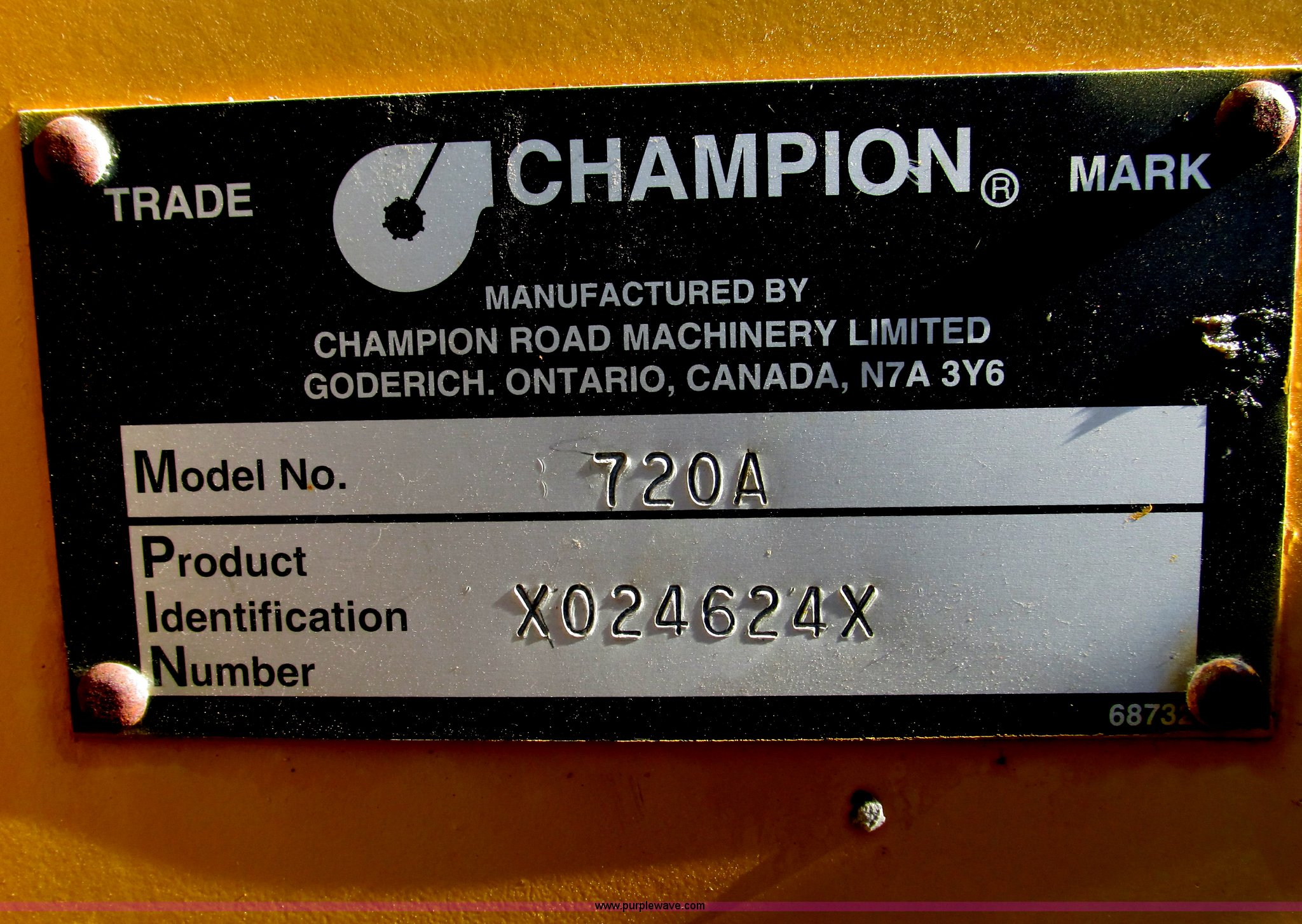 1994 Champion 720A Series III articulated motor grader has sold in Lee's Summit, Missouri for $25300. Item F4016 sold on November 29th, 2012.