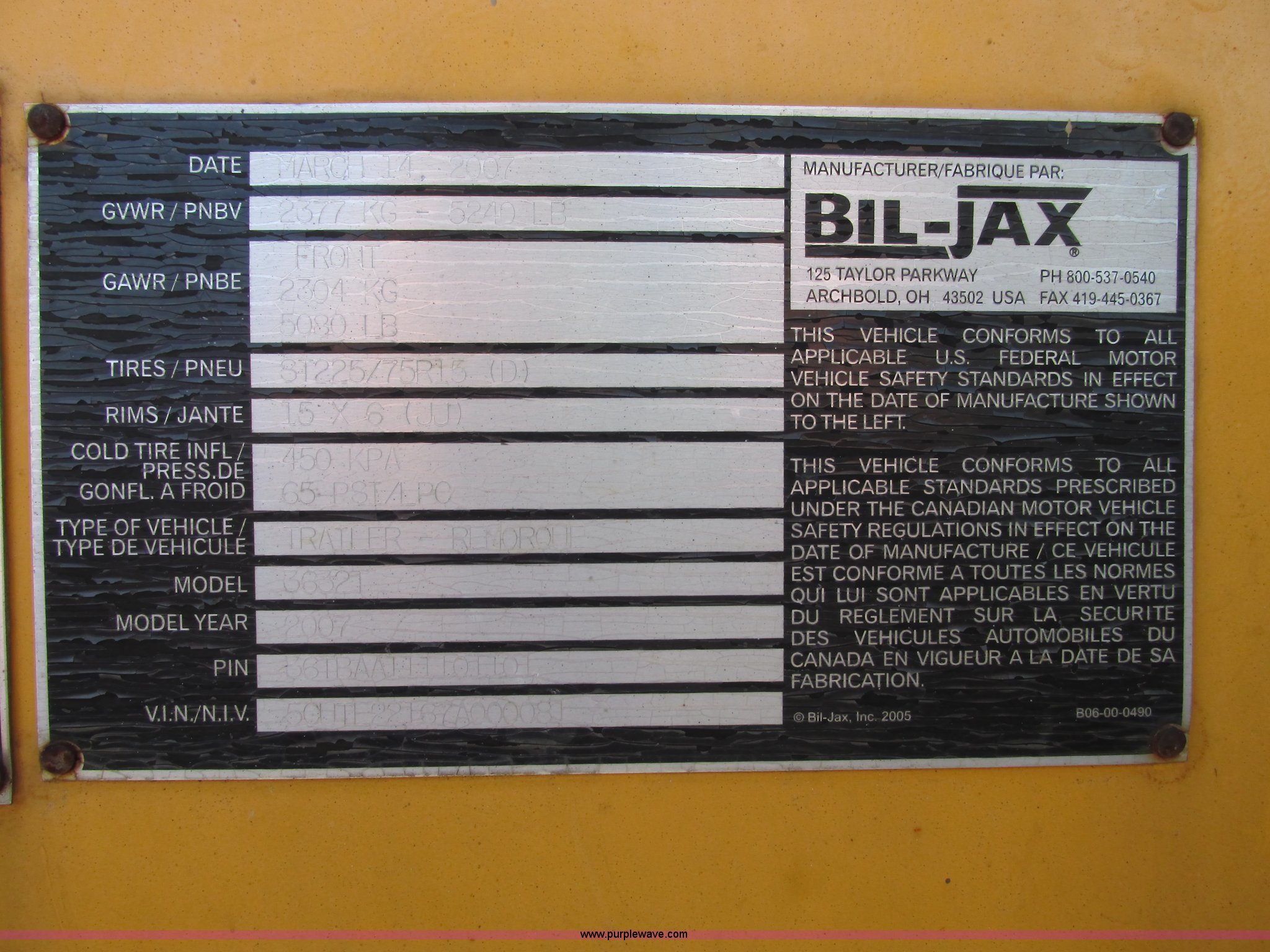 Purple Wave is selling a used Scissor or Vertical Lift in Missouri. This item is a 2007 Bil-jax 3632T pull behind man lift with the following: 36' maximum platform height, 32' maximum platform reach, 500 lbs maximum platform capacity, Two person maximum platform capacity, 4'L x 30"W platform, 24V electrical system, Hydraulic self-leveling outriggers, Upper and lower controls, Self-leveling basket, On-board battery charger, Power to platform, Light kit, Removable basket for crane use, Fork lift pockets, Surge electric brakes with safety brake system, 2" ball, Aluminum wheels, Tongue jack, 225/75R15 tires