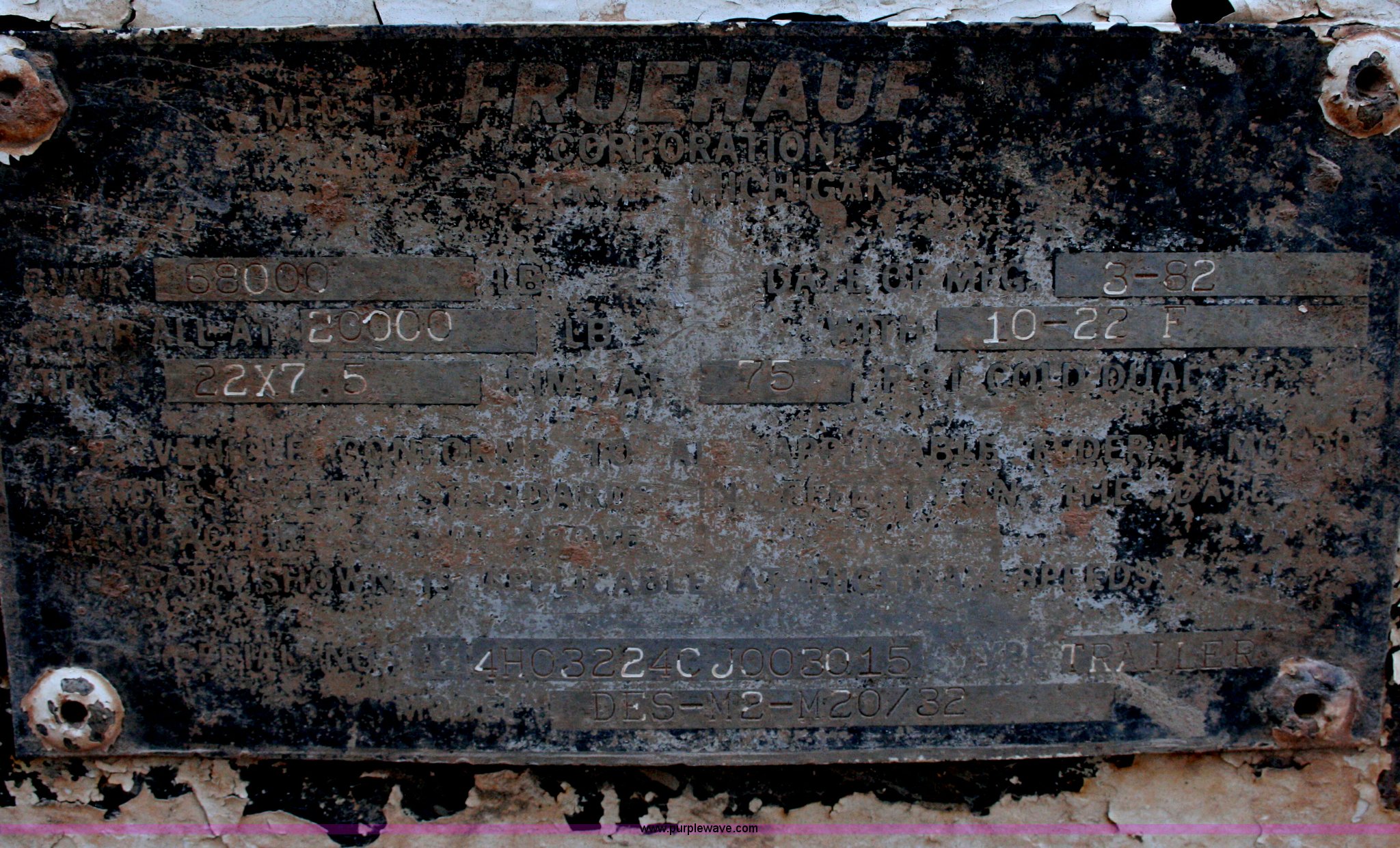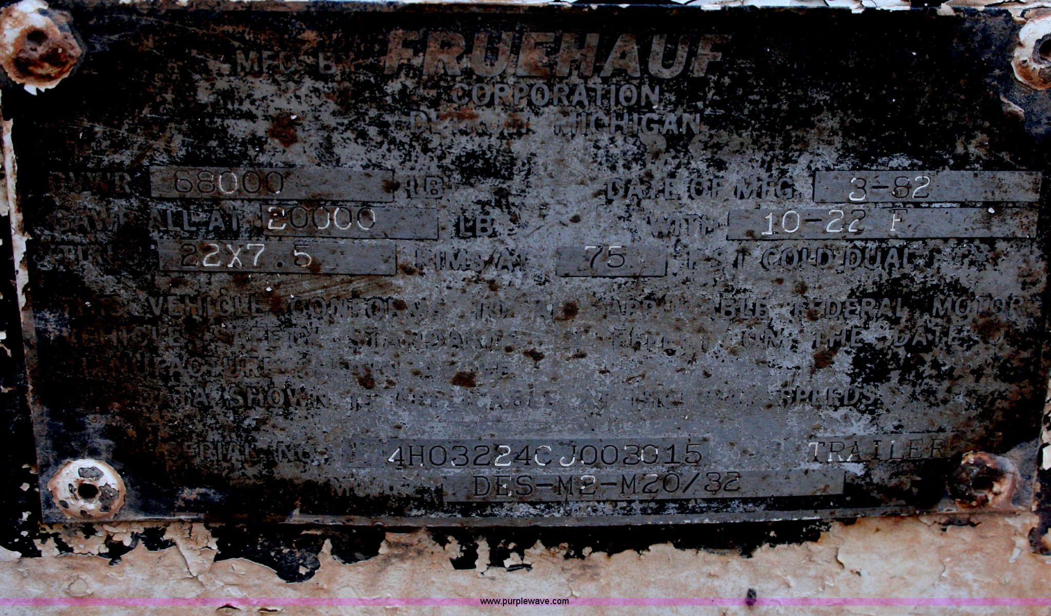 1982 Fruehauf belly dump trailer. 32'L x 8'W, Spring suspension, Mesh load cover, Hydraulic dump, Dual tandem axle, 11R24.5 tires. Title distribution may be delayed up to 14 days from verification of funds. 1H4H03224CJ003015. Shipping quotes available. Wilbarger County. 1700 Wilbarger St, Rm. 10. Vernon, TX 76384