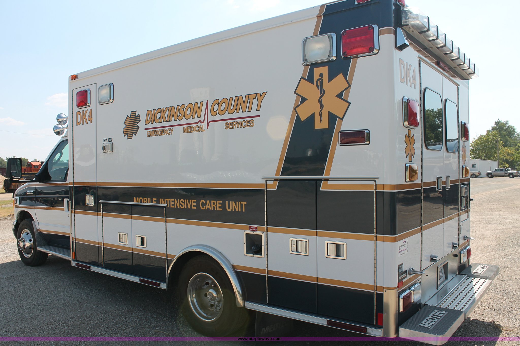 2006 Ford Medtec E450 ambulance. 78,080 actual miles, 6.0L V8 diesel engine 325 HP, Automatic transmission, AC and heat, Tilt, Cruise, AM/FM/CD, Power windows, locks, and mirrors, Cloth interior, Medtec ambulance box, Medtec dash instruments, Auxiliary AC and heat, 215/85R16 tires, Engine blow-by. 1FDXE45P86DA50333. Shipping quotes available. Dickinson County. 408 SE 2nd St. Abilene, KS 67410
