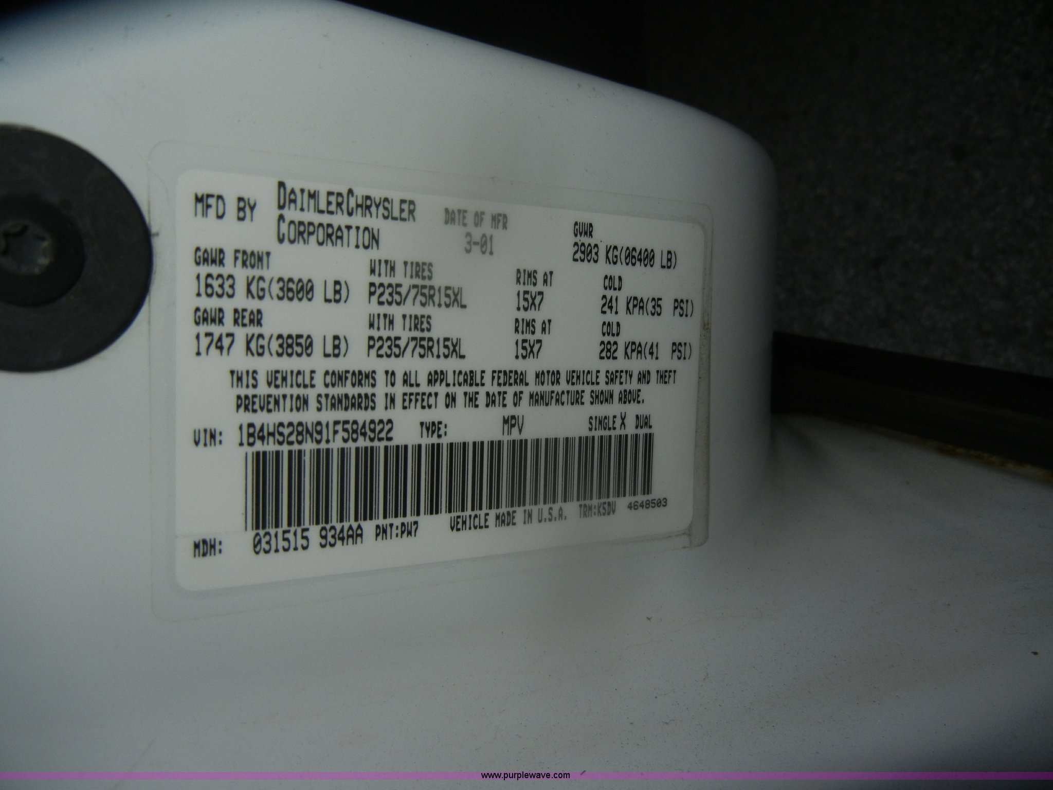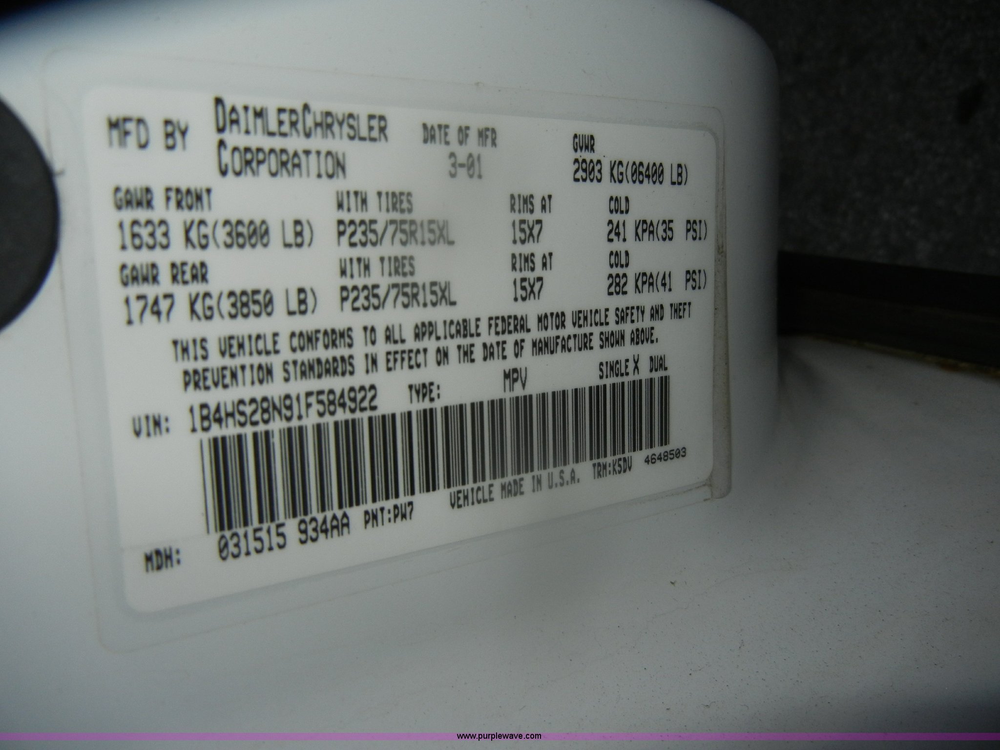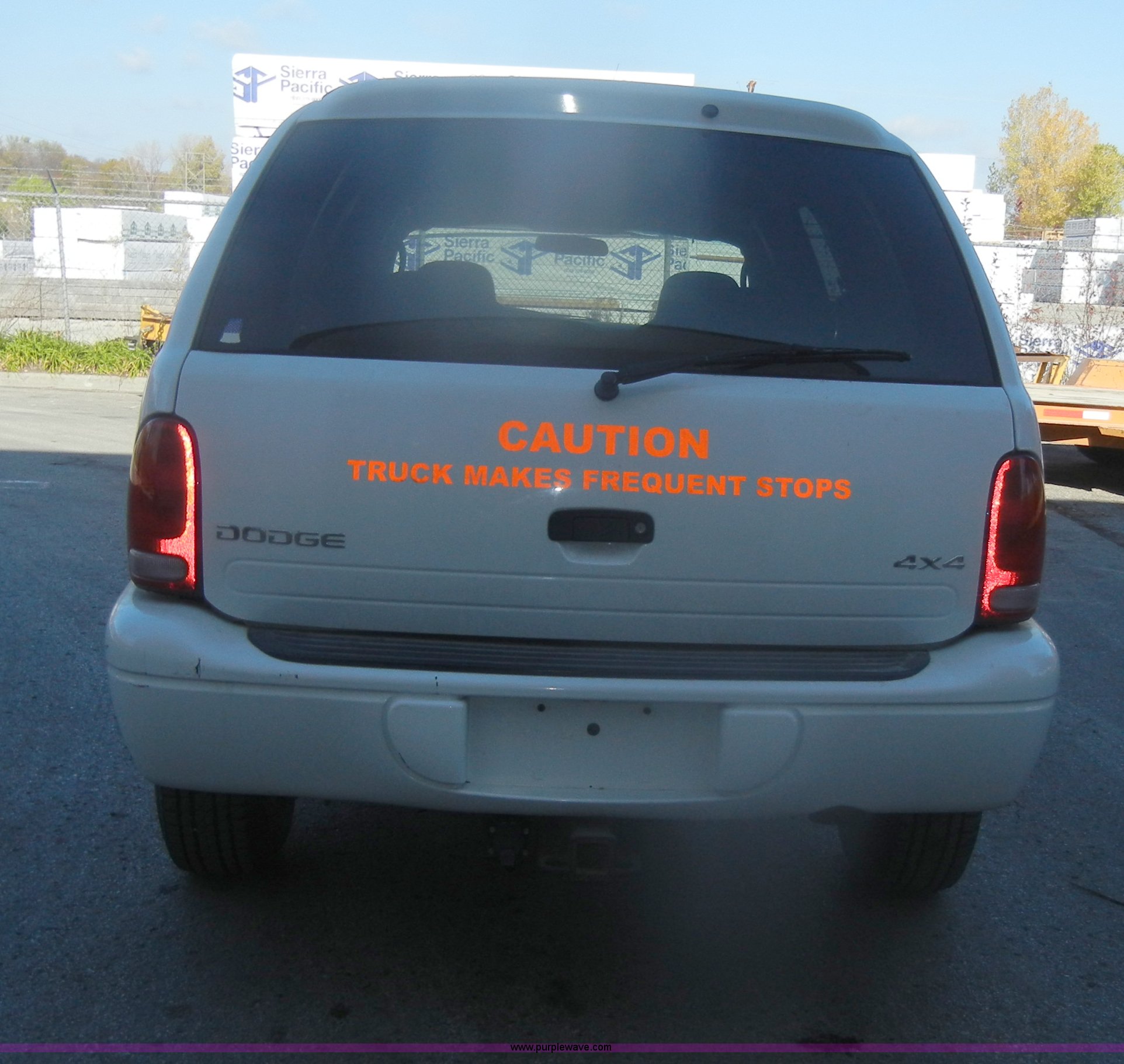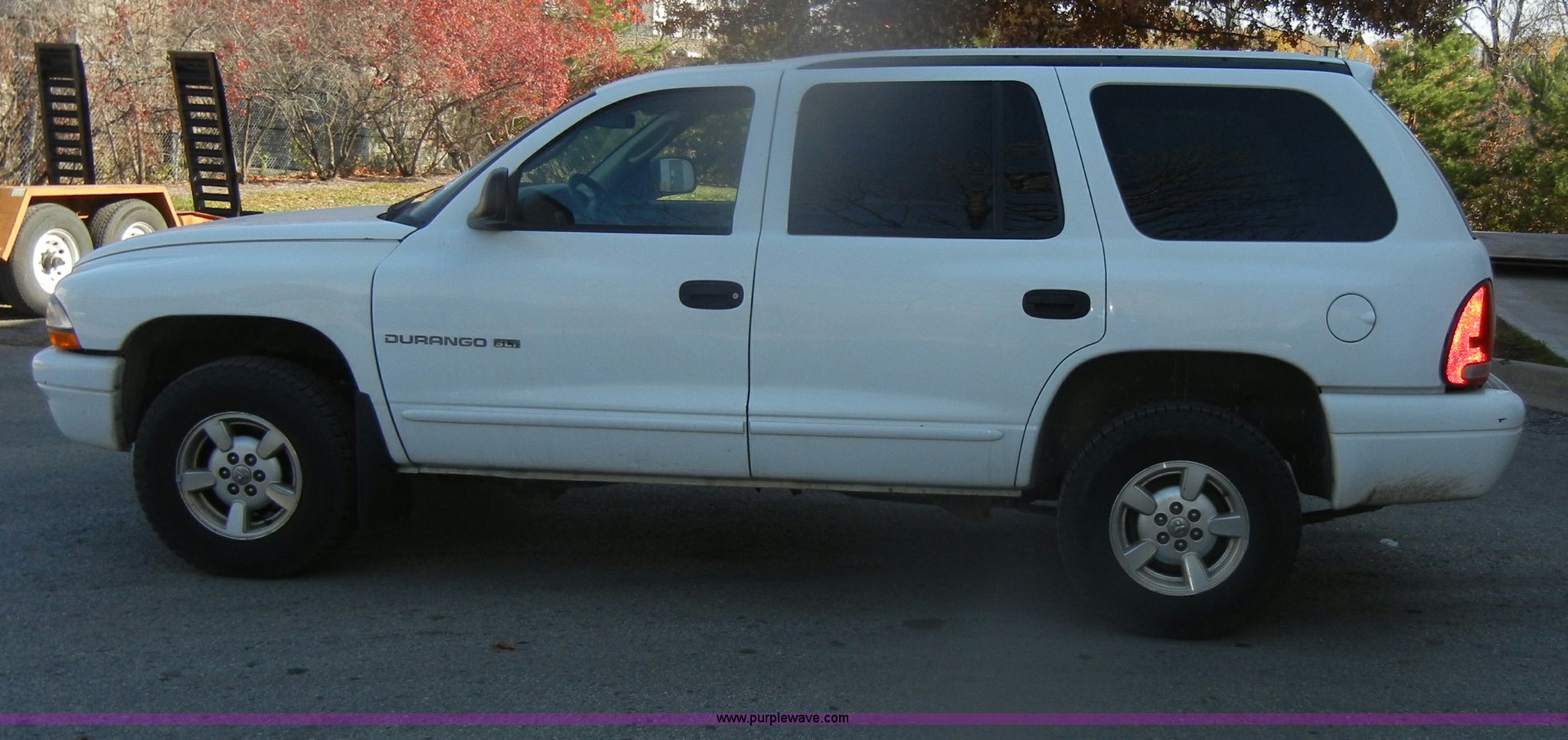 Purple Wave is selling a used Passenger Vehicle in Kansas. This item is a 2001 Dodge Durango SLT SUV with the following: 84,745 miles on odometer, 4.7L V8 MPI gas engine, Engine replaced at 75,000 miles, Automatic transmission, Four wheel drive, AC and heat, Tilt, Cruise, AM/FM, Power windows, locks, mirrors, and seats, Cloth interior, Receiver hitch, Trailer wiring, 235/75R15 tires, Interior/exterior cosmetic damage, Paint peeling, Dents and scratches