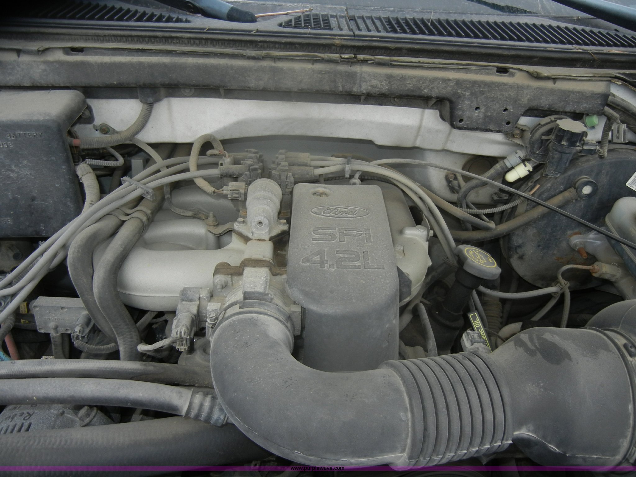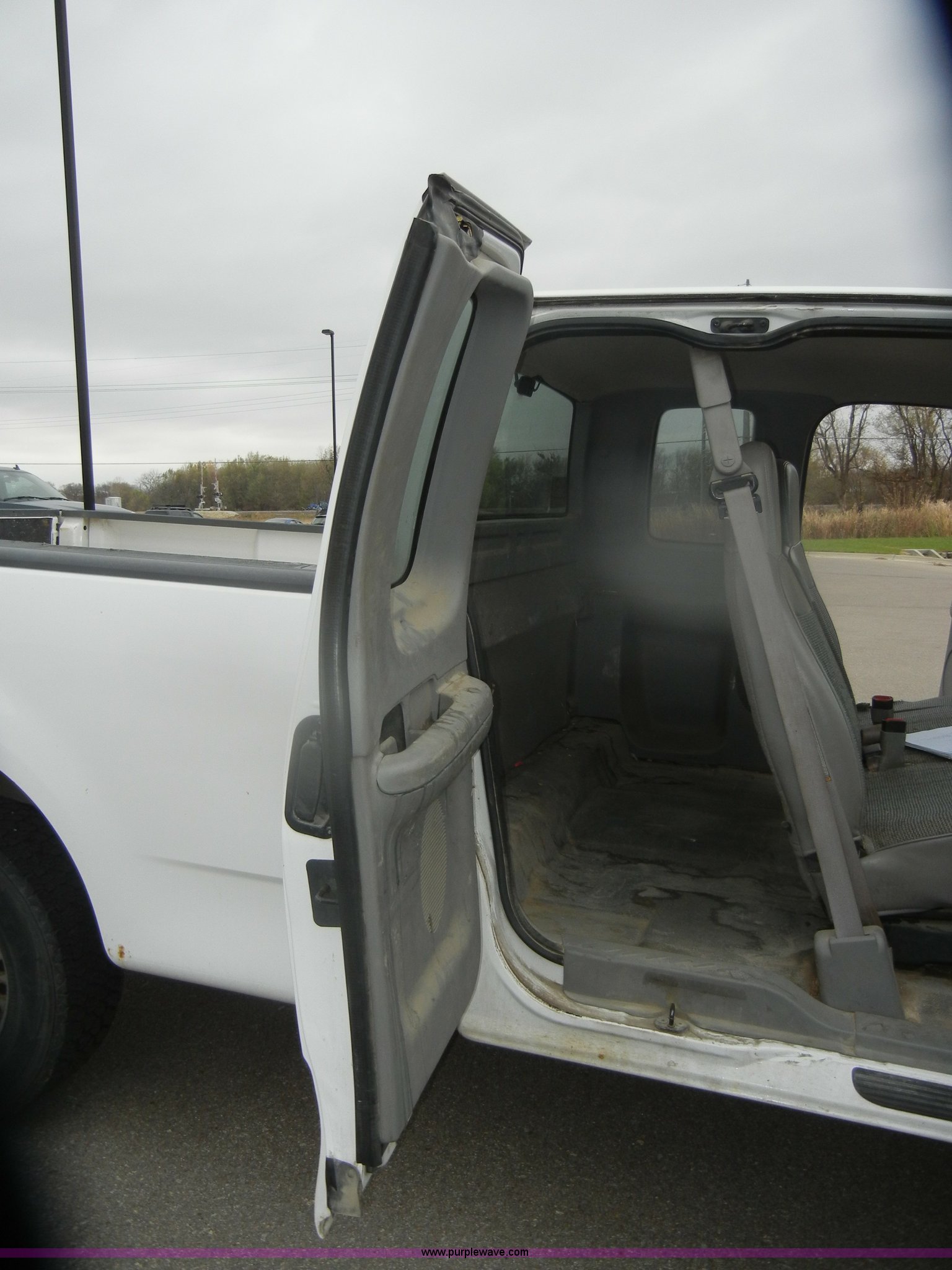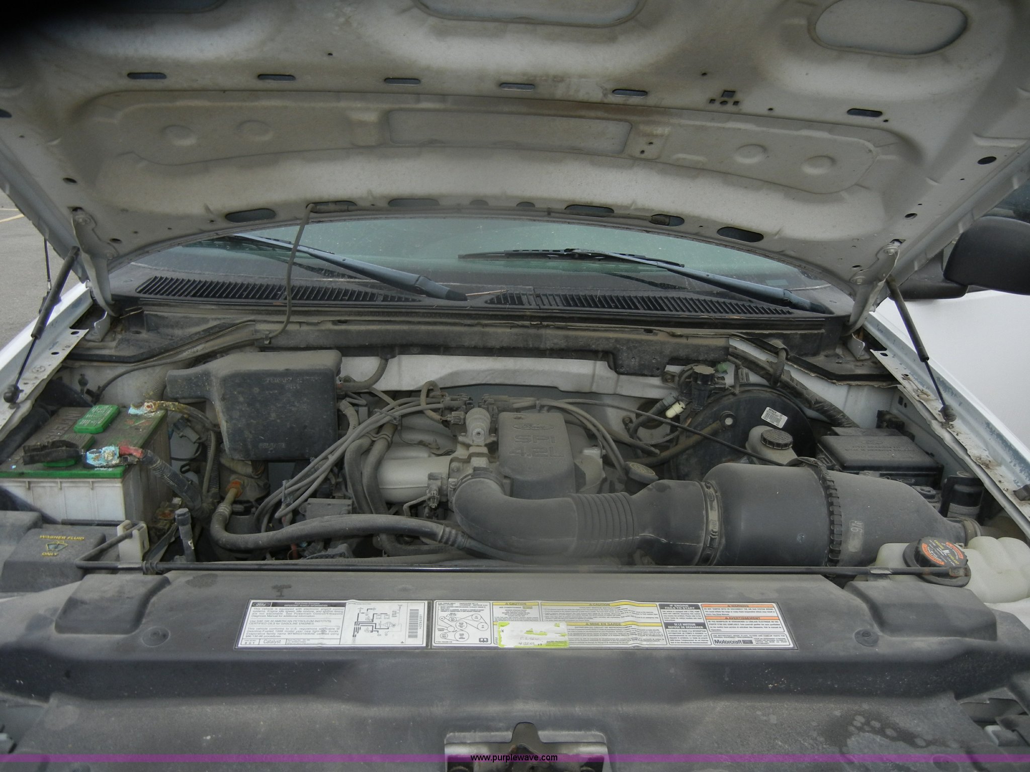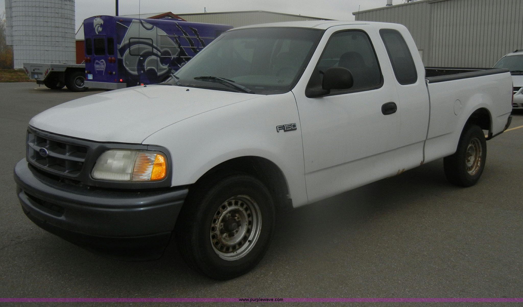 Purple Wave is selling a used Passenger Vehicle in Kansas. This item is a 1998 Ford F150 SuperCab pickup truck with the following: 148,501 miles on odometer, 4.2L V6 SPI gas engine, Automatic transmission, AC and heat, Tilt, Cruise, AM/FM, Manual windows and locks, Cloth interior, Ball hitch, 225/75R16 tires, Interior/exterior cosmetic damage, Rust, Dead battery, Check engine and ABS lights on