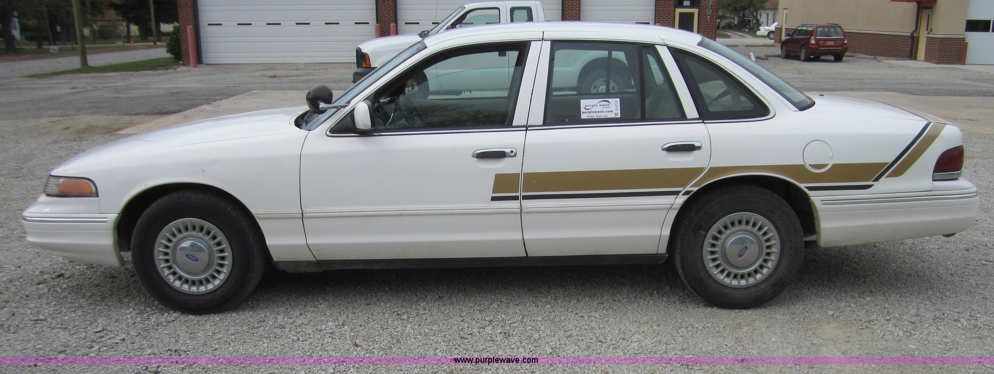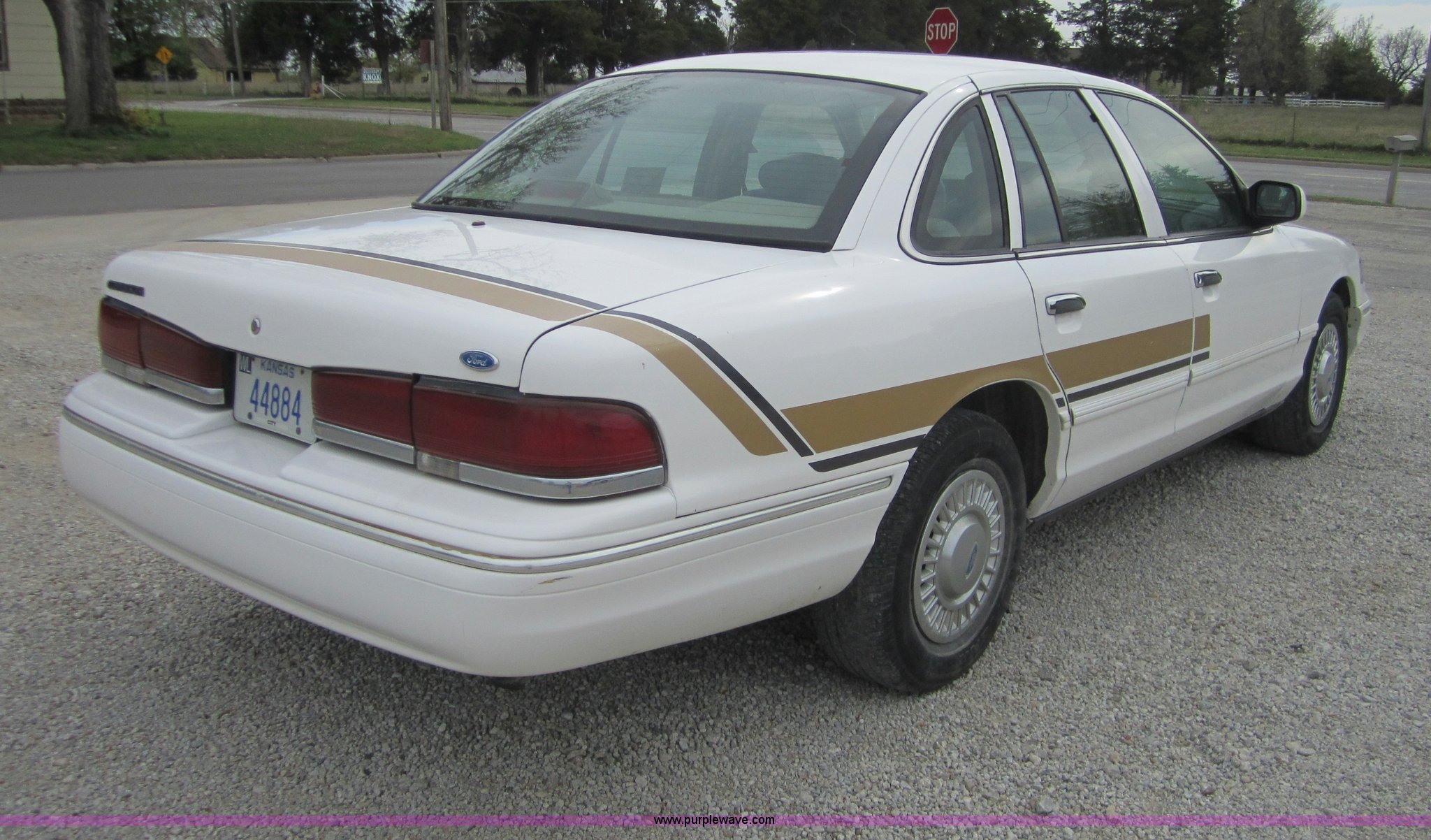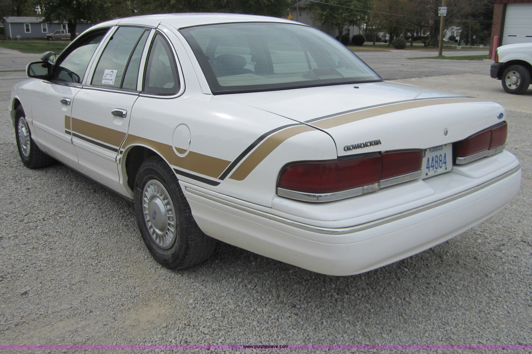 Purple Wave is selling a used Passenger Vehicle in Kansas. This item is a 1996 Ford Crown Victoria Police Interceptor with the following: 119,257 miles on odometer, 4.6L V8 SFI engine, Automatic transmission, AC and heat, AC inoperable, Tilt, Cruise, AM/FM, Power windows, locks, and mirrors, Cloth interior, P225/70R15 tires, Cracked windshield