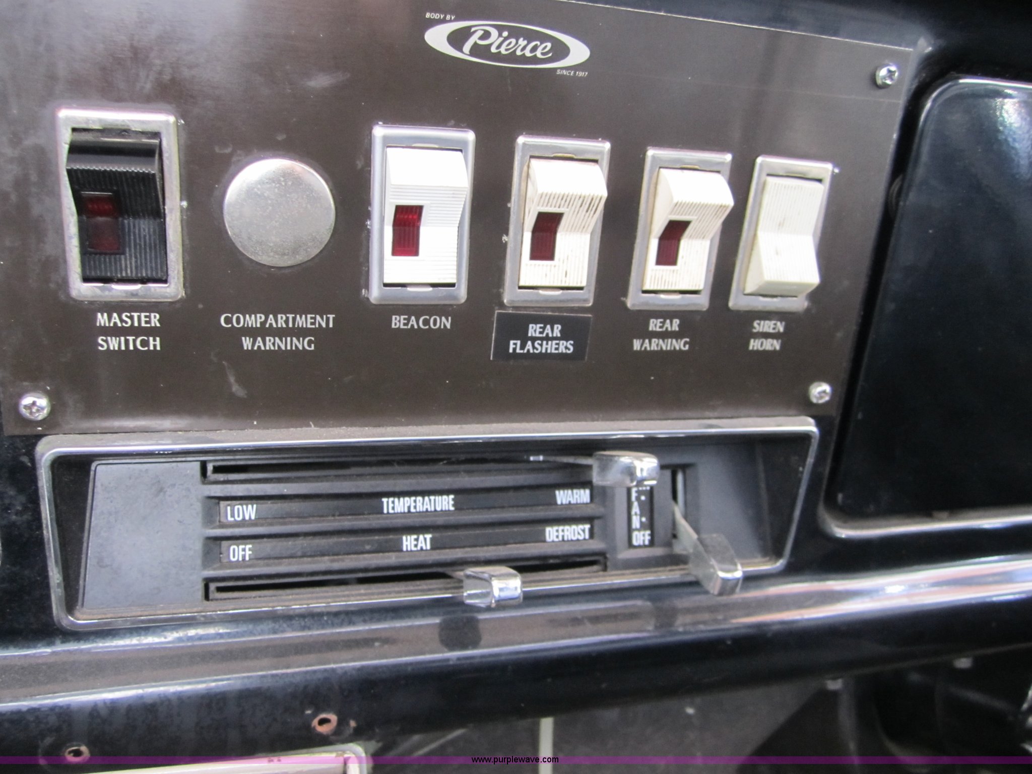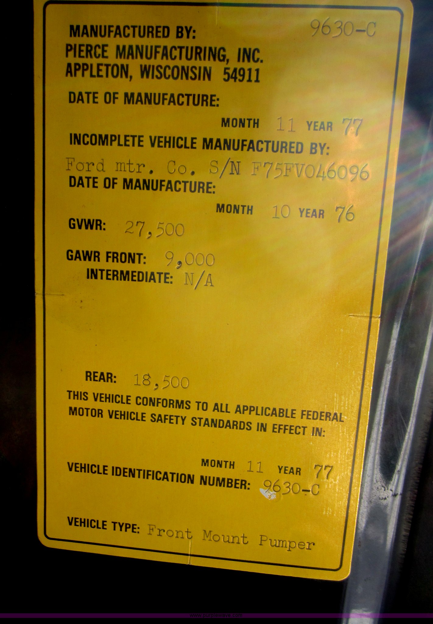 Purple Wave is selling a used Fire Truck or Emergency Vehicle in Kansas. This item is a 1977 Ford F756 fire truck with the following: 8,032 miles on odometer, Not Actual Mileage, Five speed manual transmission, Front mount pumper, 750 GPM, 427 hours on meter, 750 gallon water tank, 4.5" intake, (3) 2.5" discharge lines, (2) rear discharge, 100' of 1" hose, Hose reel, Plumbed for deck gun, Lights and siren included, 10.00-20 tires, Manufactured by Pierce