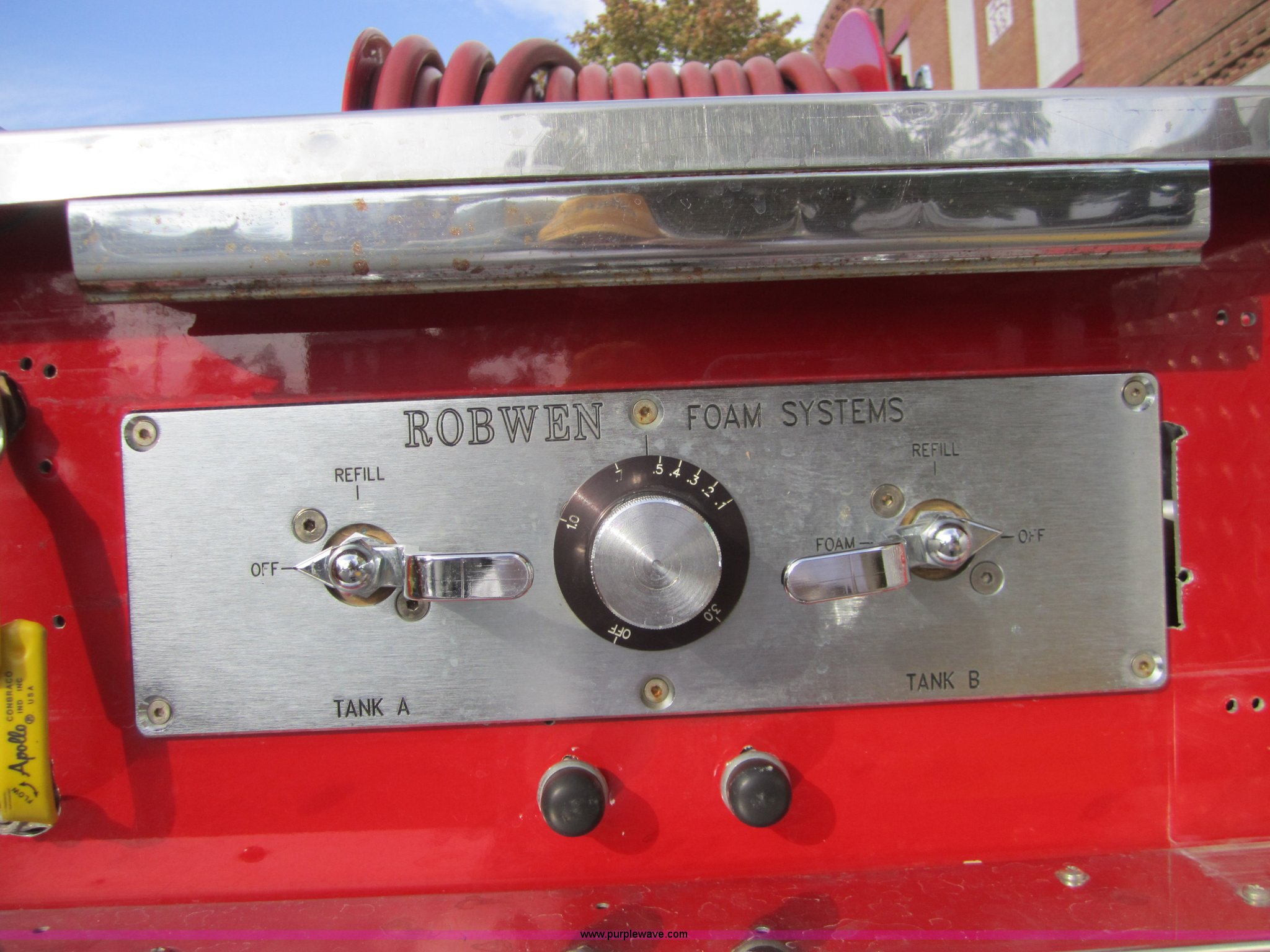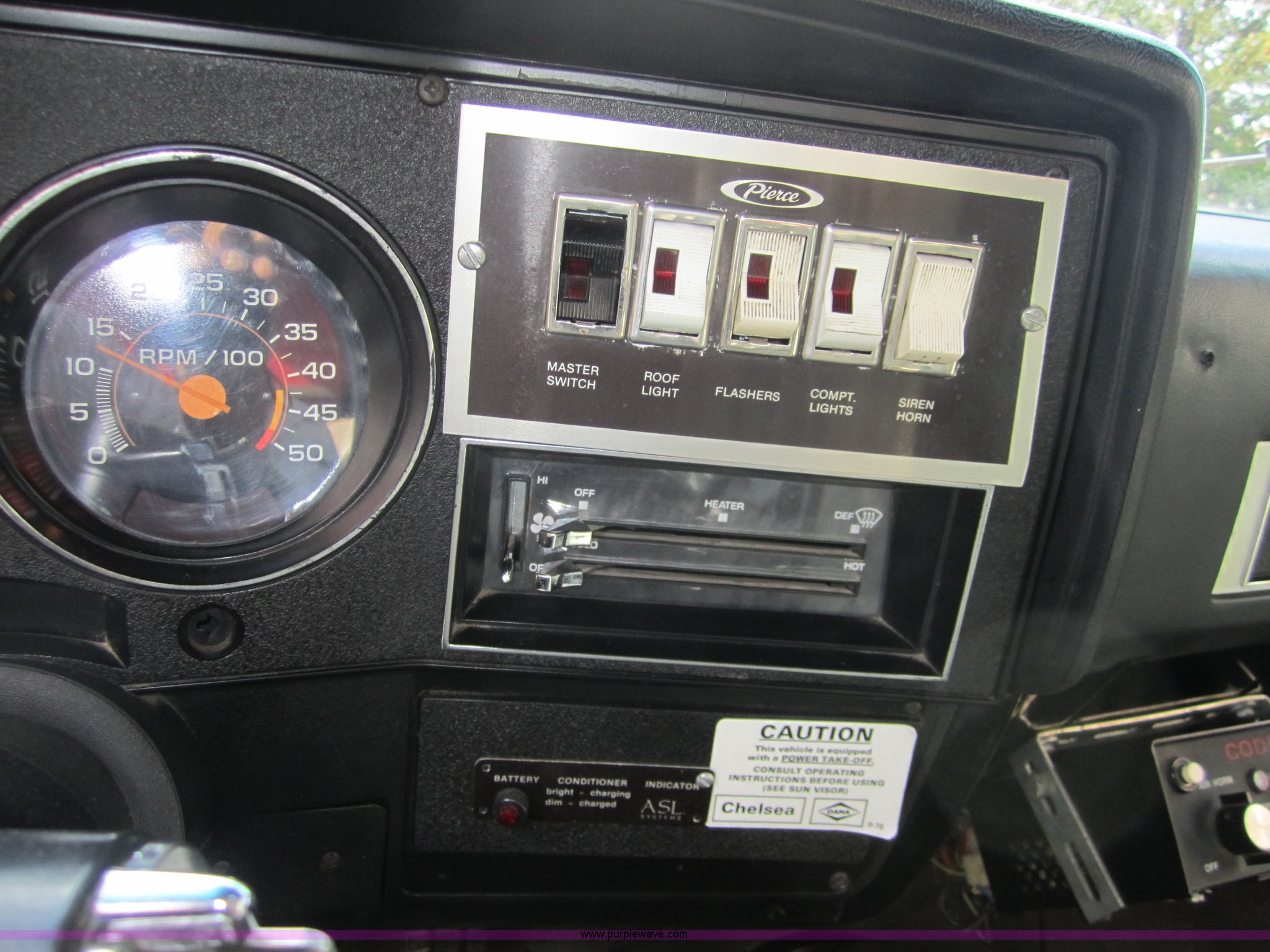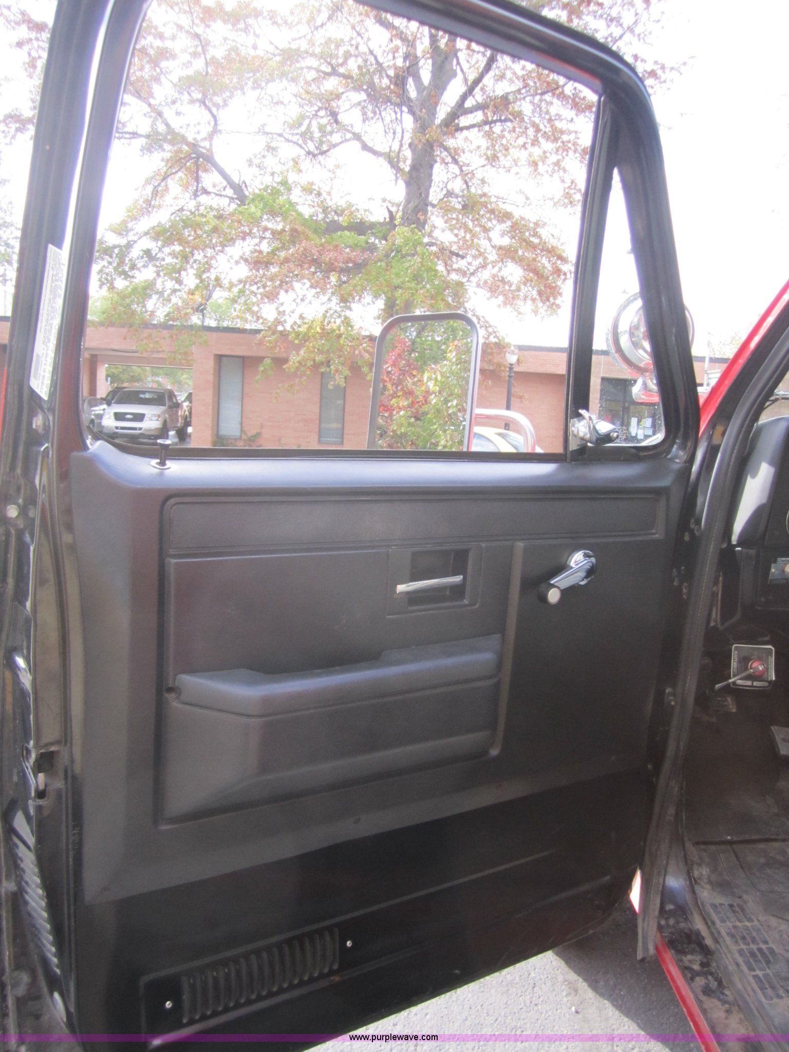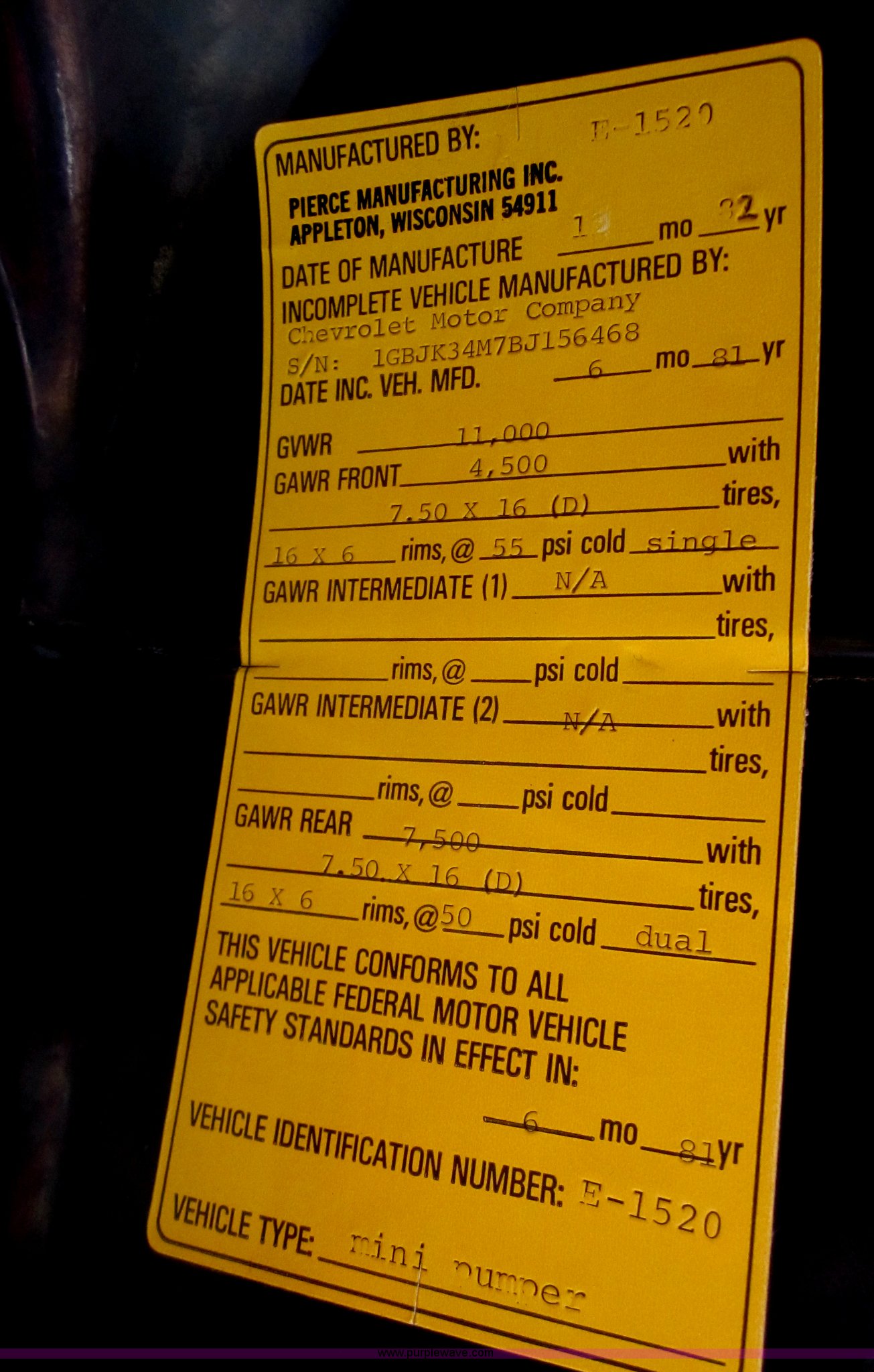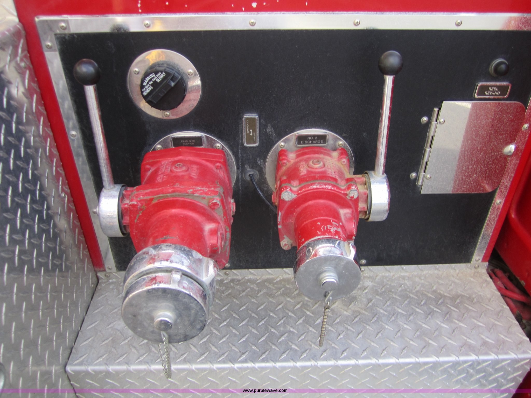 Purple Wave is selling a used Fire Truck or Emergency Vehicle in Kansas. This item is a 1981 Chevrolet K30 fire truck with the following: 7,631 miles on odometer, V8 5.7L gas engine, Four wheel drive, PTO, Micro brake lock, Pierce body, 400 gpm pump, 250 gallon water tank, 3" intake, (2) 2.5" discharges, One rear, 100' of 1" hose, Hose reel, Lights and siren included, L235/85R16 tires, Cracked windshield