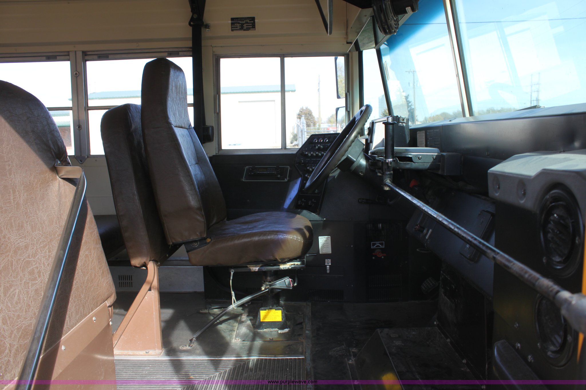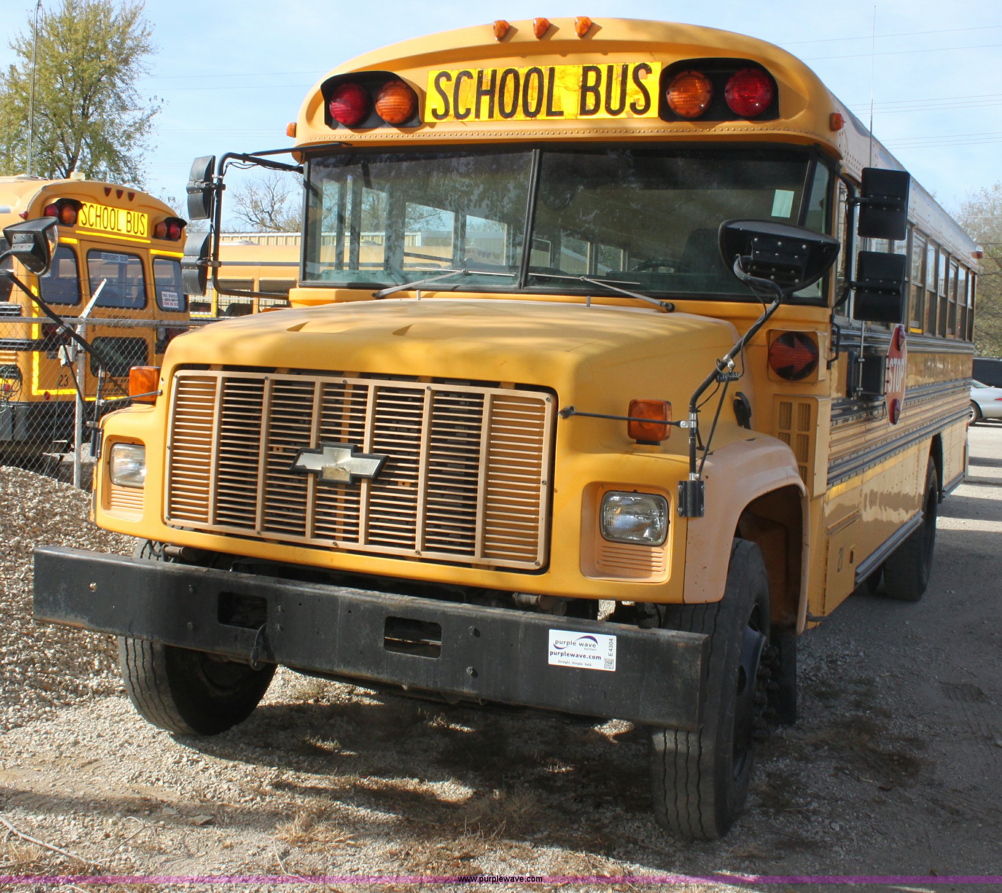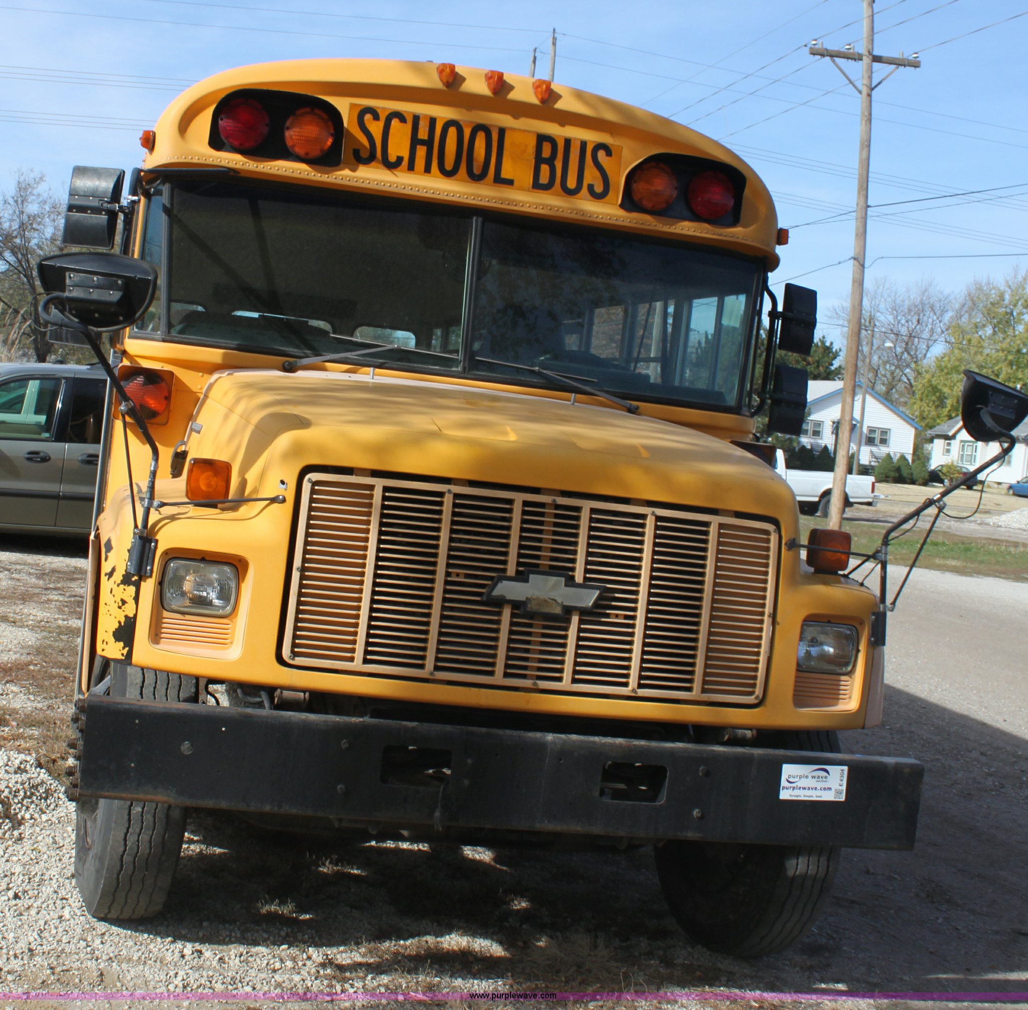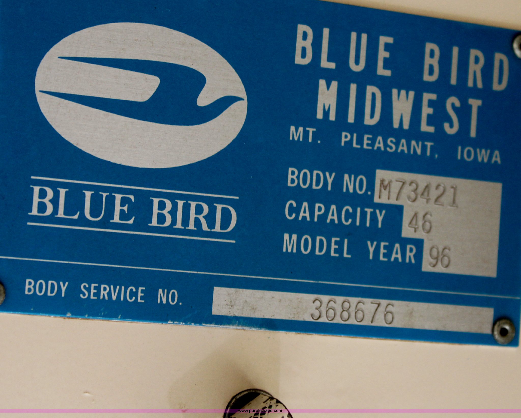 Purple Wave is selling a used Bus in Kansas. This item is a 1996 Blue Bird school bus with the following: 162,176 miles on odometer, 46 passenger, Caterpillar 3116 6.6L L6 diesel engine, 185 HP, Bad engine, Automatic transmission, Heat, AM/FM, (4) window emergency egress, (2) roof emergency egress, Rear door emergency egress, 10R22.5 tires, Bad engine, Major oil leaks, Vehicle is inoperable, must be towed