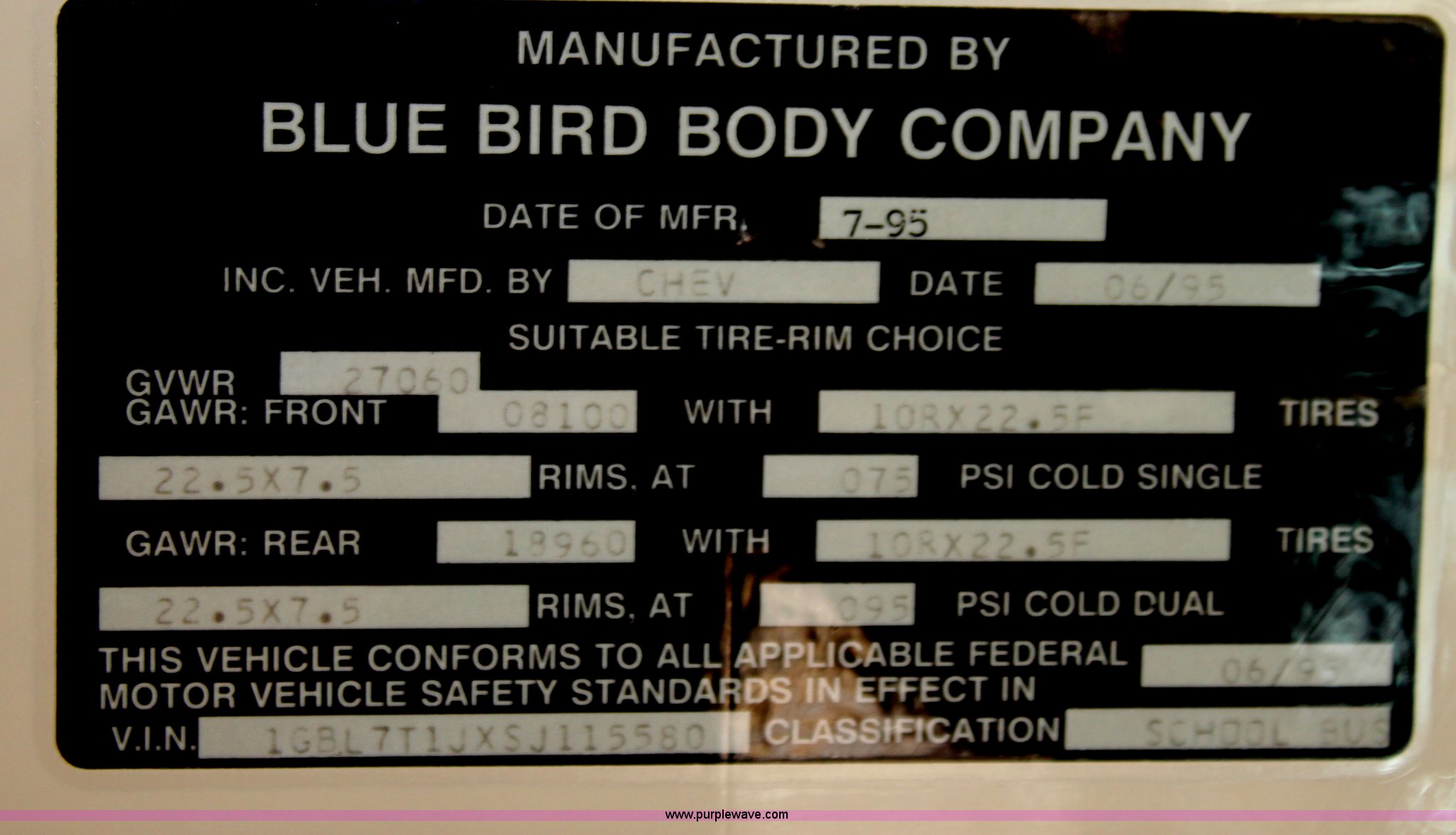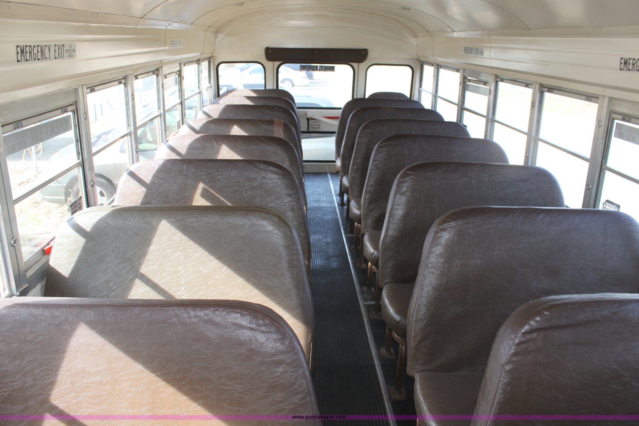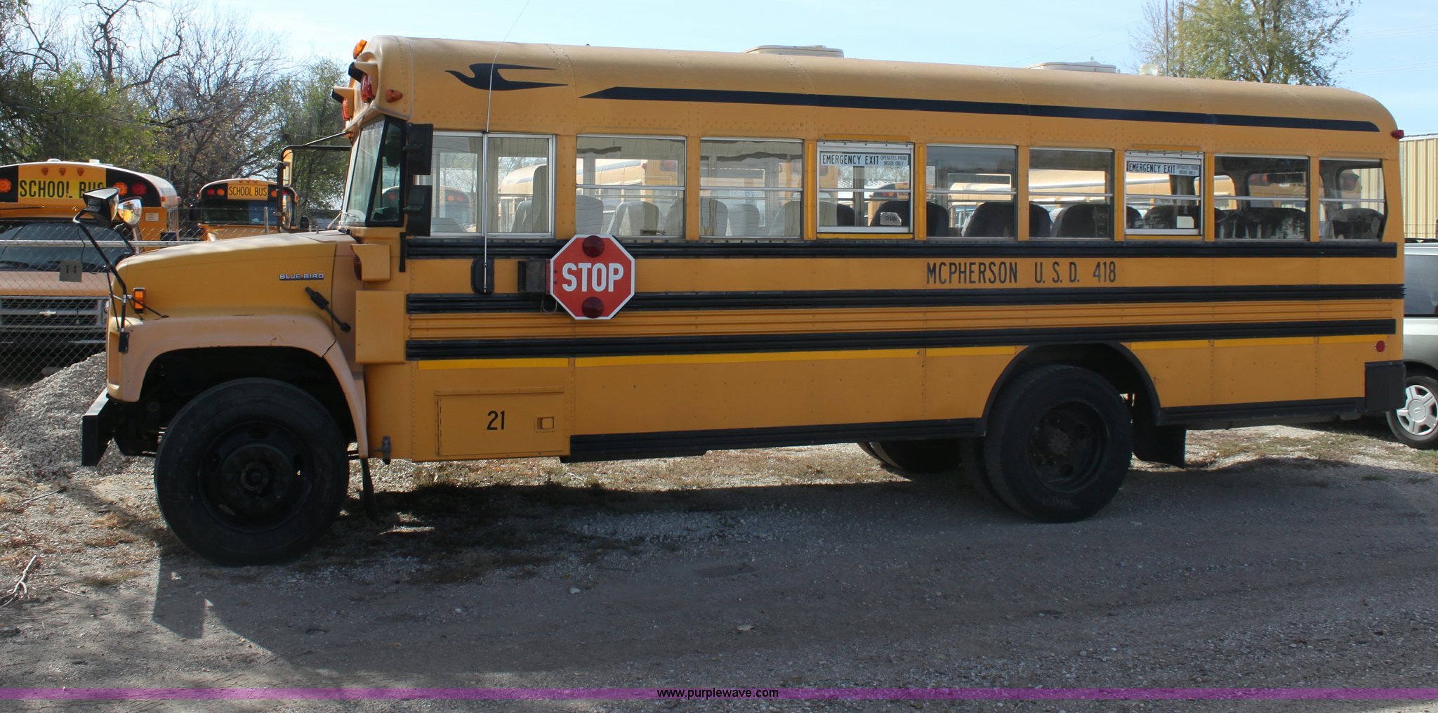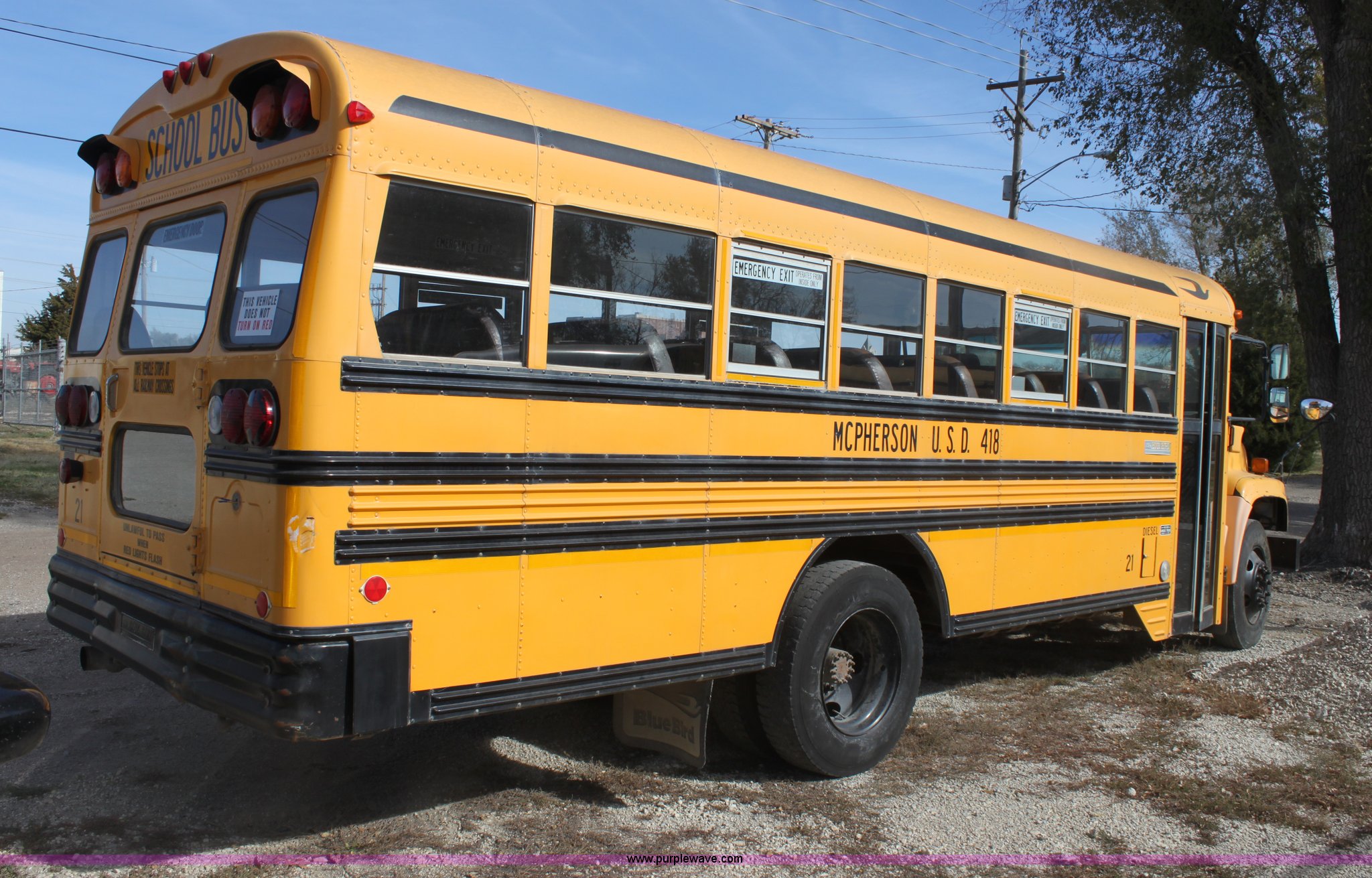Purple Wave is selling a used Bus in Kansas. This item is a 1996 Blue Bird school bus with the following: 162,176 miles on odometer, 46 passenger, Caterpillar 3116 6.6L L6 diesel engine, 185 HP, Bad engine, Automatic transmission, Heat, AM/FM, (4) window emergency egress, (2) roof emergency egress, Rear door emergency egress, 10R22.5 tires, Bad engine, Major oil leaks, Vehicle is inoperable, must be towed