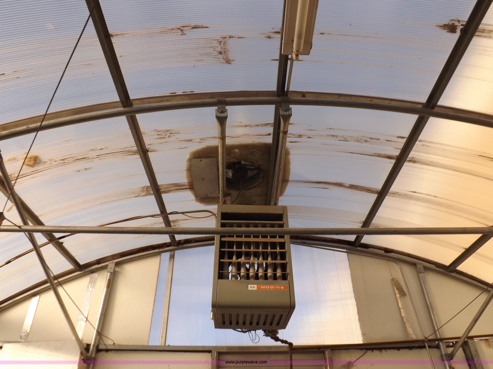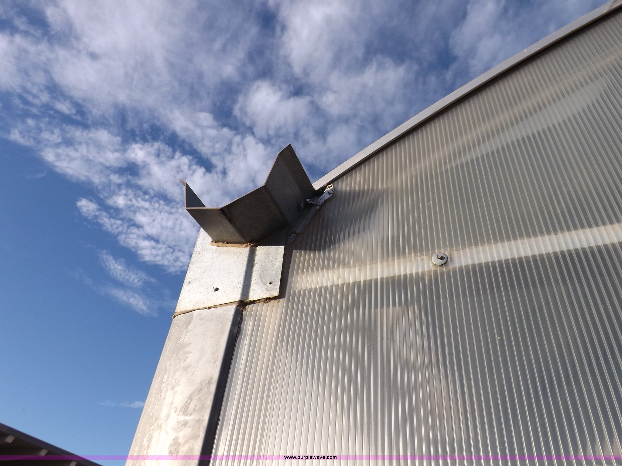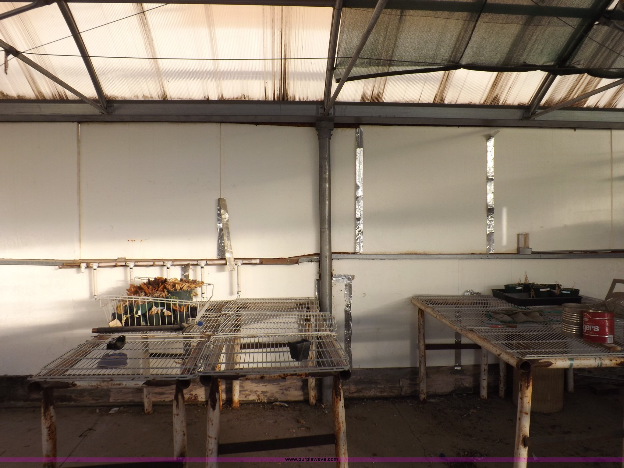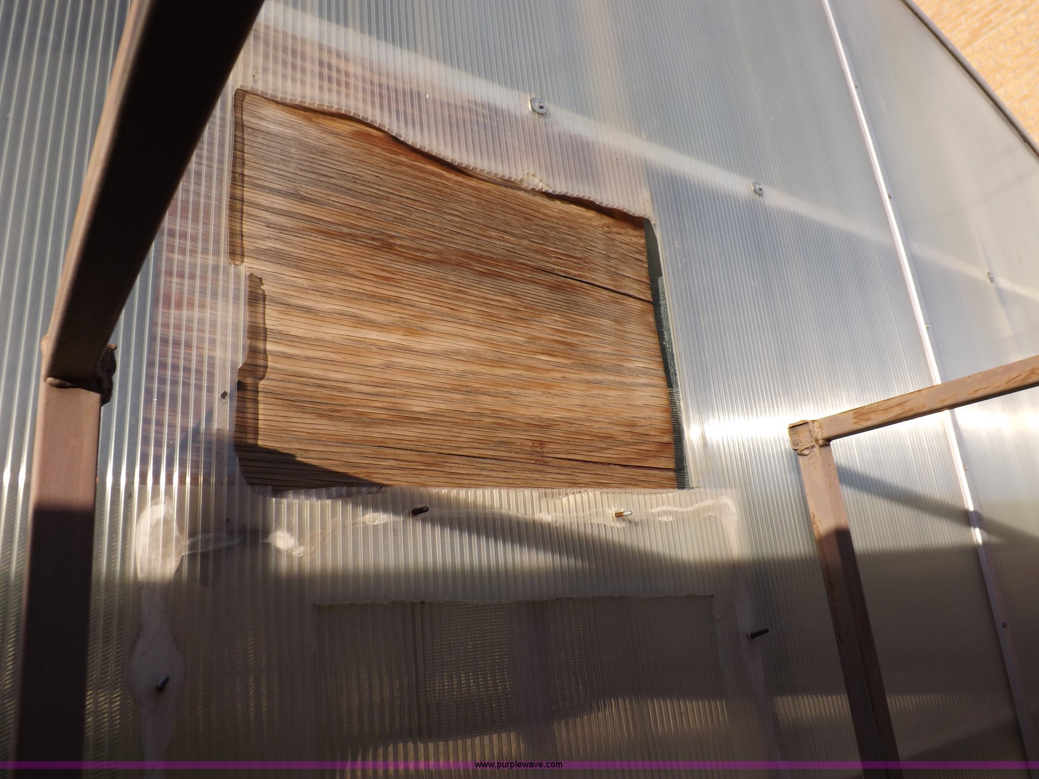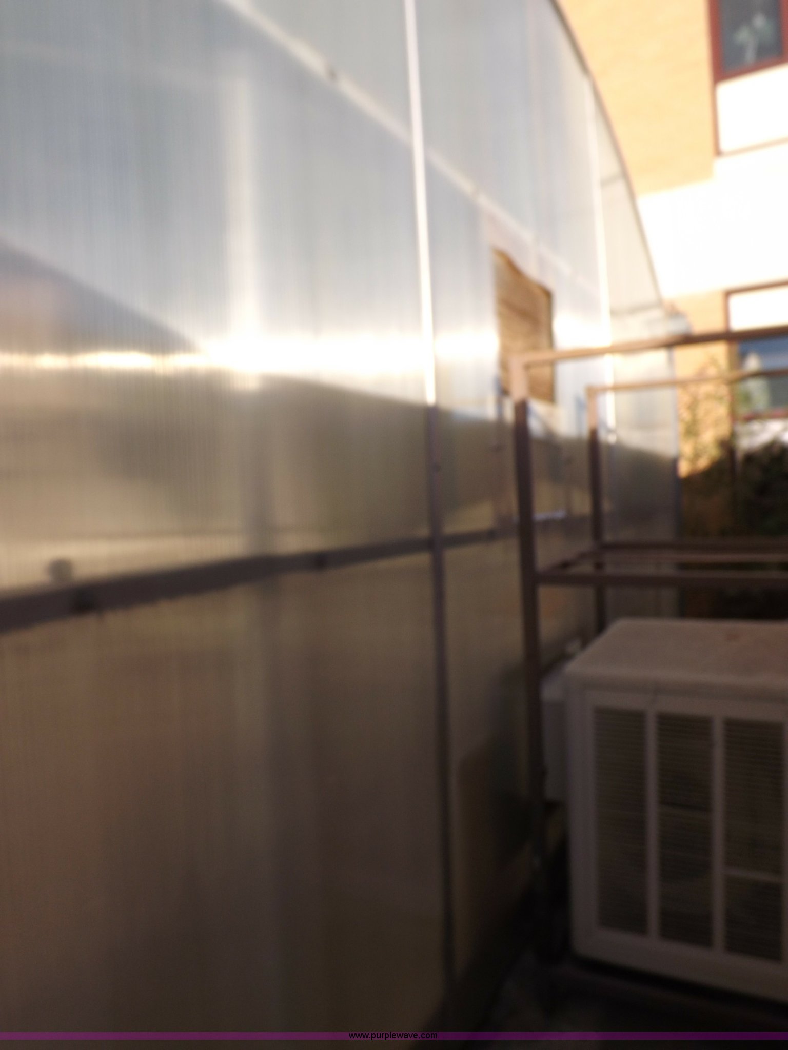 Purple Wave is selling a used Lawn and Garden in Kansas. This item is a Green house with the following: 25'L x 11'W x 11.5'H, 6'8" x 36" end door, 36" x 36" louvered opening, (2) 18" x 24" end openings, 21" x 11" end opening, (2) roof vents, Gutters, Fiberglass construction, Dis-assembly required