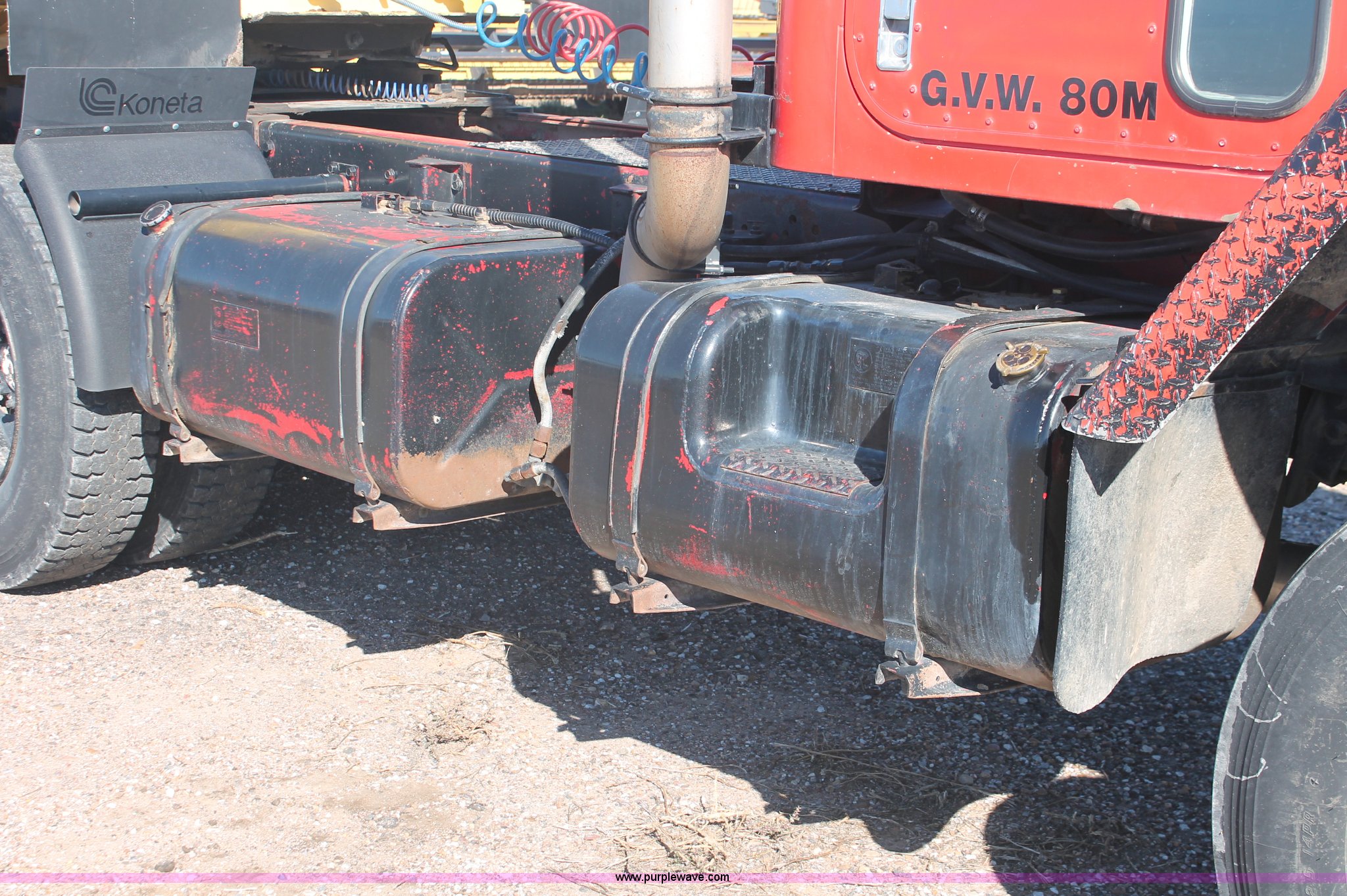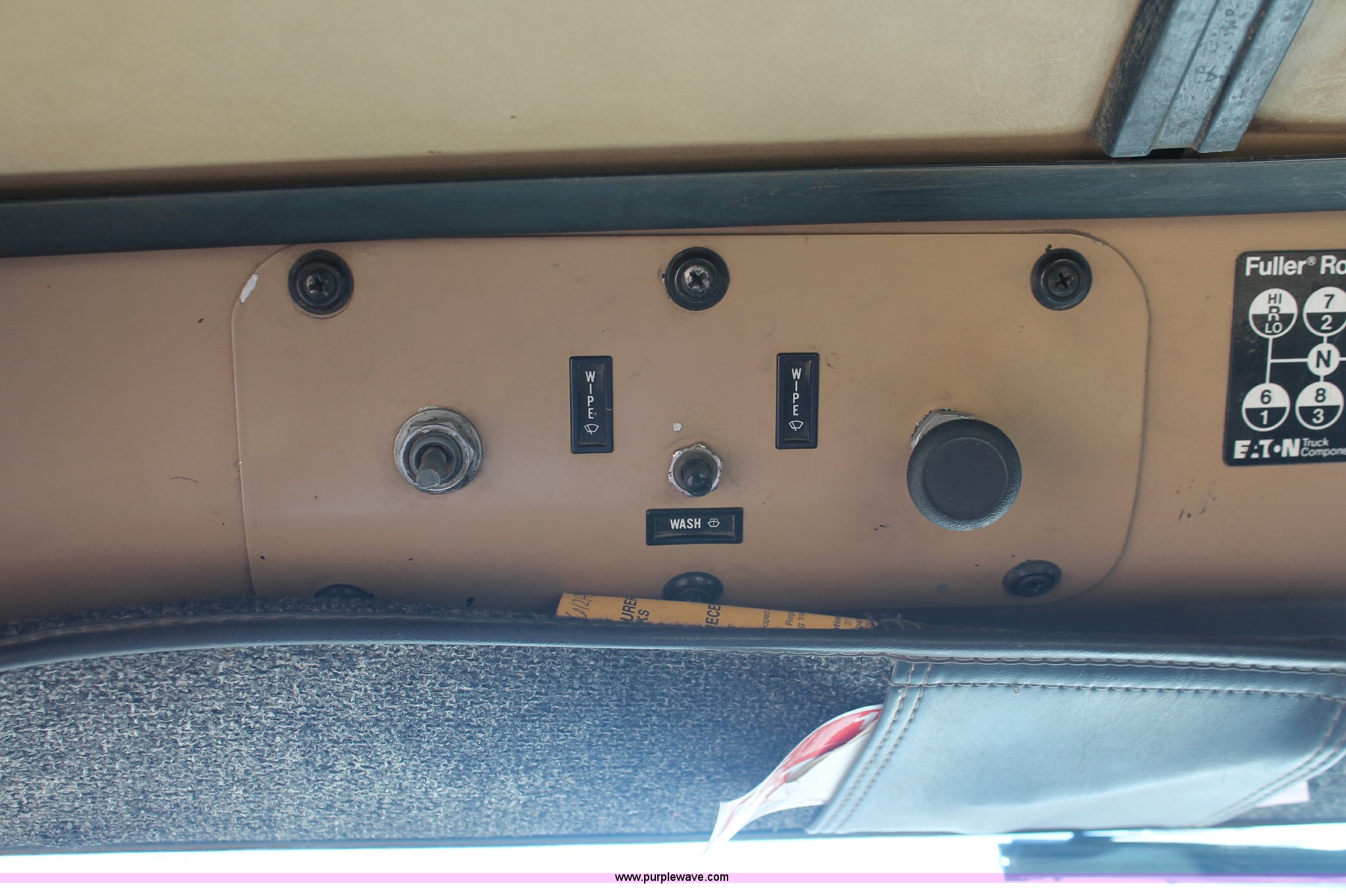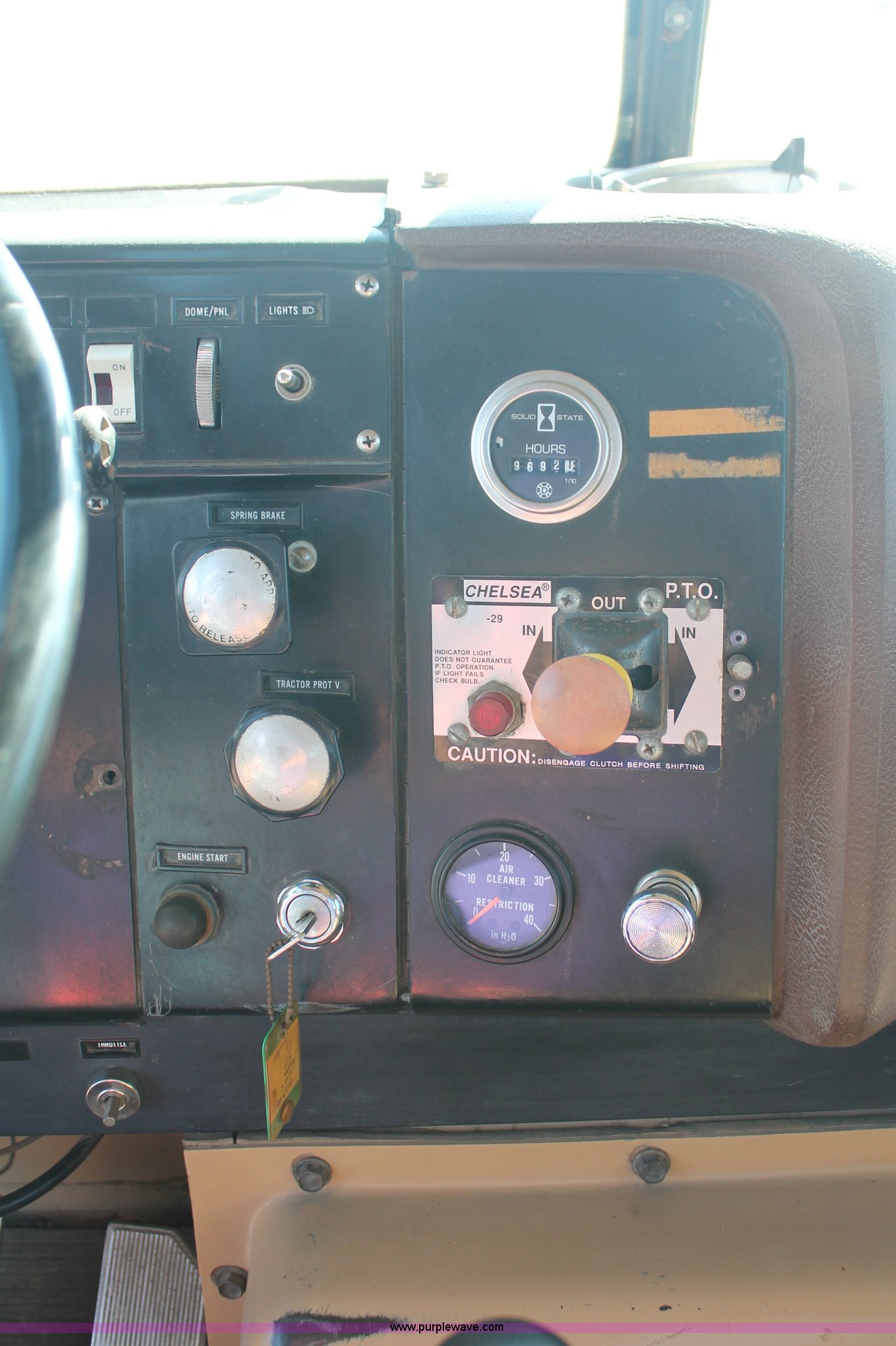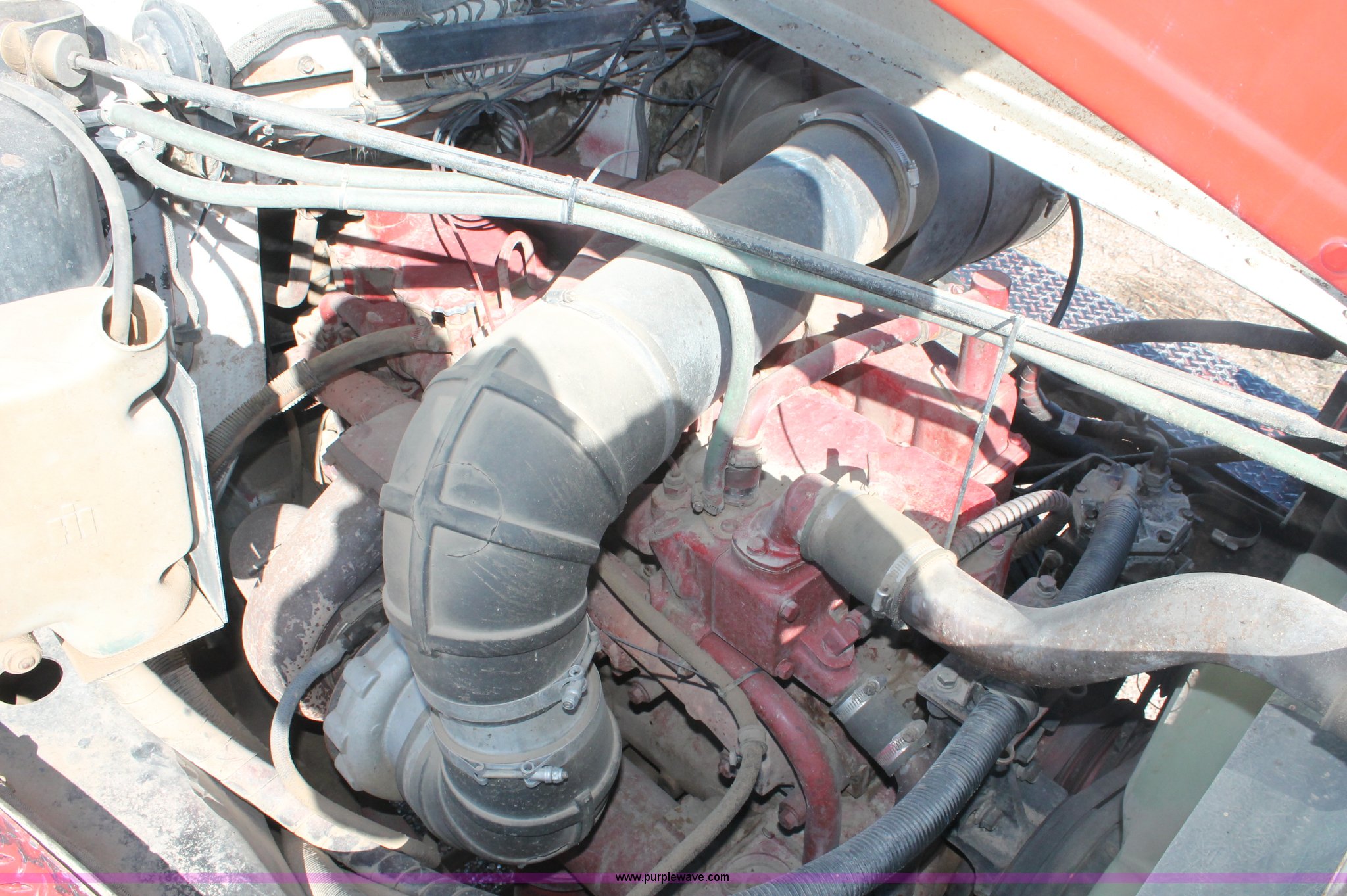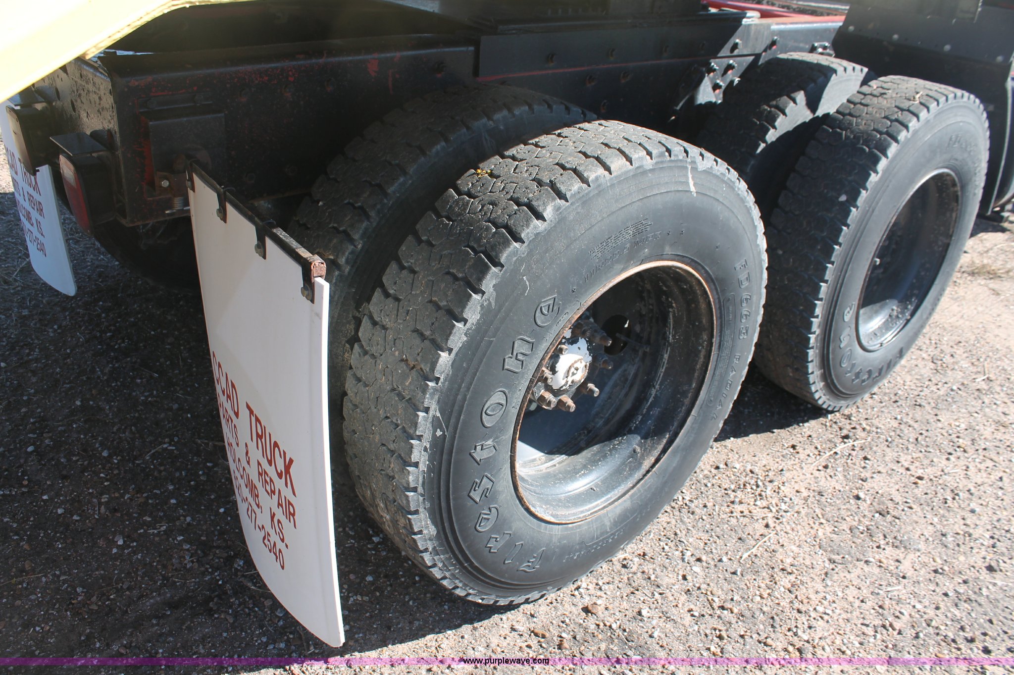 Purple Wave is selling a used Truck Tractor in Kansas. This item is a 1982 International Paystar 5000 semi truck with the following: 147,079 miles on odometer, 9,691 hours on meter, Miles and hours may vary, Cummins diesel engine, Eaton Fuller Road Ranger 15 speed manual transmission, Twin screw, Power divider, Air suspension seat, Passenger daylight door, Poly quarter fenders, Dual 120 gallon fuel tanks, Single rear exhaust stack, Steel deck plate, Air slide fifth wheel plate, PTO, Spring suspension, Air brakes, Front hitch, 178" wheelbase, 11R22.5 tires