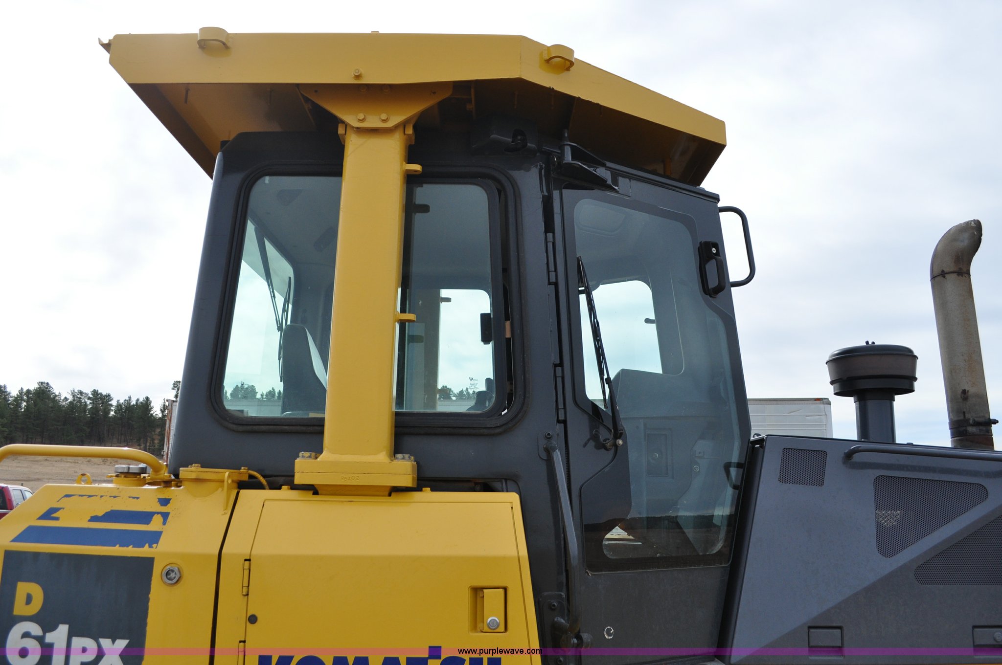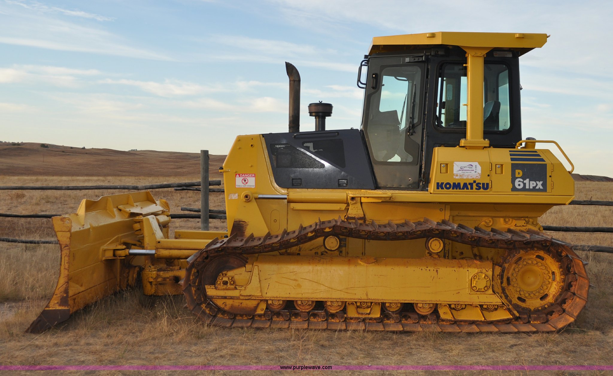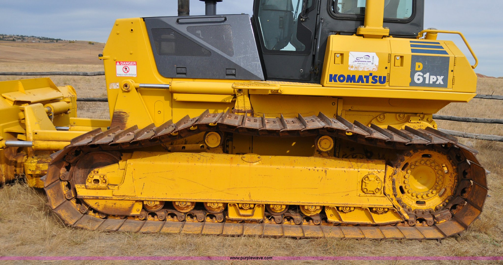 Purple Wave is selling a used Crawler Dozer in South Dakota. This item is a 2006 Komatsu D61PX dozer with the following: 3,406 hours on meter, Komatsu 8.3L six cylinder turbo diesel engine, Model SA6D114E-2, 155 HP, Serial 30524586, Powershift transmission, 3F-3R gears, Enclosed cab, AC, AM/FM, Suspension seat, Front and rear wipers, Front work lights, Engine enclosures, Joystick steering, Six way dozer blade, 12'W, Rear draw bar, 34"W pads, (8) bottom rollers, Single grouser tracks, 40,704 lbs. base operating weight, Water pump replaced November 2012, Serial KMT0D063J51B40673