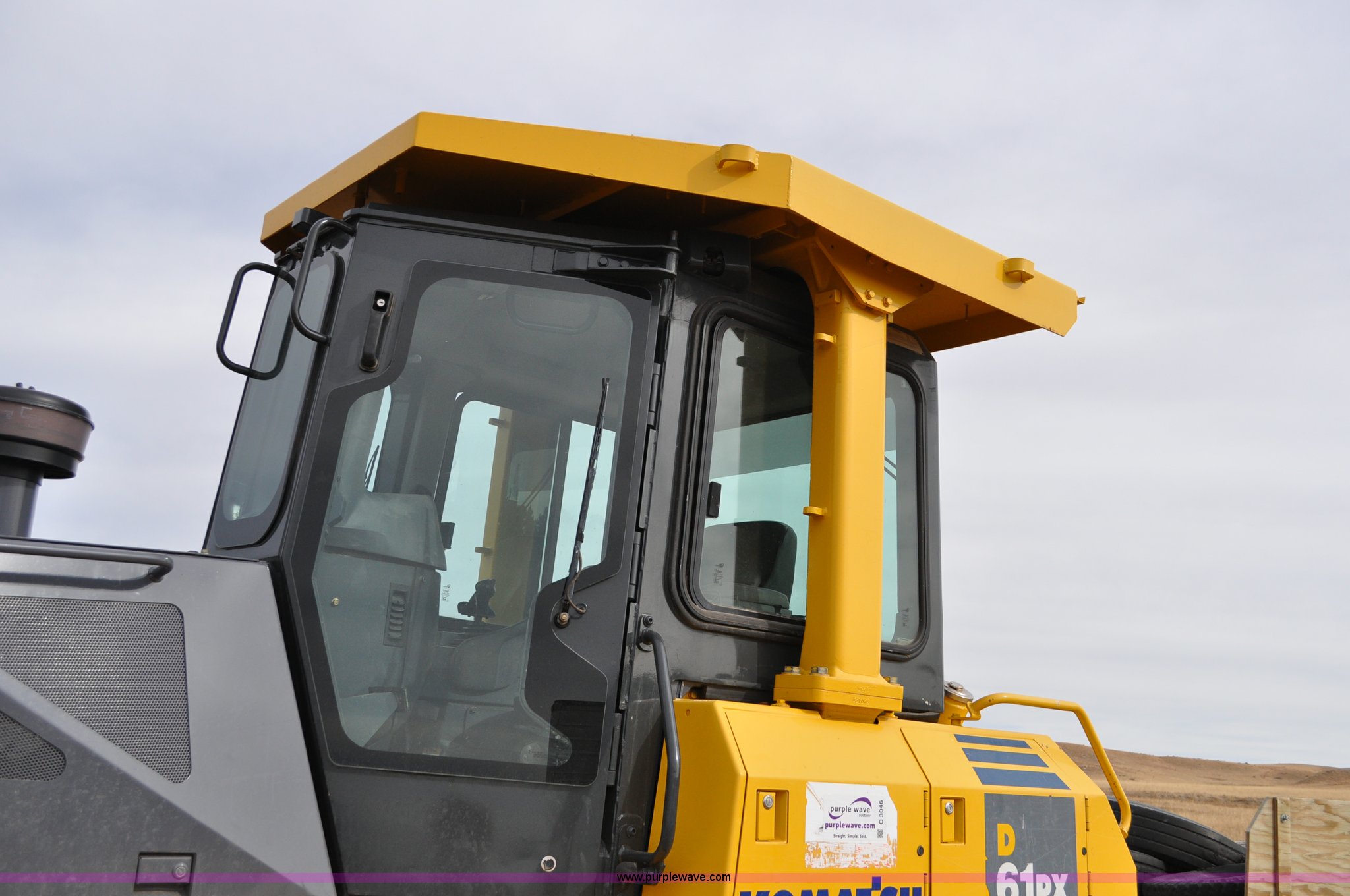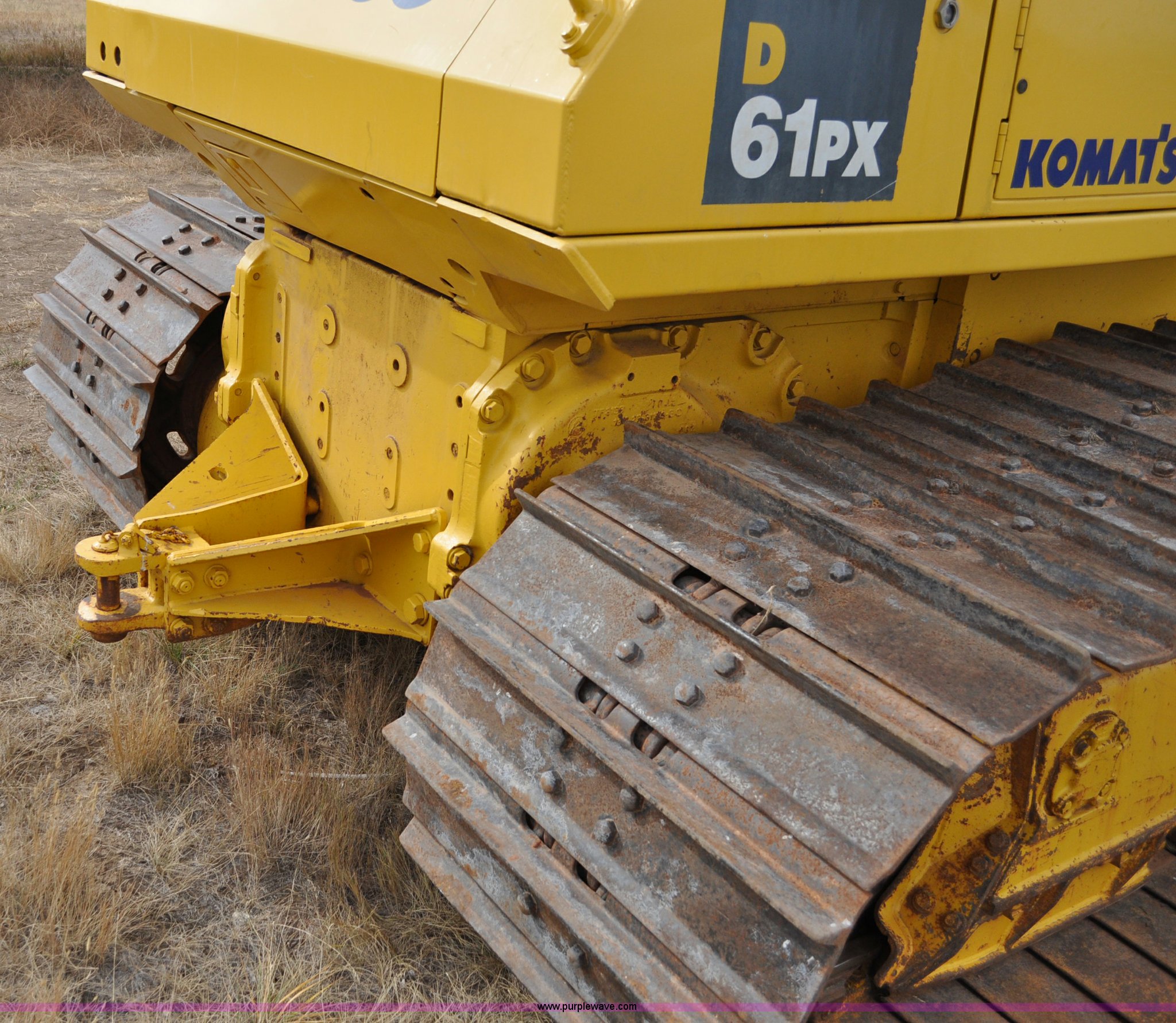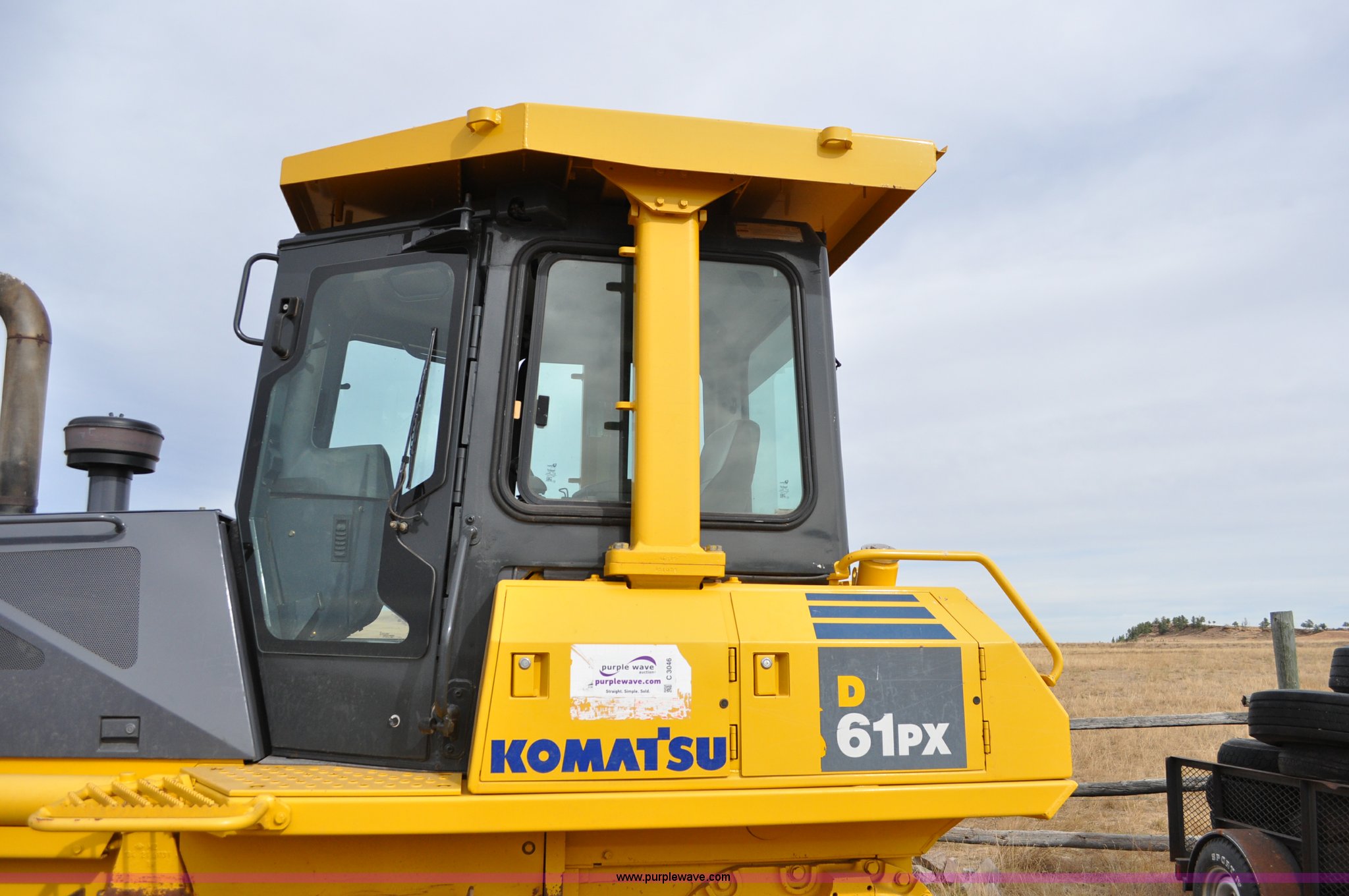 Purple Wave is selling a used Crawler Dozer in South Dakota. This item is a 2006 Komatsu D61PX dozer with the following: 3,406 hours on meter, Komatsu 8.3L six cylinder turbo diesel engine, Model SA6D114E-2, 155 HP, Serial 30524586, Powershift transmission, 3F-3R gears, Enclosed cab, AC, AM/FM, Suspension seat, Front and rear wipers, Front work lights, Engine enclosures, Joystick steering, Six way dozer blade, 12'W, Rear draw bar, 34"W pads, (8) bottom rollers, Single grouser tracks, 40,704 lbs. base operating weight, Water pump replaced November 2012, Serial KMT0D063J51B40673