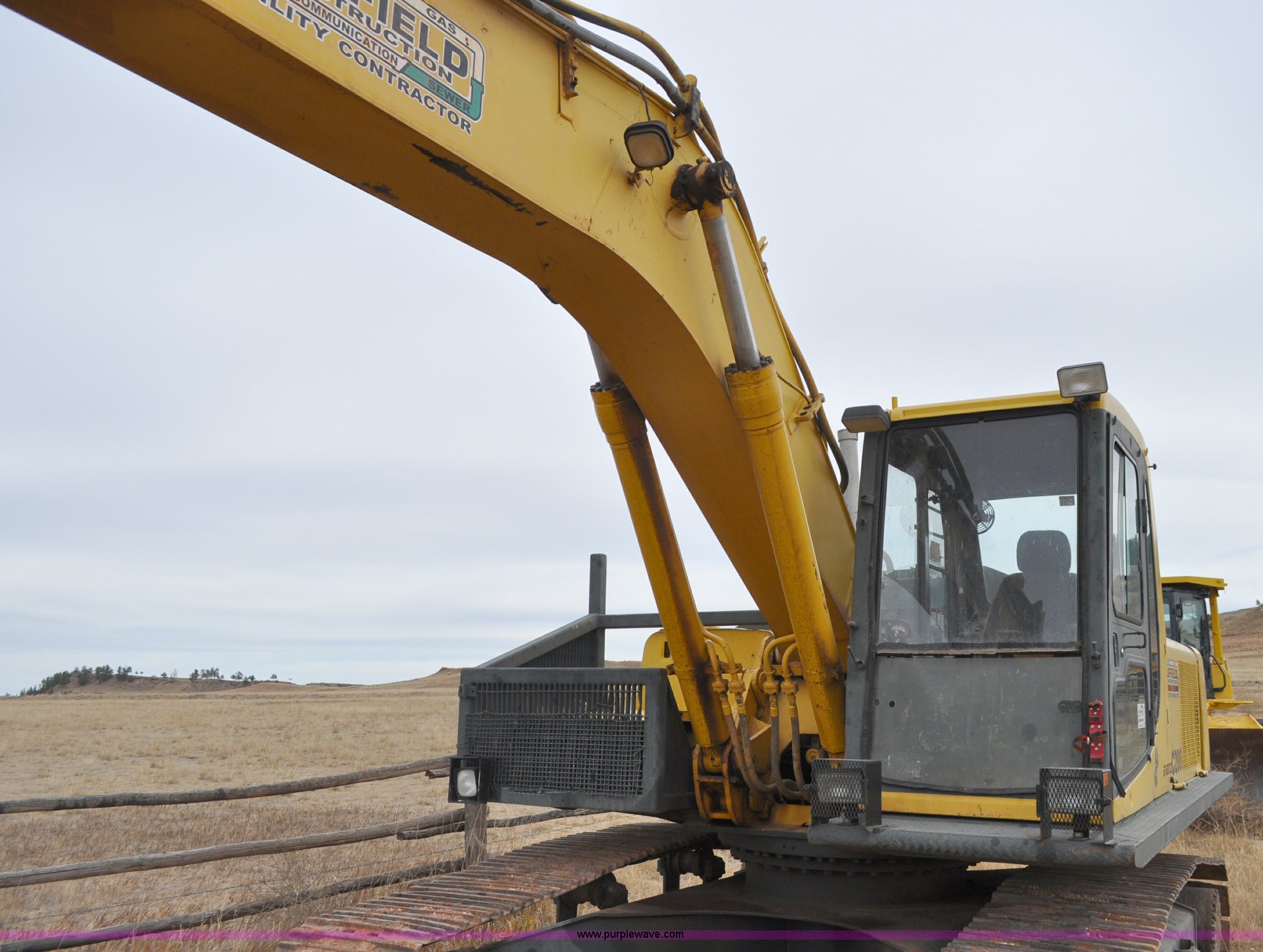 Purple Wave is selling a used Hydraulic Excavator in South Dakota. This item is a 1996 Komatsu PC200LC-6L excavator with the following: 16,161 hours on meter, Komatsu 5.9L six cylinder turbo diesel engine, Model S6D102E, 132 HP, Rebuilt at 15,000 hours, Suspension seat, Work lights, 9'5" stick, 36" four tooth bucket, One shank missing, Quick attach mount, Hydraulic thumb, 68"L x 29"W hydraulic cylinder, 6' when retracted, (9) rollers, 25.5" triple grouser tracks, 46,970 lbs. base operating weight, Hydraulic breaker sold separately as item C3111 , Serial A81343