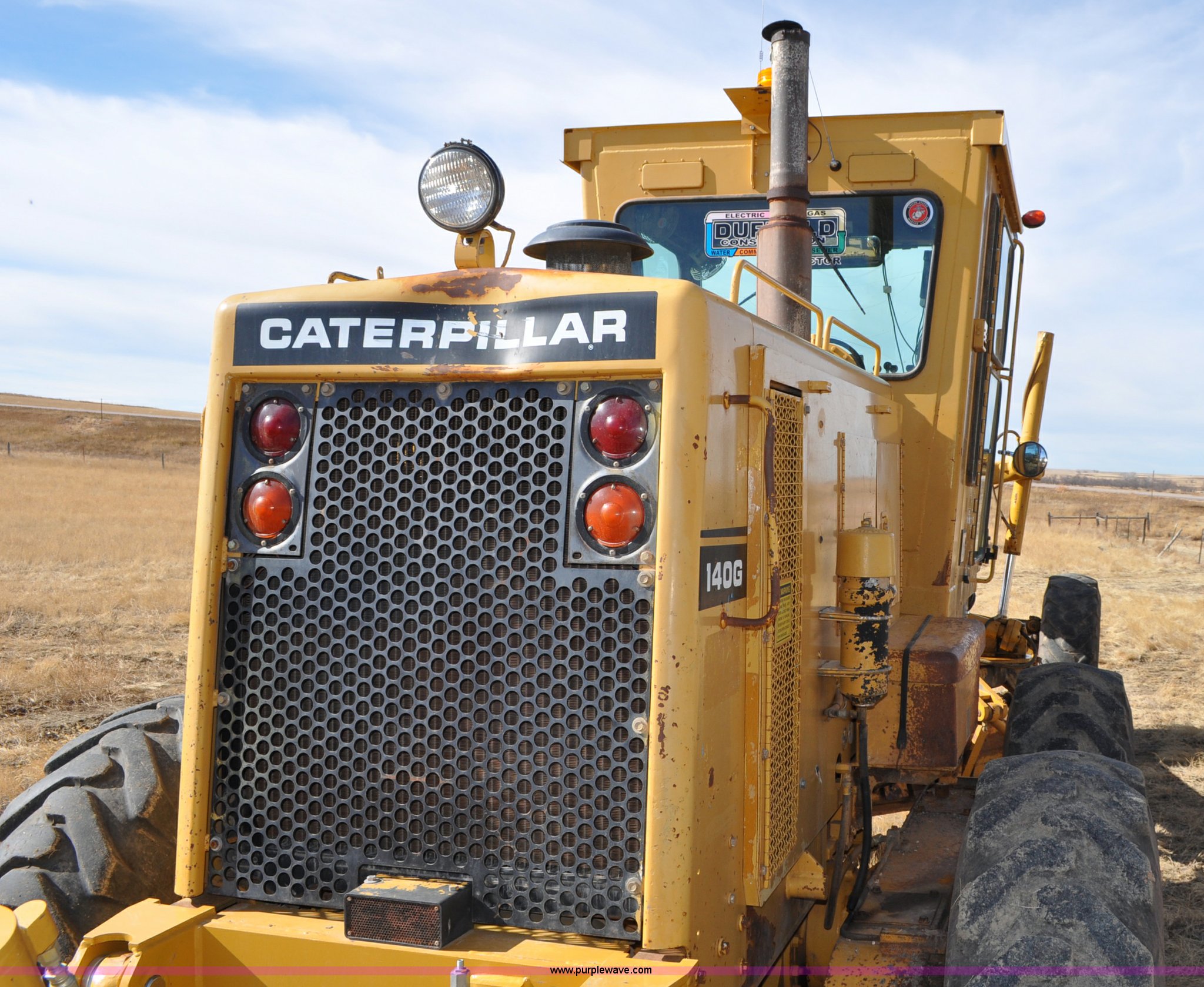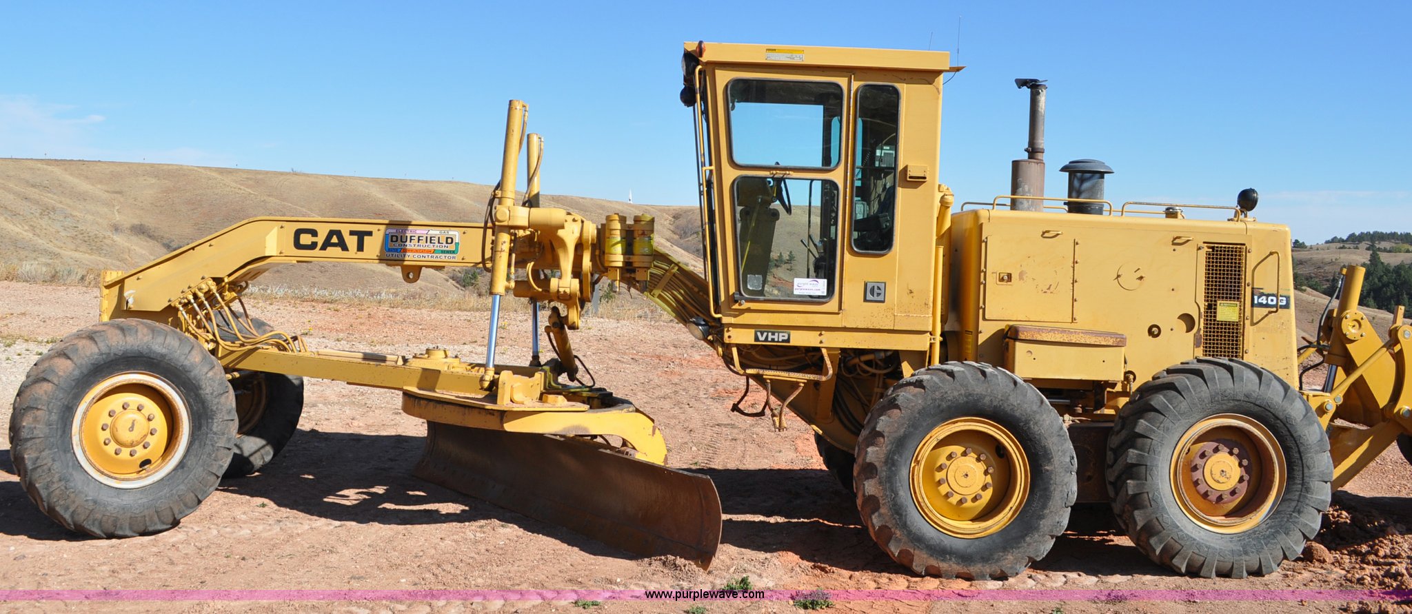 Purple Wave is selling a used Motor Grader in South Dakota. This item is a 1987 Caterpillar 140G motor grader with the following: 9,373 hours on meter, Caterpillar 3306DI six cylinder diesel engine, 150 HP, Variable horsepower, Serial 08Z38746, Powershift transmission, 6F-6R gears, Enclosed cab, Heat, Suspension seat, Front work lights, Low cab profile, Articulated frame, 12' moldboard, Tip control, Side shift, 2007 Diamond rear three shank ripper, Slots for five shanks, Serial 62D0706652, 14.00-24 tires, 31,090 lbs. base operating weight, Serial 72V10461