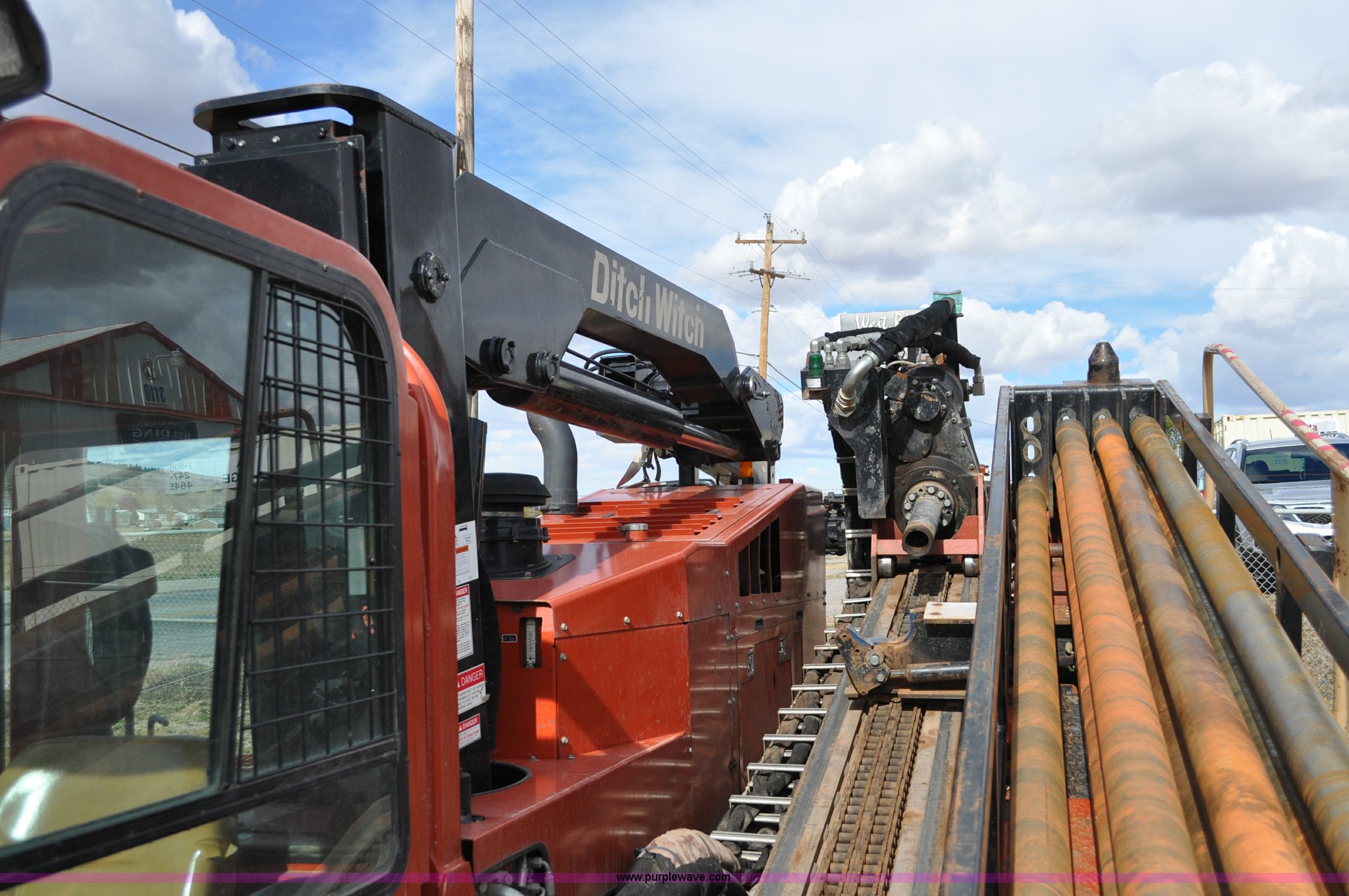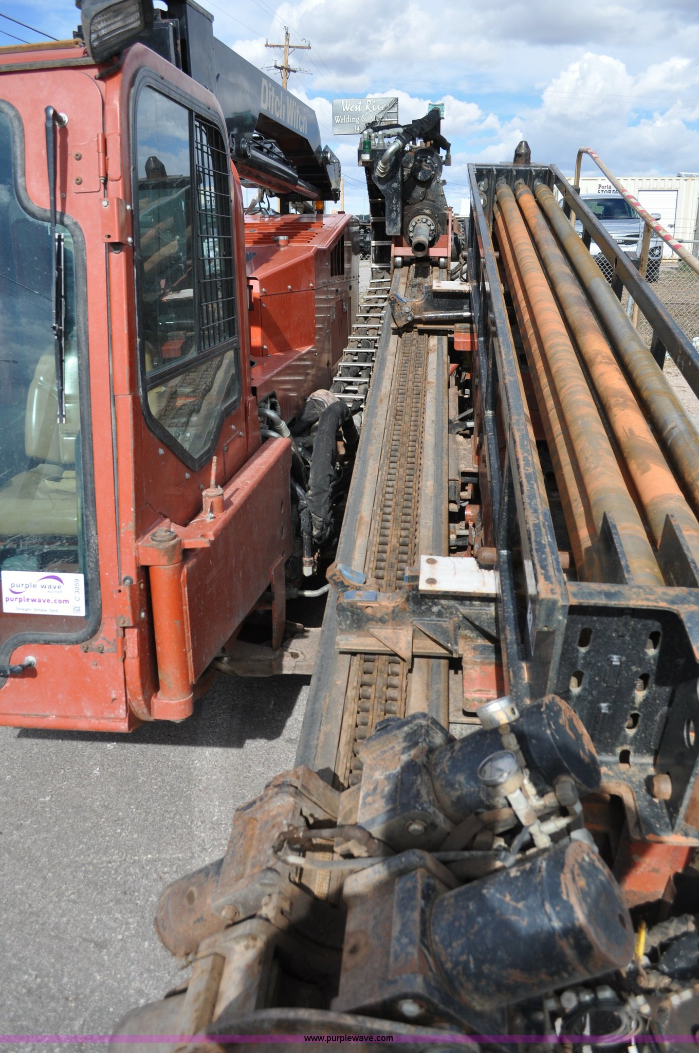 Purple Wave is selling a used Directional Boring Unit in South Dakota. This item is a 2000 Ditch Witch 7020 directional drill with the following: 2,993 hours on meter, Deutz 7.15L six cylinder 265 hp diesel engine, Model BF6M1013ECP, 70,000 lbs thrust, 7,000 lbs pull back, 210 RPM spindle speed, 10,000 ft lbs torque, Stake down anchors, 18" tracks, (2) racks, (21) 15' drill rods, 78 gallon fuel tank, Autocrane AGD crane, 8,300 lbs maximum capacity retracted, 2,800 lbs maximum capacity extenced, Remote control, Serial 015-0800, Auto thread lube is not included, Serial 2T4609