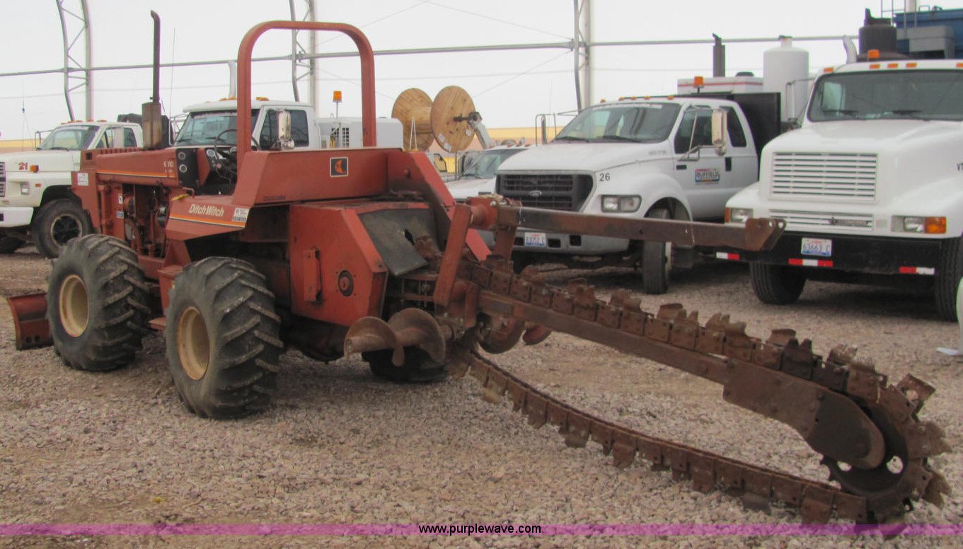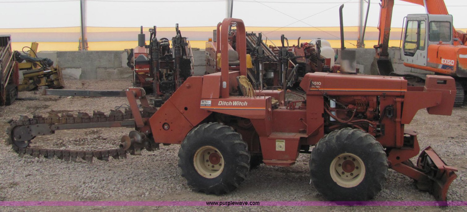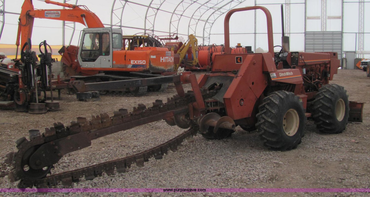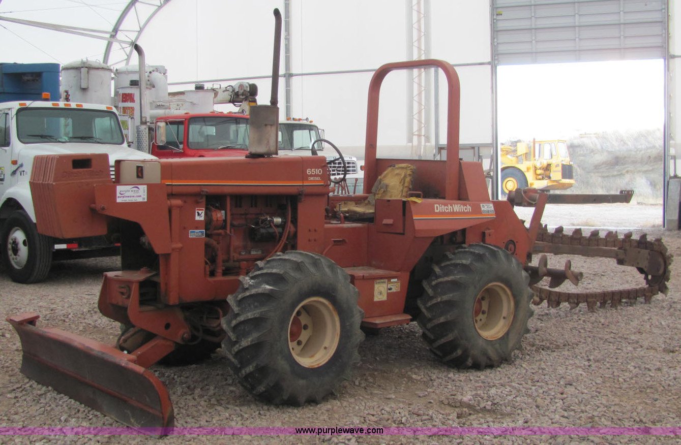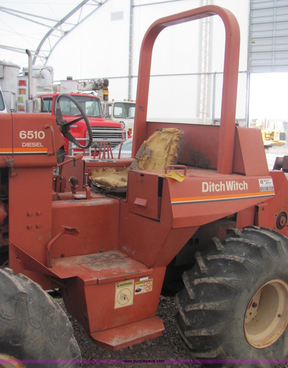Purple Wave is selling a used Trencher or Rock Saw in South Dakota. This item is a Ditch Witch 6510DD trencher with the following: 1,199 hours on meter, Deutz four cylinder diesel engine, Hydrostatic transmission, Auxiliary hydraulics, 6' back-fill blade, (10) front counterweights, 8' trenching bar, 16.5L-16 tires, Needs new seat, Serial 653740