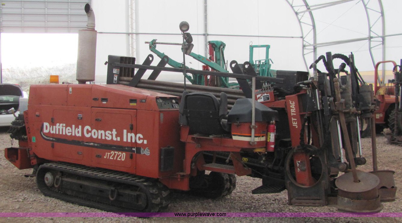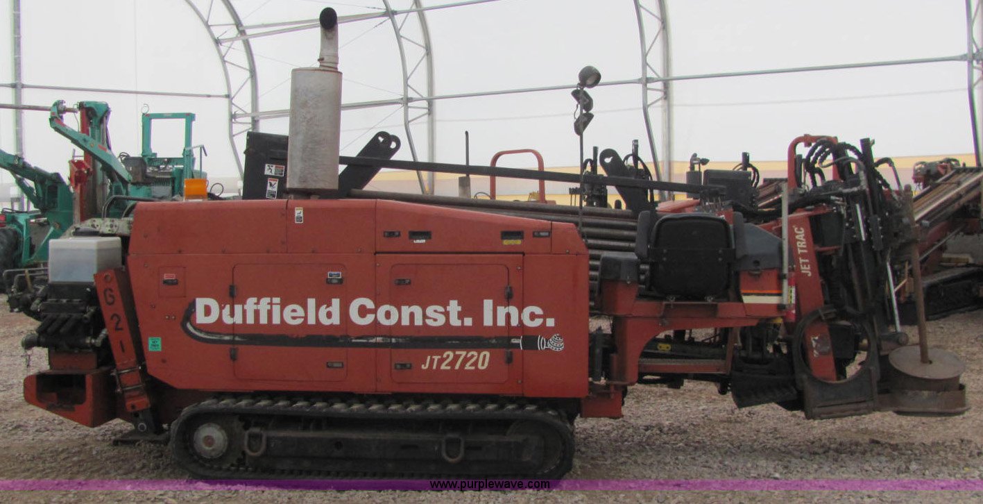 1998 Ditch Witch JT2720 directional drill. 3,939 hours on meter, John Deere four cylinder 125 hp diesel engine, (34) 9'10"L x 2 1/2" diameter drill stem rod, Hydraulic anchors, 27,000 lbs pullback force, 3,200 lbs spindle torque, 10 to 16 degree entry angle, 22 degree approach angle, 26 degree departure angle, Subsite 950D computer display, Rear controls with corded joystick, Fold down safety fence, Hydraulic rear outriggers, 14" rubber tracks, 20,900 lbs. base operating weight, Support equipment listed in C3261 , C3262 , C3256 , C3286 , and C3309 , Serial 2R3094. Listen to the Duffield story. View equipment video. Shipping quotes available. Duffield Construction. 1800 Peterson Rd. Rapid City, SD 57701