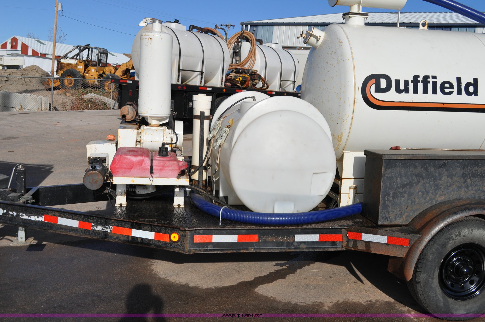 1999 Vacmaster SPV800 vacuum system. 518 hours on meter, Model SPV800GT3/W, Universal blower, Pressure wash system 200 gallon water tank, Kohler 725cc engine Electric start, Dump tank with Harh hoist Electric drive hydraulic pump, 9.50-16 tires, Pressure pump replaced November 2012, Serial 9811-226. Title distribution may be delayed up to 14 days from verification of funds. Listen to the Duffield story. 0368420. View equipment video. Shipping quotes available. Duffield Construction. 3060 N Haines. Rapid City, SD 57701