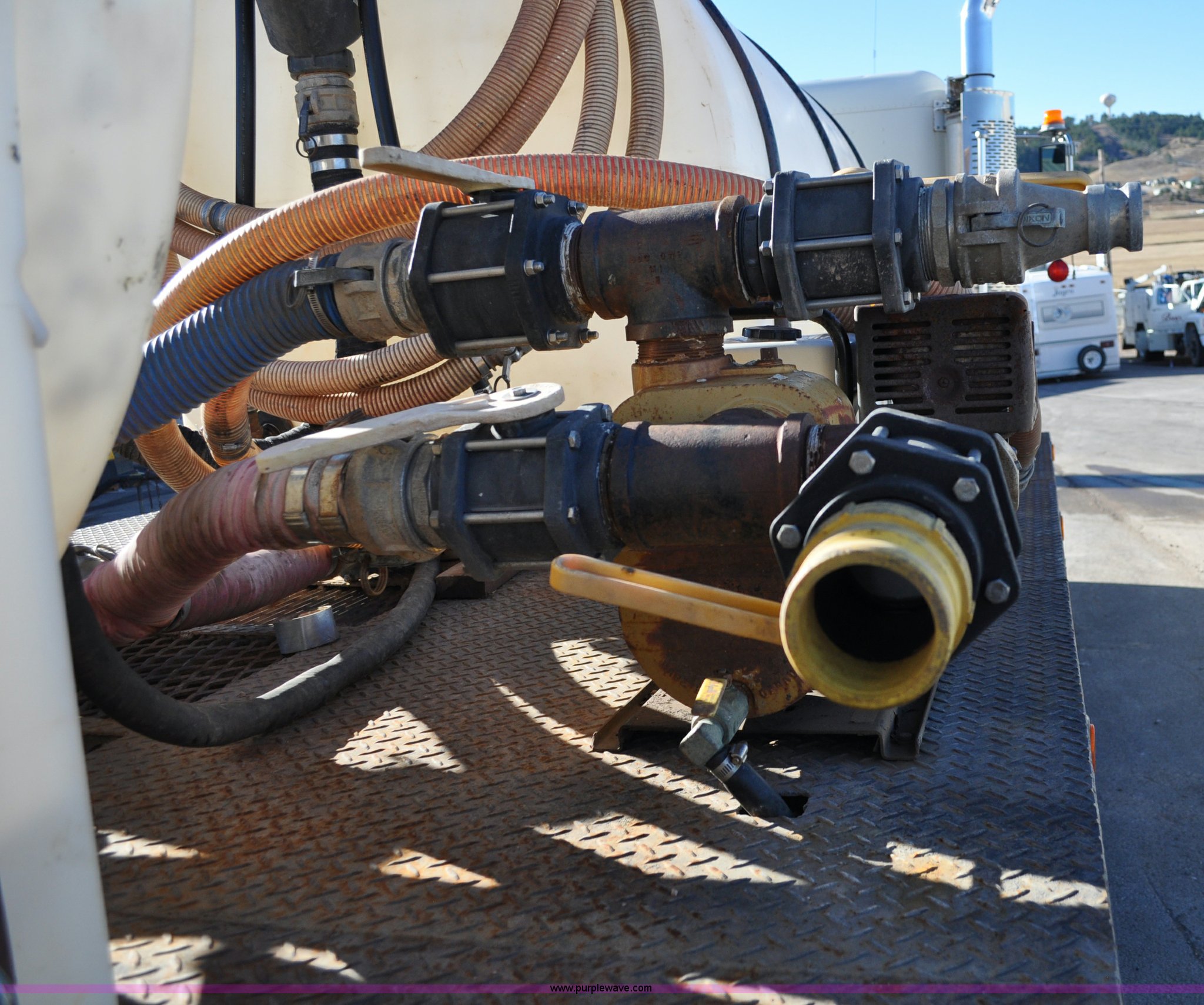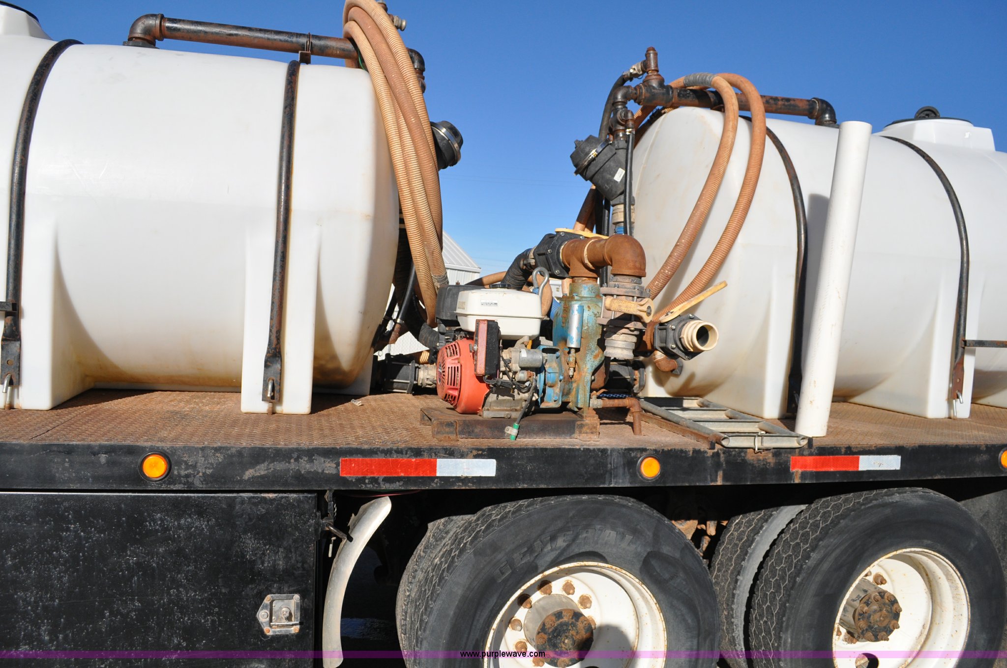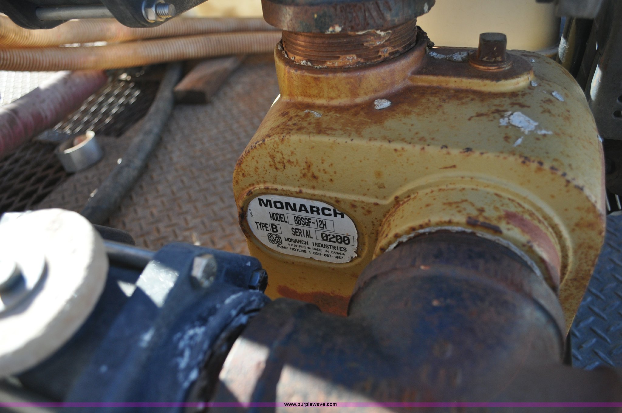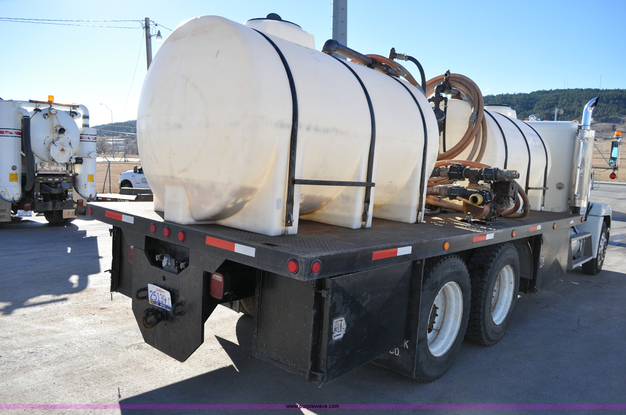 Purple Wave is selling a used Vacuum Truck in South Dakota. This item is a 1989 Freightliner FLD boring support truck with the following: 1,008,204 miles on odometer, Cummins N14 14L L6 diesel engine, Eaton Fuller Road Ranger ten speed manual transmission, Twin screw, AM/FM/cassette, Air suspension seat, Engine brake, Block heater, Dual 100 gallon fuel tanks, 20'L x 101"W flat bed, (2) 1,000 gallon water tanks, MP 32039 pump, Serial 01A2252, 3" inlet and outlet, Honda GX390 13 HP gas engine, Monarch 8BSGF-12H type B pump, Serial 0200, 3" inlet and outlet, Honda GX270 9 HP gas engine, (2) 56"W x 27"D x 28"H toolboxes, (2) 36"W x 24"D x 25"H toolboxes, Pintle hitch, Air and electric trailer connections, 11R24.5 tires