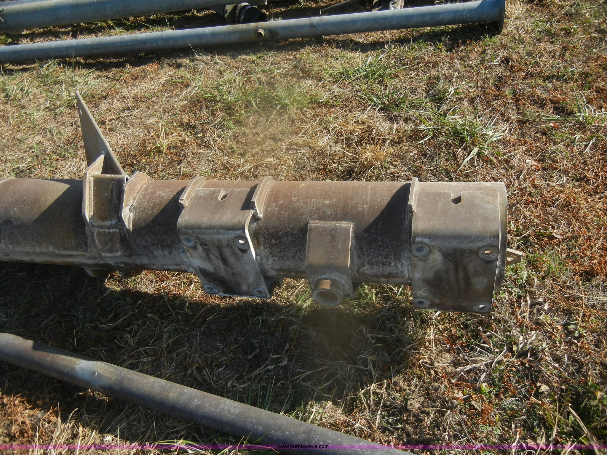 Purple Wave is selling a used Irrigation Equip. Attach. in Kansas. This item is a Corner irrigation system with the following: 185'L, Guidance and power wire, (6) pipe sections, Base for wheels, Support beams, Control boxes, Nozzles, Overhang cables, 19.9-24 tires