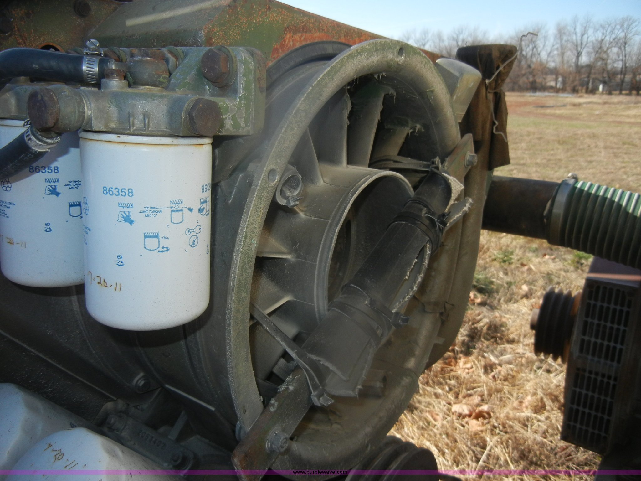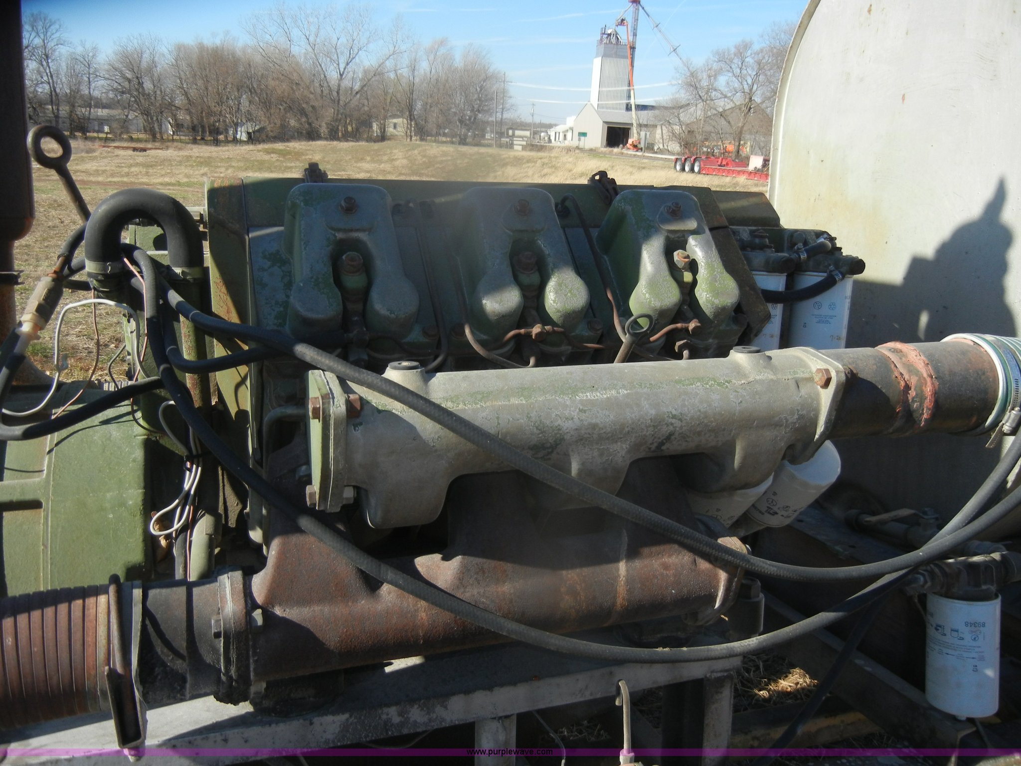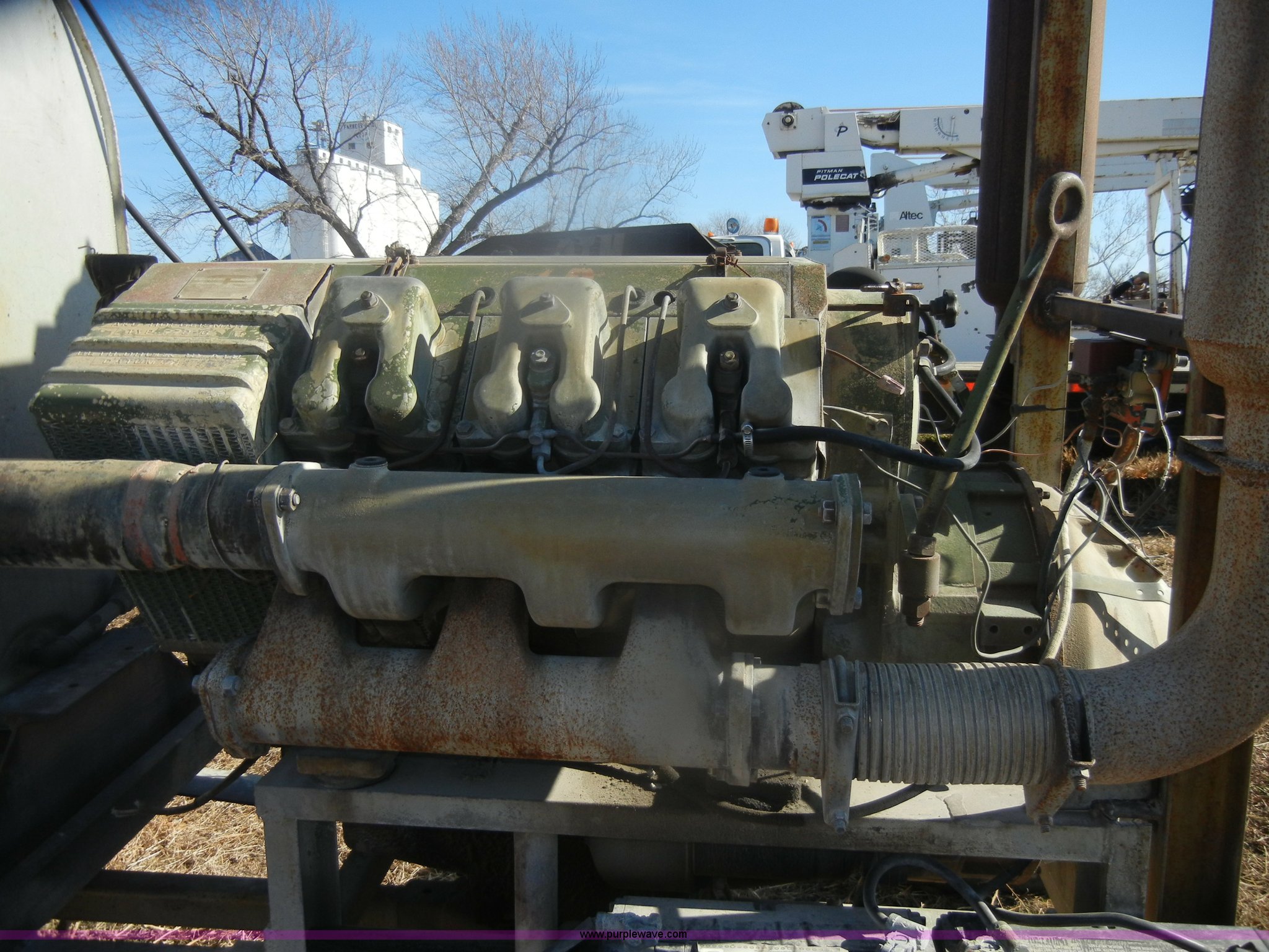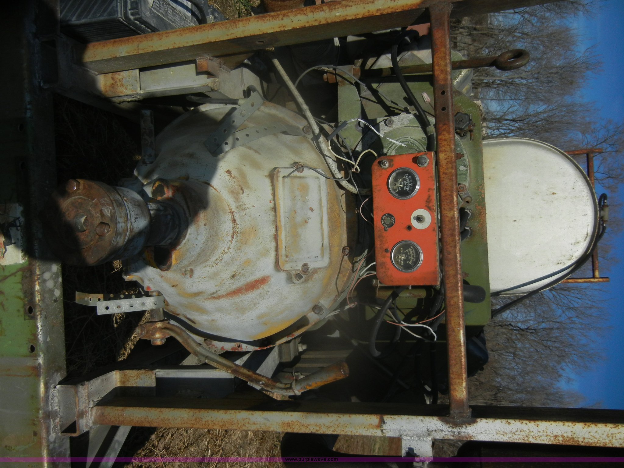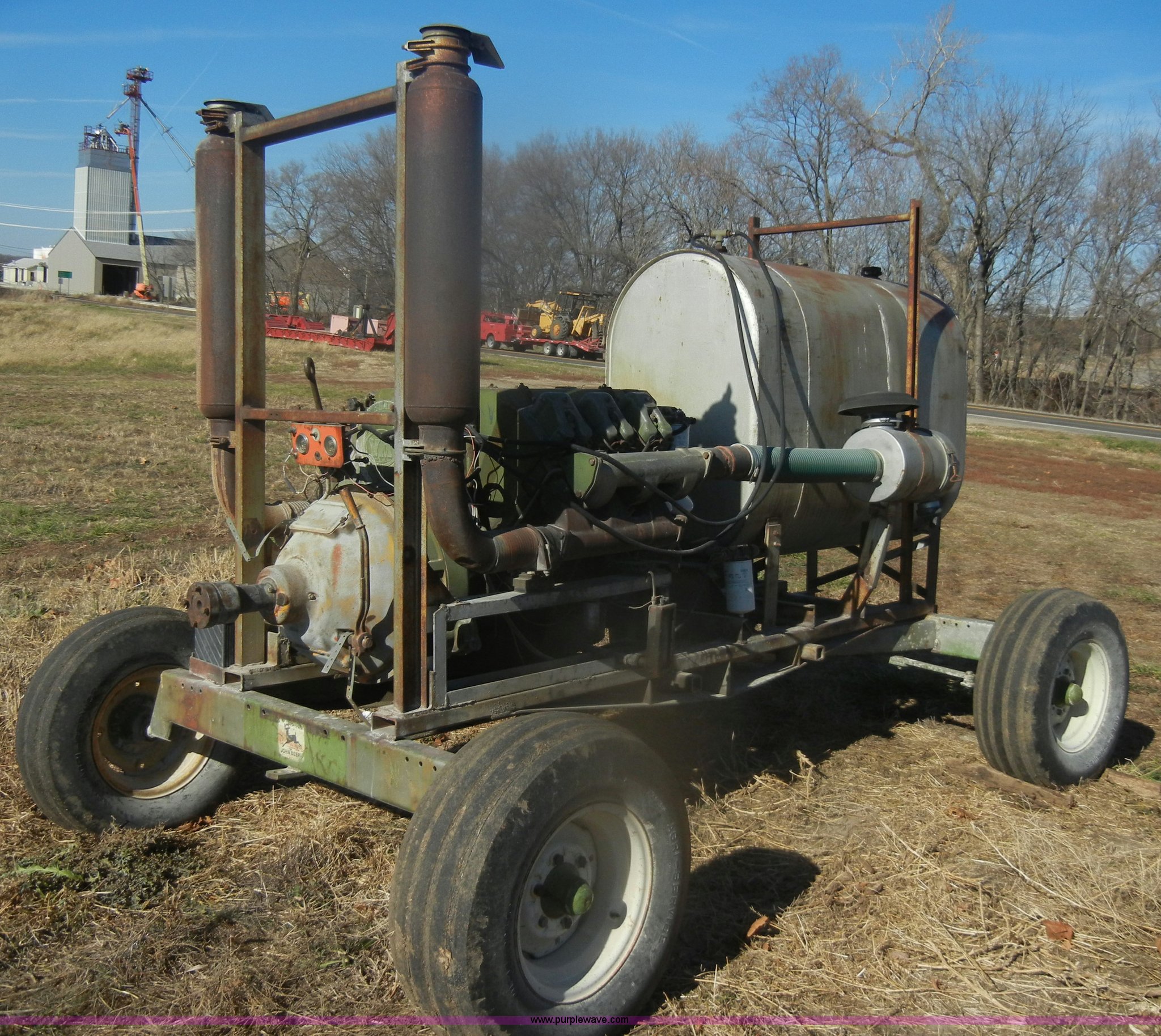 Left handed gear head unit for irrigation systems. Sigma 180 HP diesel engine 2,300 RPM, Type 9306, Number 60665, Stamford 30 KW generator 1,800 RPM, Three phase, Serial J5150, Pin hitch, 5' x 27" x 44" water tank, 11L-15 tires. Shipping quotes available. 717 Bertrand. St. Marys, KS 66536