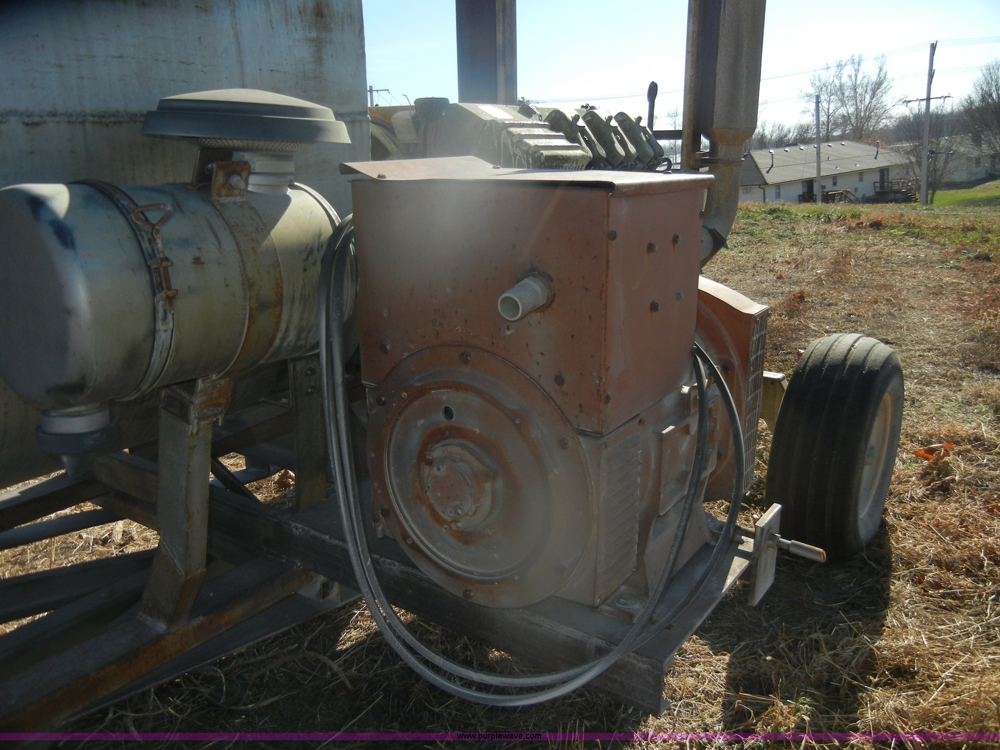 Purple Wave is selling a used Power Unit in Kansas. This item is a Left handed gear head unit for irrigation systems with the following: Sigma 180 HP diesel engine, 2,300 RPM, Type 9306, Number 60665, Stamford 30 KW generator, 1,800 RPM, Three phase, Serial J5150, Pin hitch, 5' x 27" x 44" water tank, 11L-15 tires