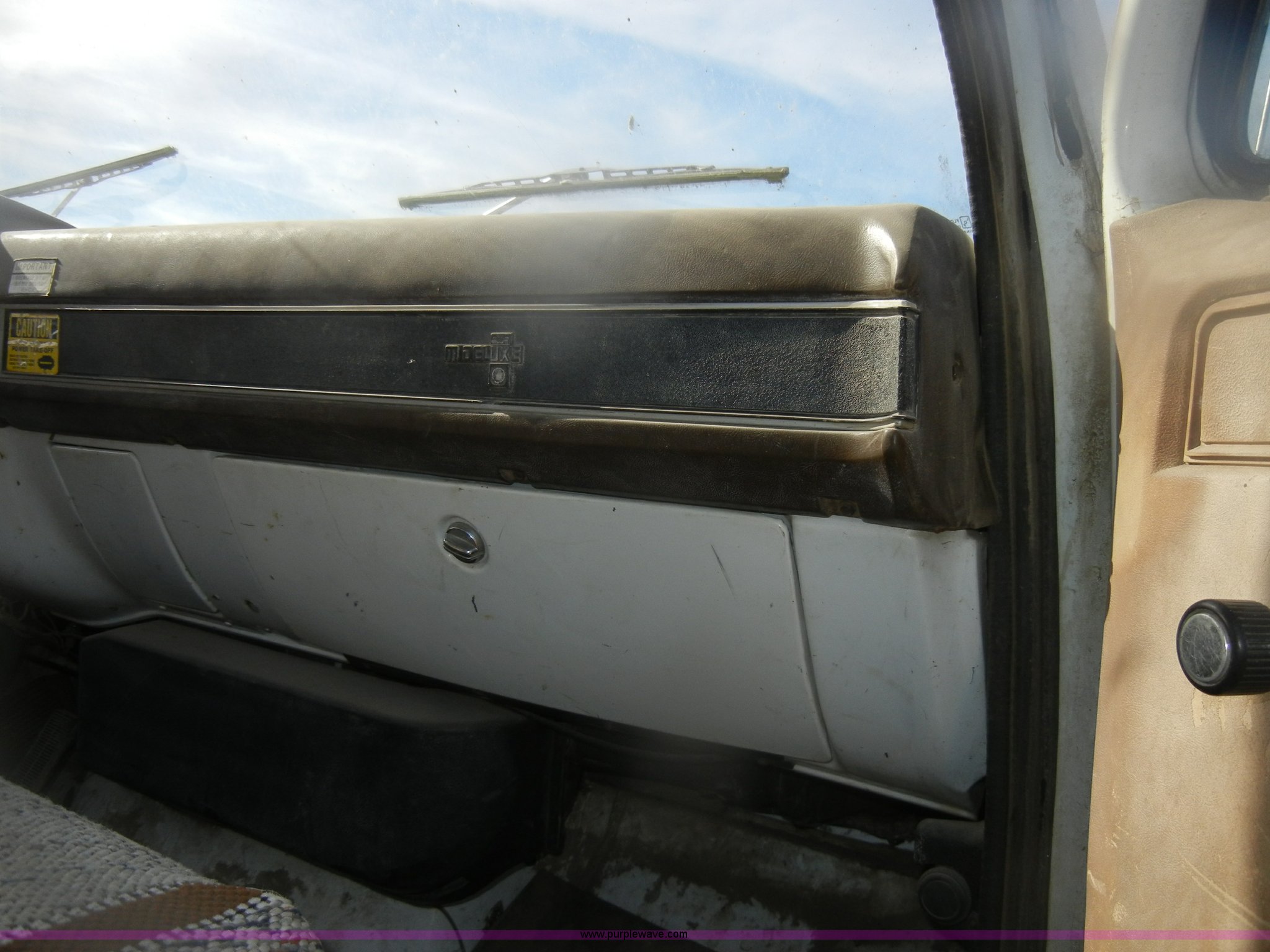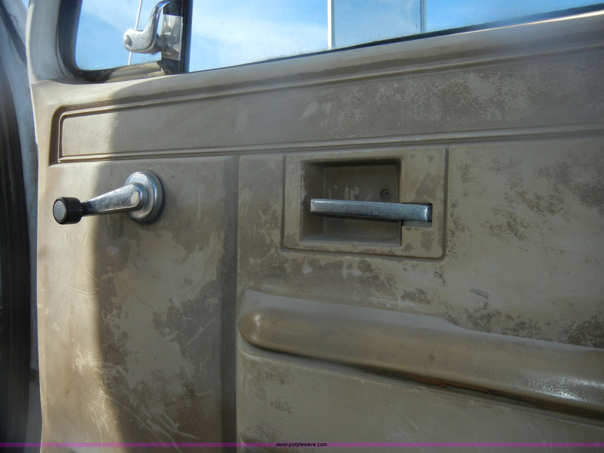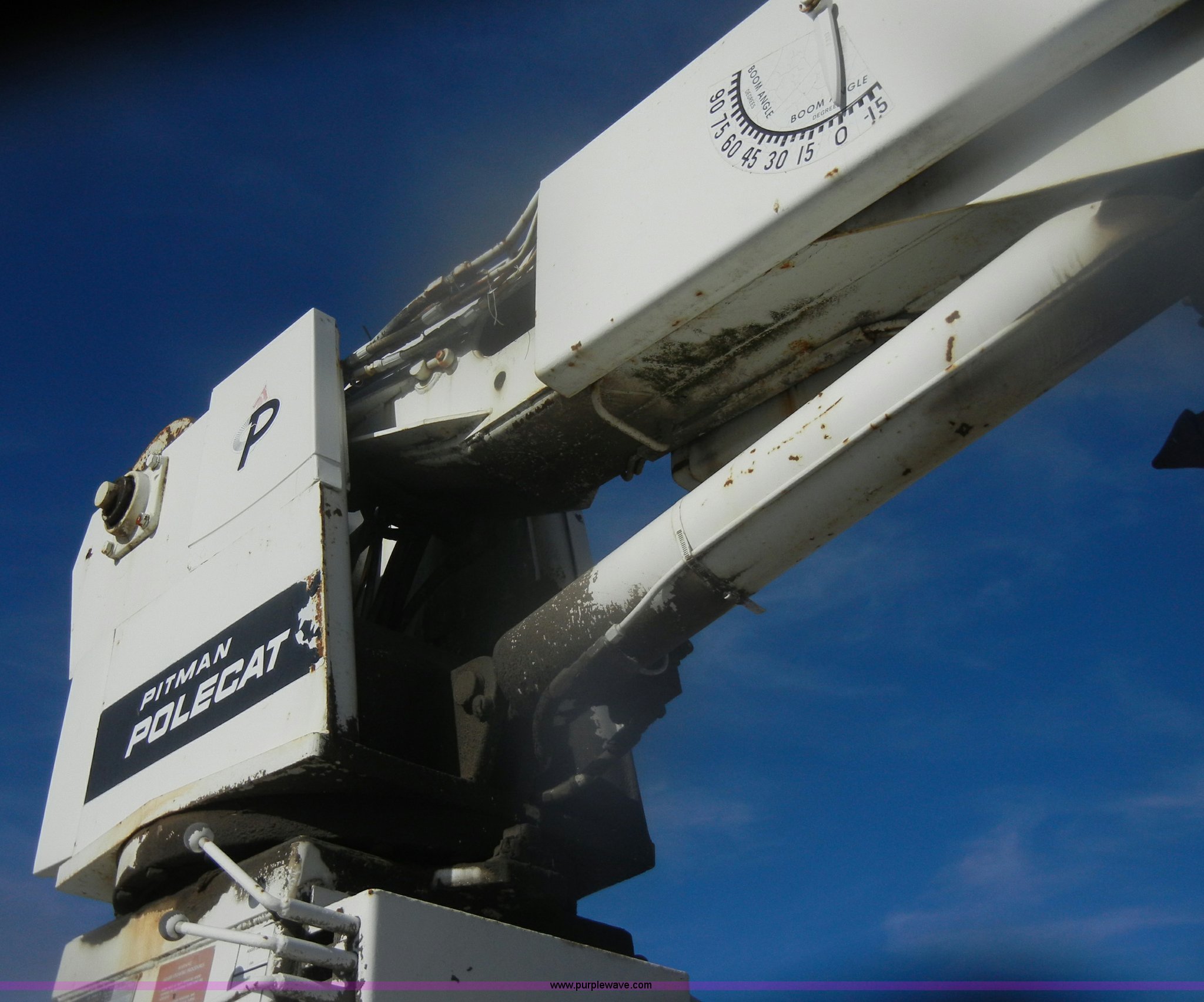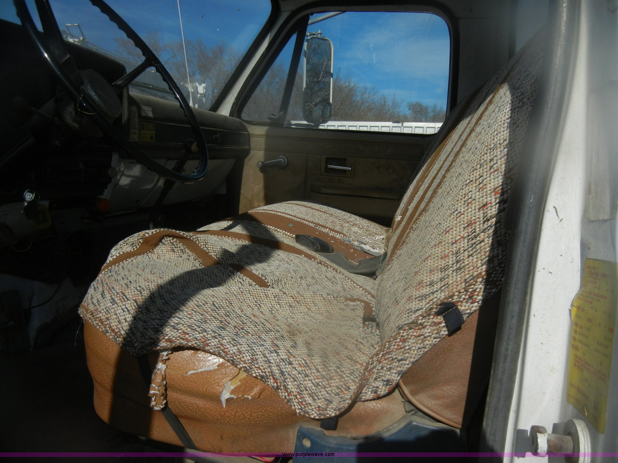 Purple Wave is selling a used Crane Truck in Kansas. This item is a 1983 Chevrolet Kodiak C70 Pitman Polecat flatbed truck with the following: 56,180 miles on odometer, 1,955 hours on meter, 6.0L V8 gas engine, Five speed manual transmission, Hi-Lo, Heat, AM/FM/cassette, Manual windows and locks, Vinyl interior, 9' x 93.5" flatbed, Muncie PTO, Mico Dualock, Front and rear stabilizers, Front tow hooks, 50 gallon fuel tank, Pitman Polecat PC1500, Model PC-1545BBMQS, Serial 18150183ADVP, 4' to 35' boom load radius, 15,000 to 1,600 lb boom load capacity, 4' to 35' boom and digger load radius, 14,200 to 1,300 lb boom and digger load capacity, Thru and Thru storage box, Rear hydraulics, Pintle hitch, Trailer wiring, 6' x 18" auger bit, 10.00-20 tires, GVWR 28,000 lbs, FAWR 9,000 lbs, RAWR 19,000 lbs, Interior/exterior cosmetic damage, Cracked dash, Hood will not stay latched