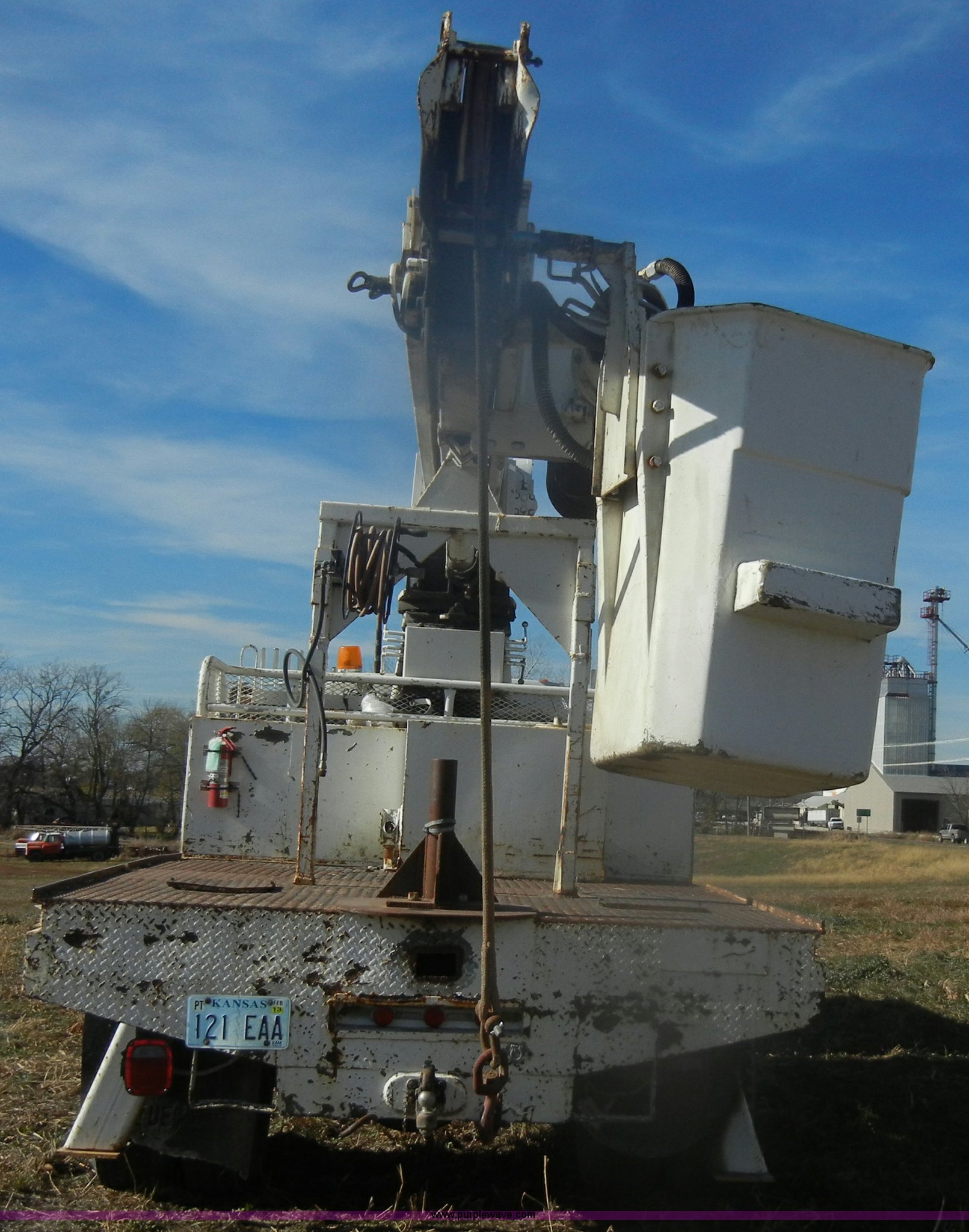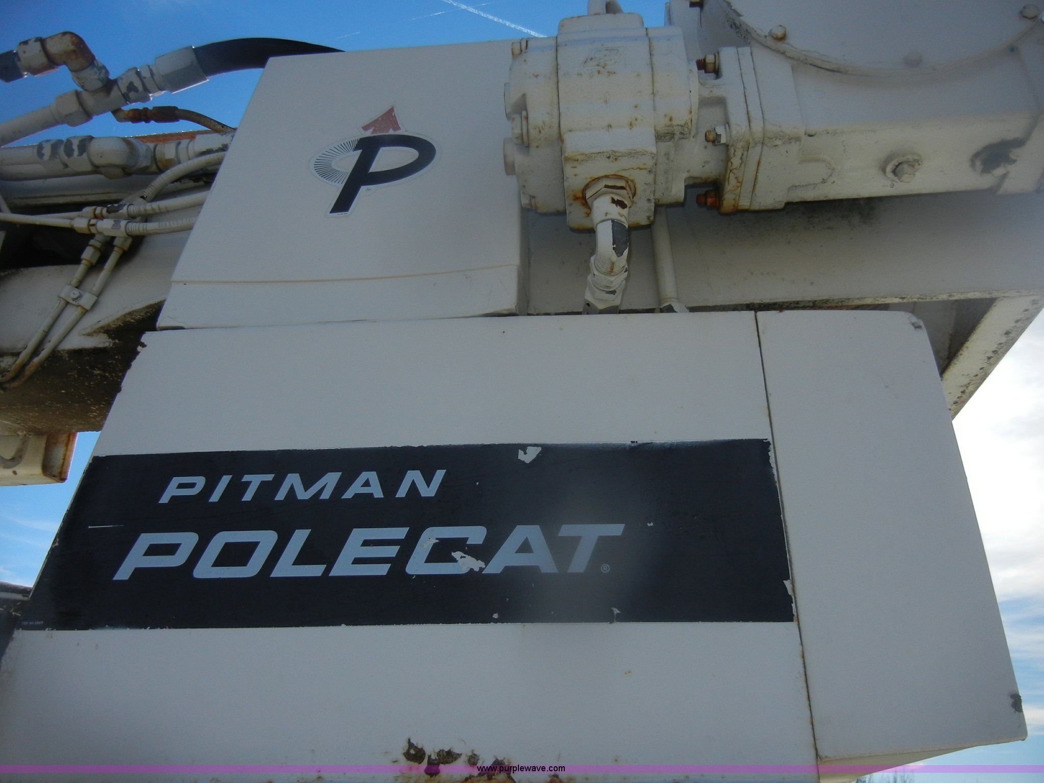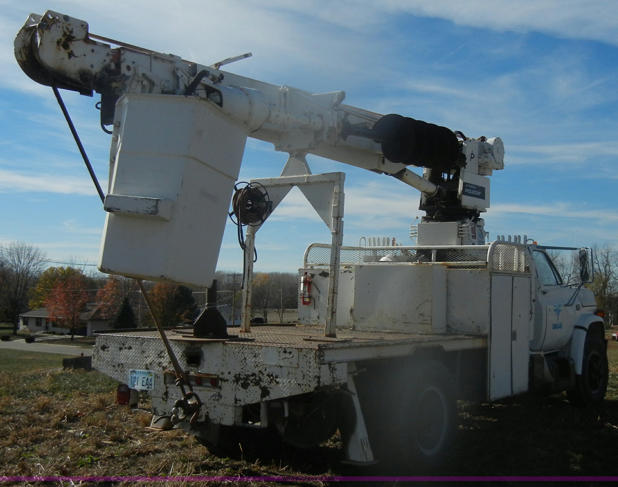 1983 Chevrolet Kodiak C70 Pitman Polecat flatbed truck. 56,180 miles on odometer, 1,955 hours on meter, 6.0L V8 gas engine, Five speed manual transmission Hi-Lo, Heat, AM/FM/cassette, Manual windows and locks, Vinyl interior, 9' x 93.5" flatbed, Muncie PTO, Mico Dualock, Front and rear stabilizers, Front tow hooks, 50 gallon fuel tank, Pitman Polecat PC1500 Model PC-1545BBMQS, Serial 18150183ADVP, 4' to 35' boom load radius, 15,000 to 1,600 lb boom load capacity, 4' to 35' boom and digger load radius, 14,200 to 1,300 lb boom and digger load capacity, Thru and Thru storage box, Rear hydraulics, Pintle hitch, Trailer wiring, 6' x 18" auger bit, 10.00-20 tires, GVWR 28,000 lbs, FAWR 9,000 lbs, RAWR 19,000 lbs, Interior/exterior cosmetic damage, Cracked dash, Hood will not stay latched. 1GBL7D1BXDV125407. Shipping quotes available. 717 Bertrand. St. Marys, KS 66536