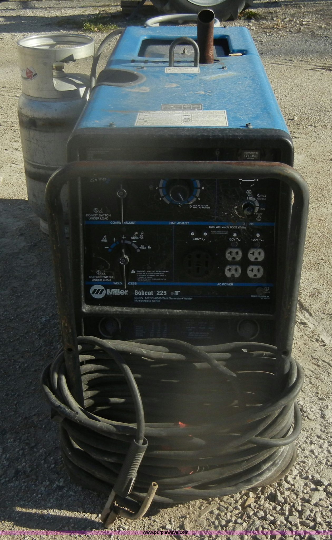 Purple Wave is selling a used Welder (Manual) in Kansas. This item is a Miller Bobcat 225 propane welder/generator with the following: 696 hours on meter, Onan performance P216 engine, Model P216G-L/11520H, Serial L987841051, Single phase, CC/CV/AC/DC, 8,000 watt generator, Leads and tip, (2) propane tanks included, Serial KK029298