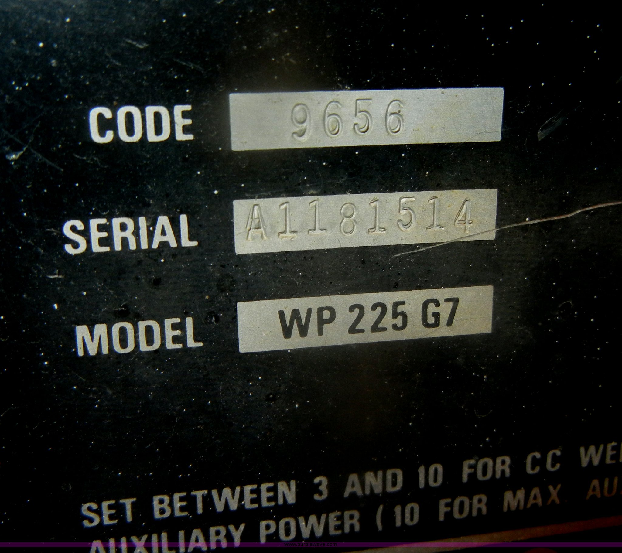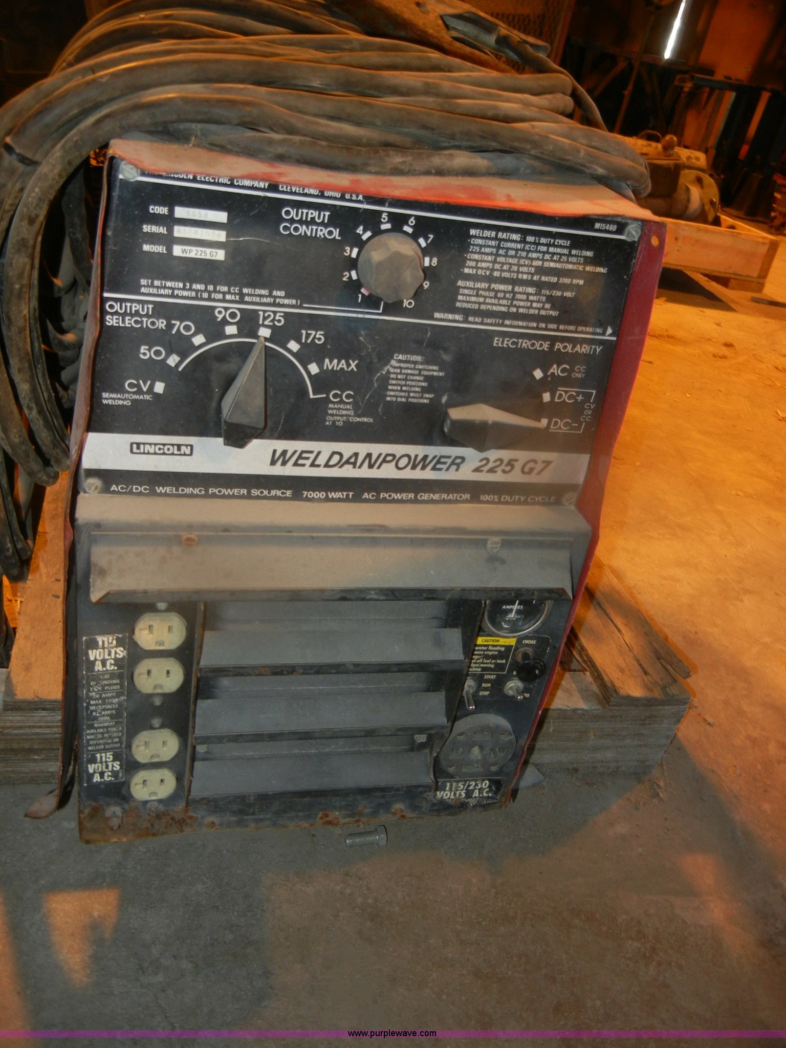 Purple Wave is selling a used Welder (Manual) in Kansas. This item is a Lincoln arc welder with the following: Model WP22567, Code 9656, Onan 16XSL motor, Leads, clamp, and tip, Operational, Serial A1181514