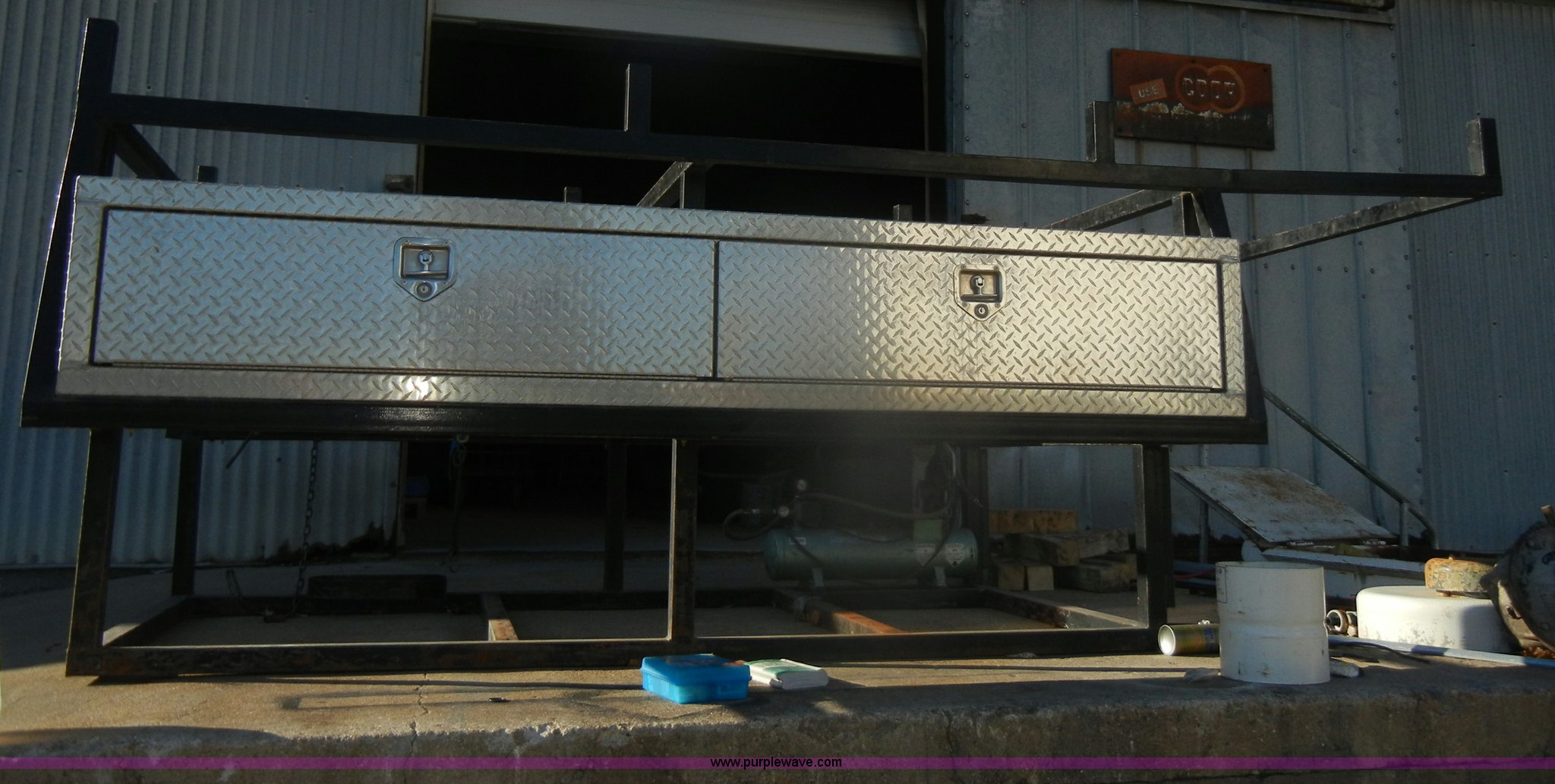 Purple Wave is selling a used Automotive Parts or Acces. in Kansas. This item is a Slide-in pickup truck headache rack with the following: 100" x 44" I.D., 11' x 6' x 51.5" O.D., DeeZee side toolboxes, Speed Aire mini air compressor included