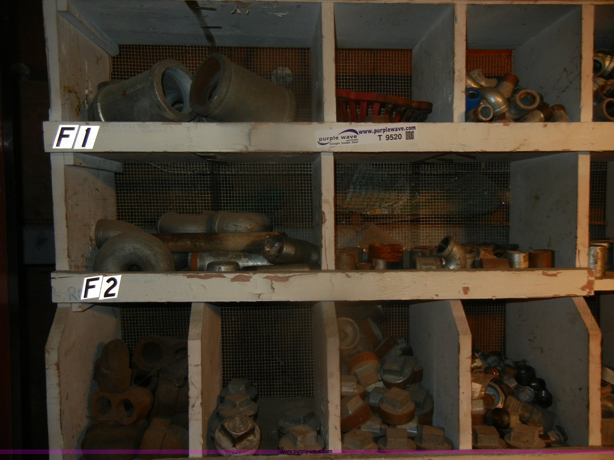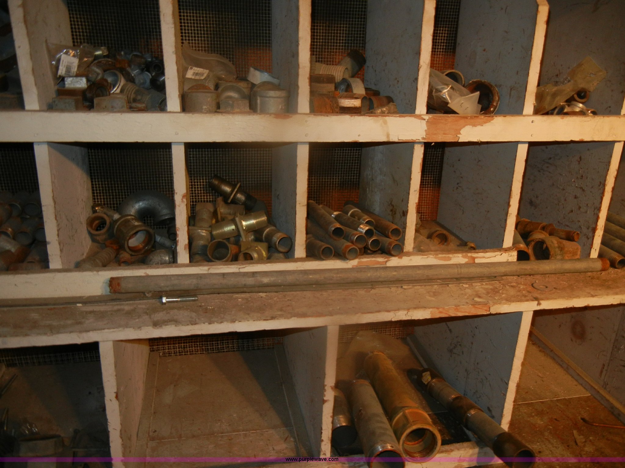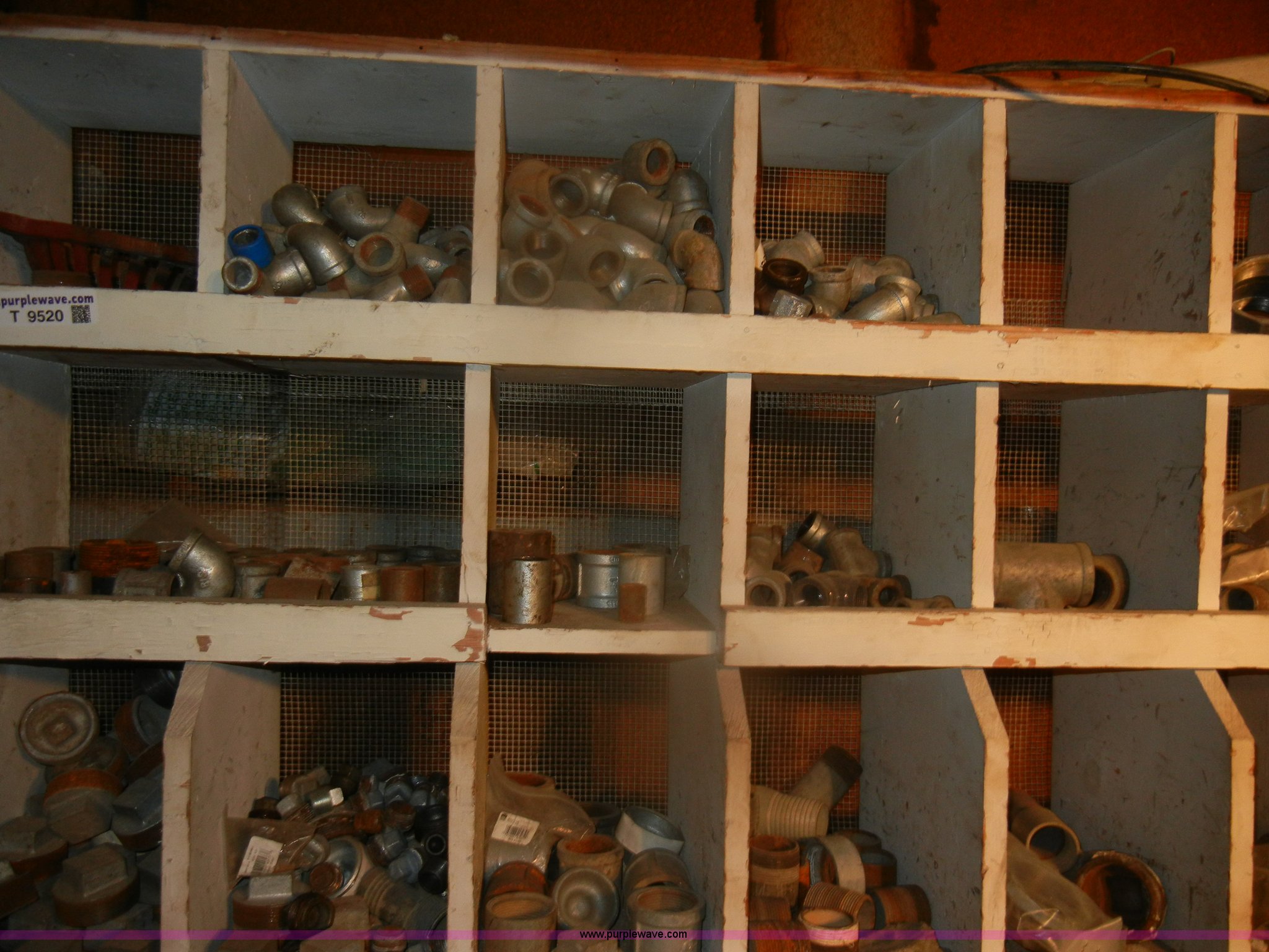 Purple Wave is selling a used Tools in Kansas. This item is a Assorted metal pieces with the following: Caps, joiners, elbows, T's, reducers, And more, Shelving optional, 16' x 2' x 6'