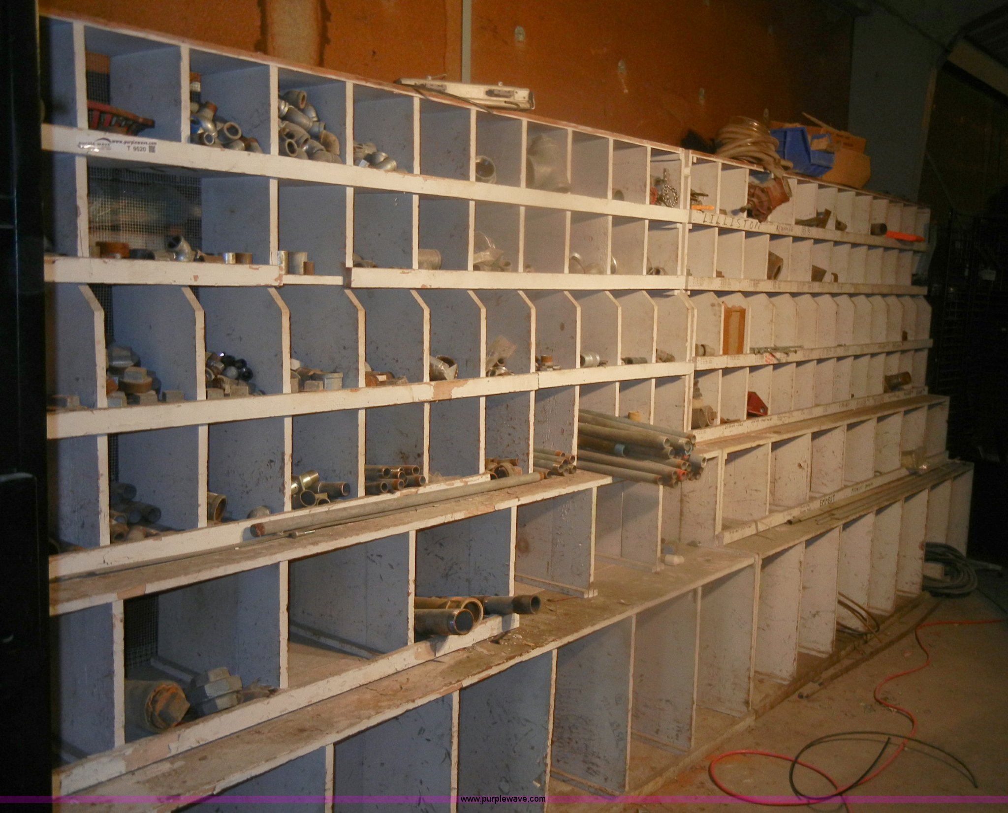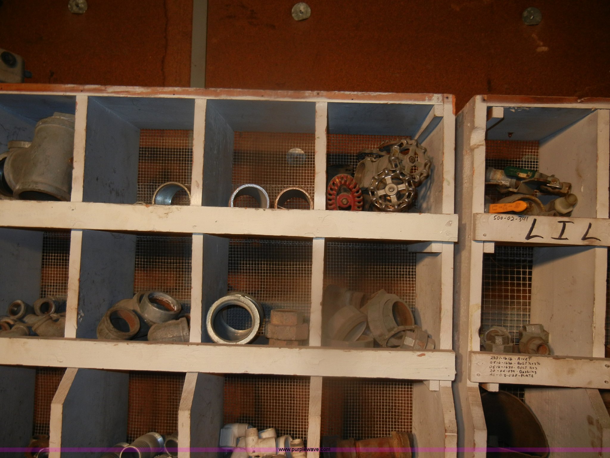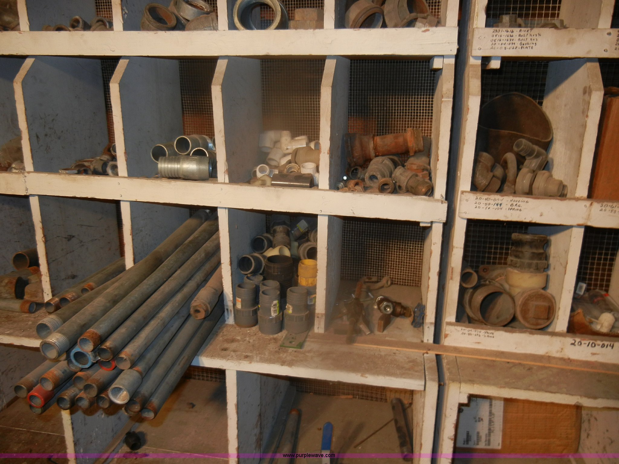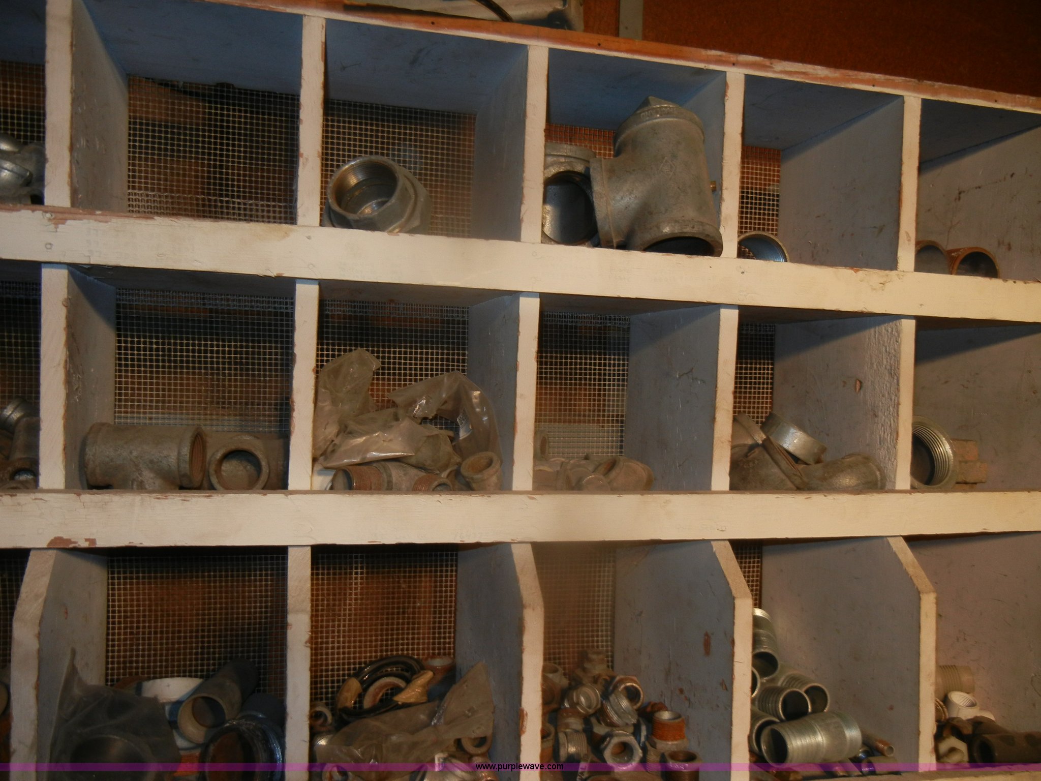 Purple Wave is selling a used Tools in Kansas. This item is a Assorted metal pieces with the following: Caps, joiners, elbows, T's, reducers, And more, Shelving optional, 16' x 2' x 6'